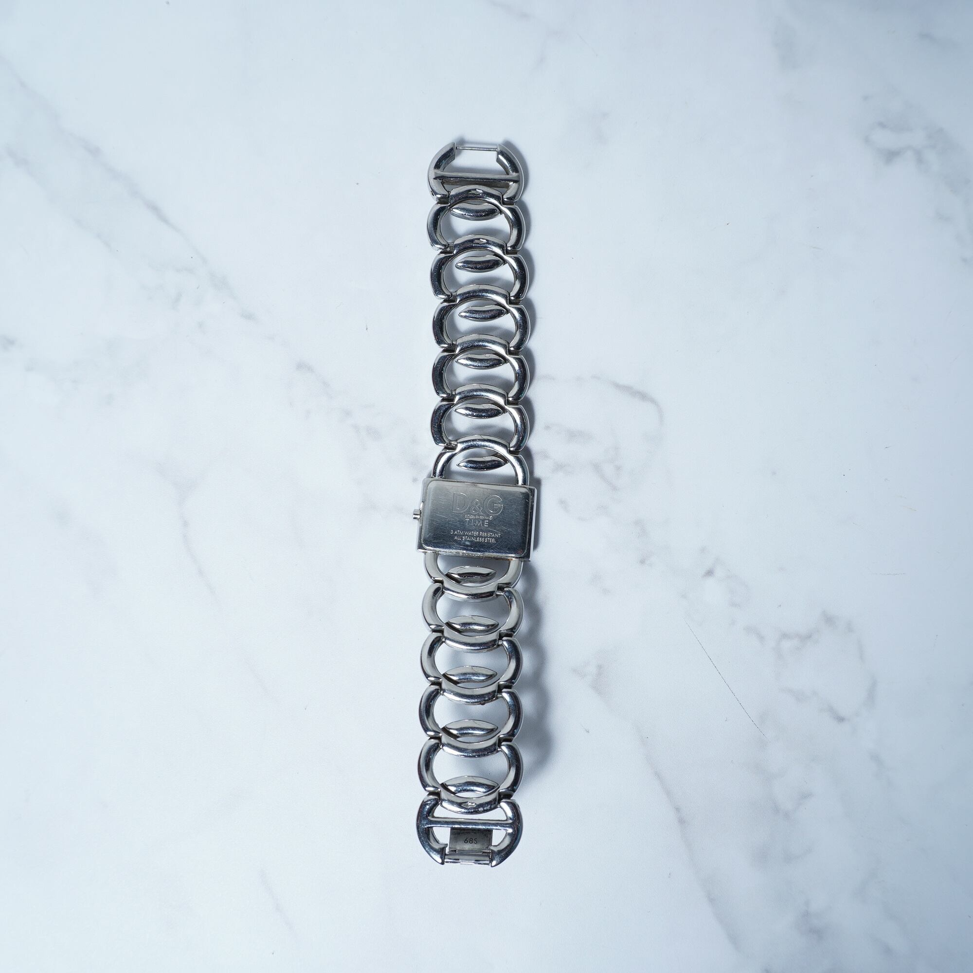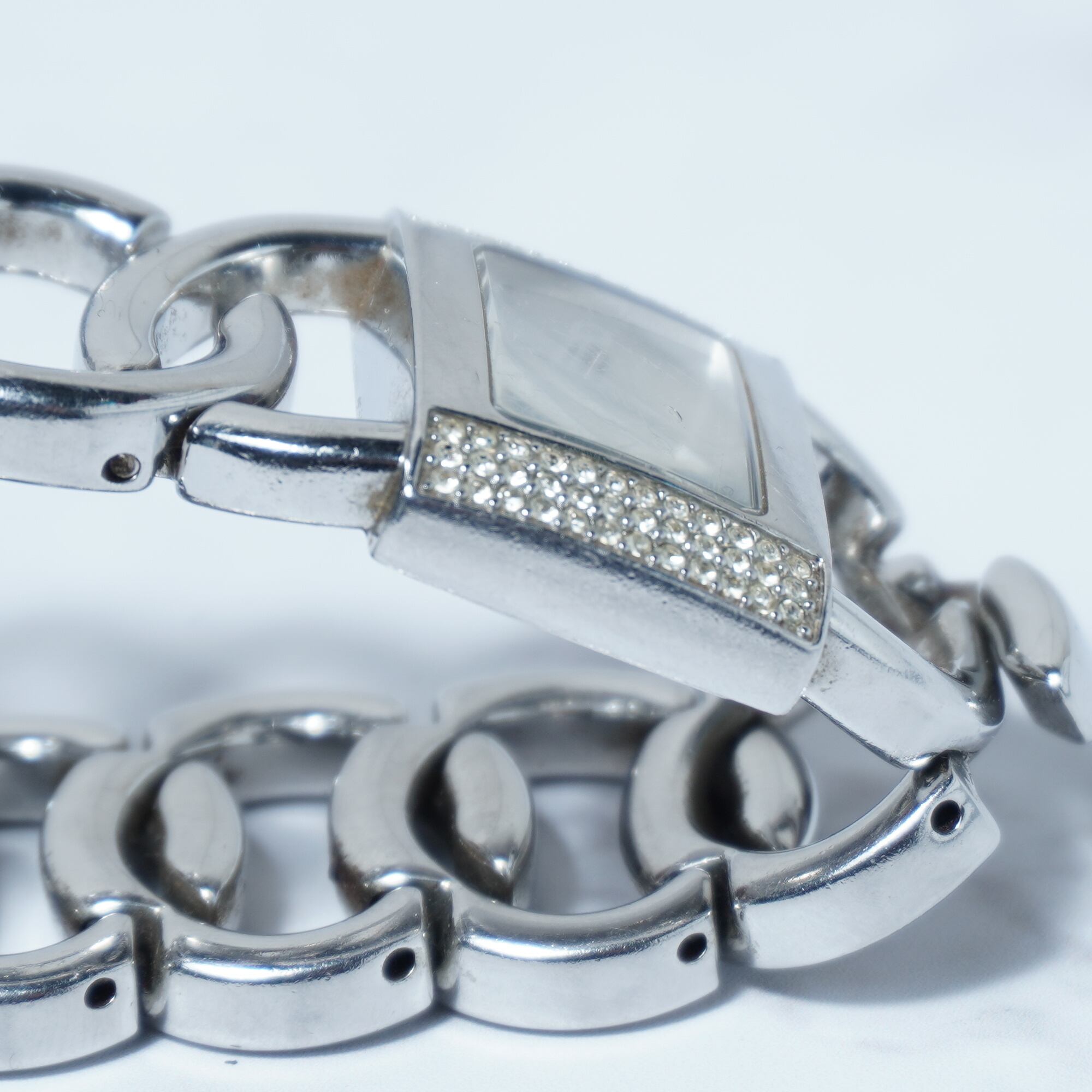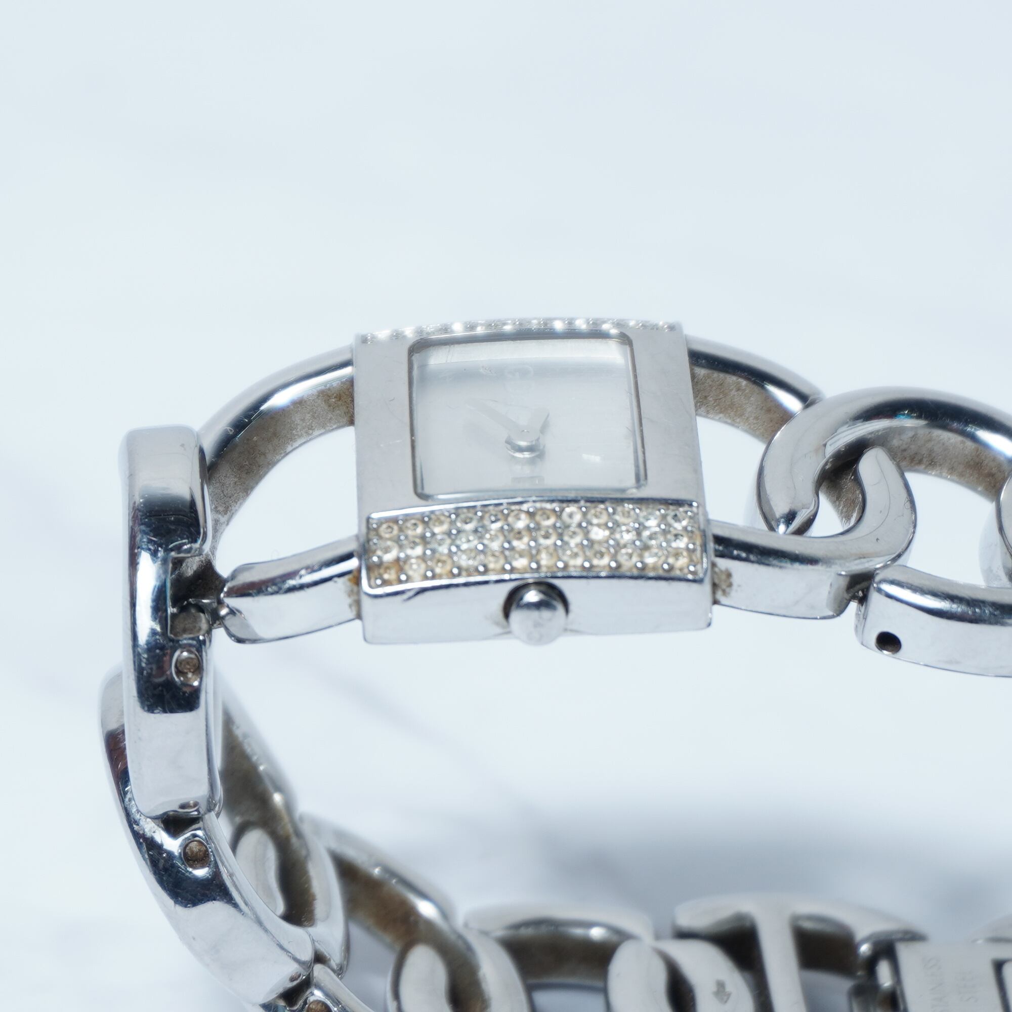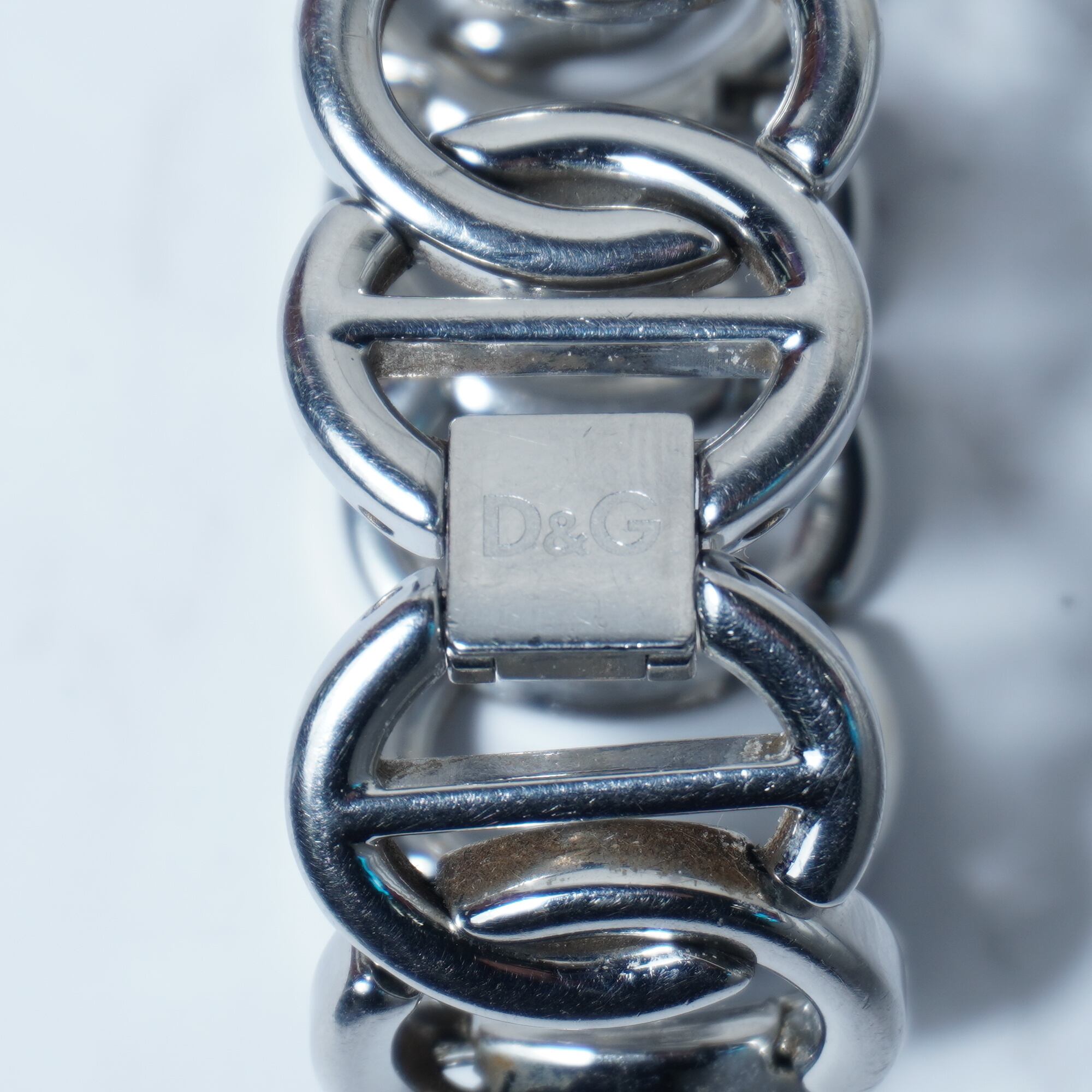【DOLCE&GABBNA】ドルチェ&ガッバーナ 稼働品 D&Gロゴラインストーンベゼルバングルクォーツウォッチ