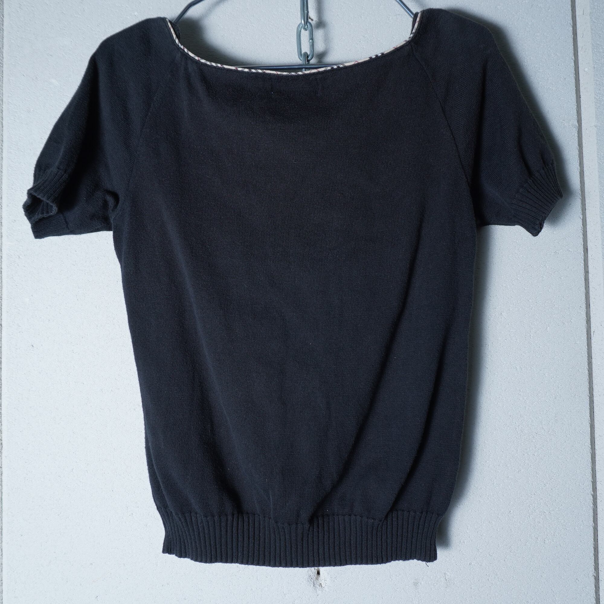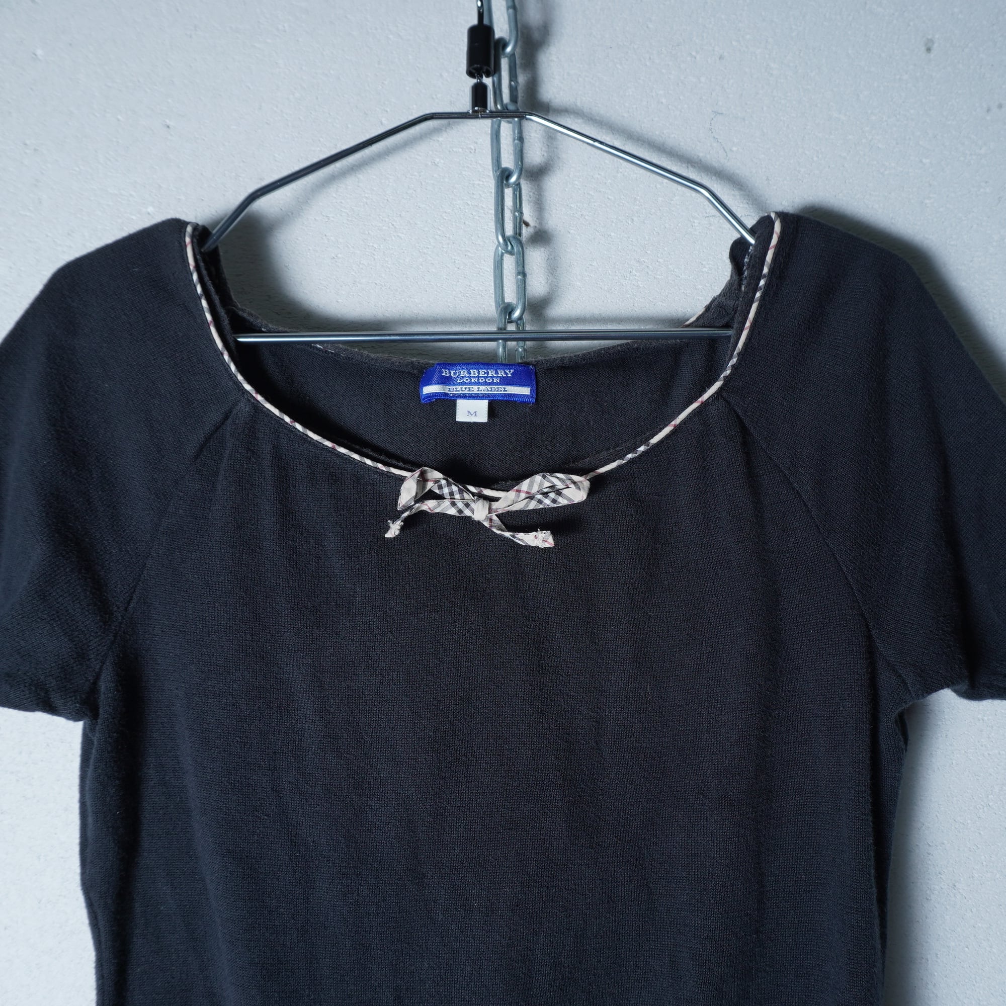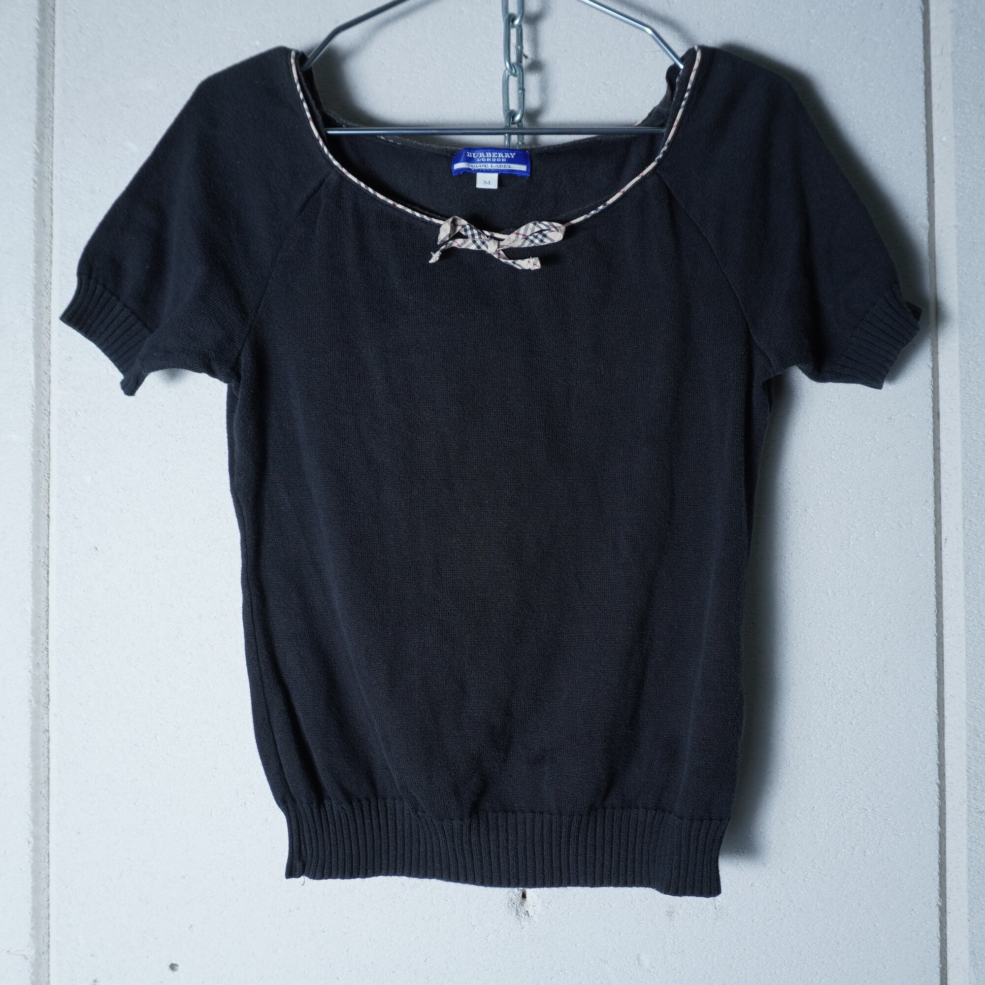 【BURBERRY】バーバリー ノバチェックパイピング・リボン半袖ニット black