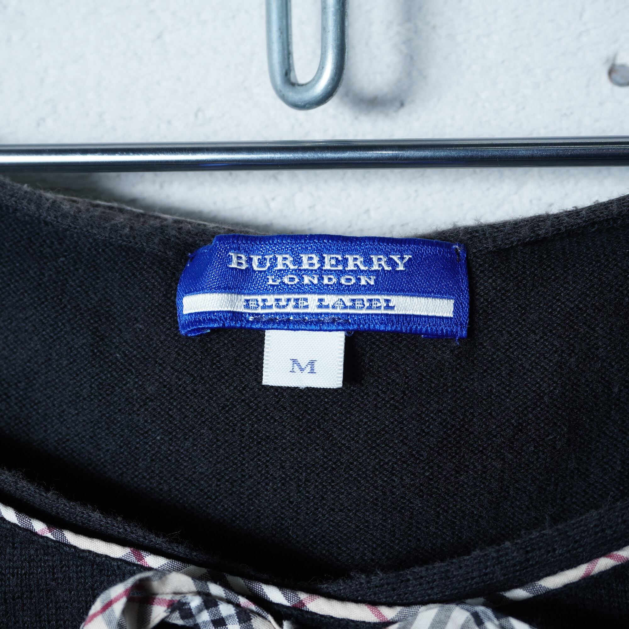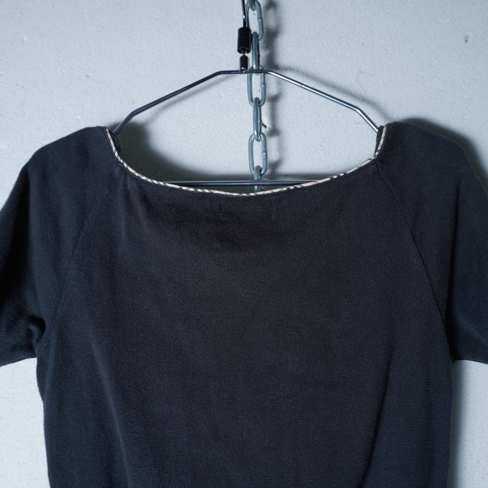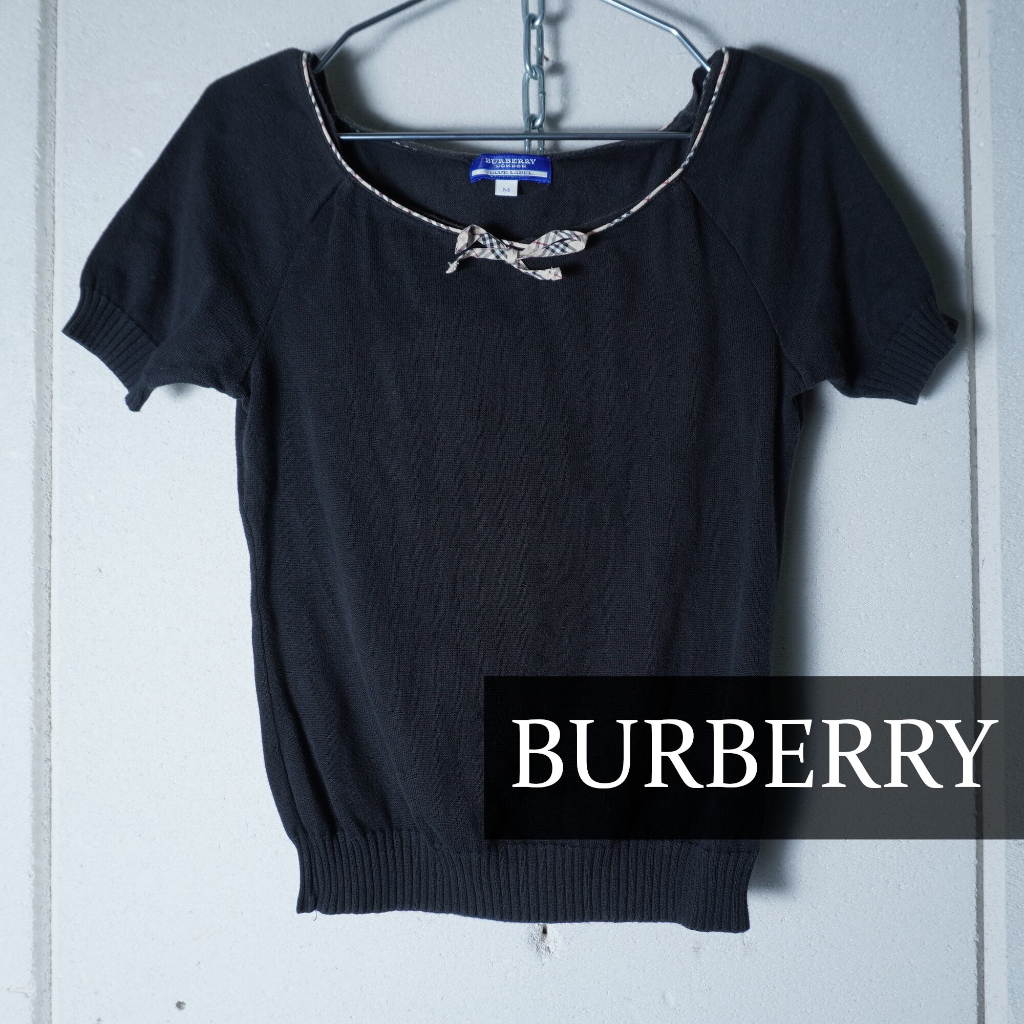 【BURBERRY】バーバリー ノバチェックパイピング・リボン半袖ニット black