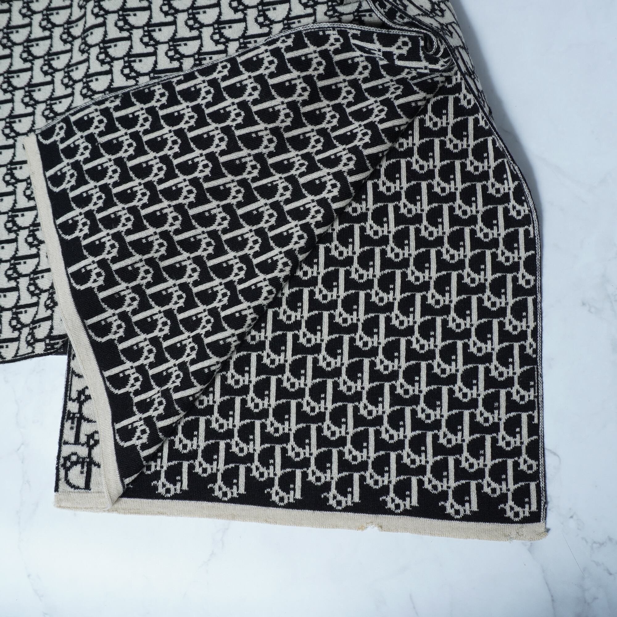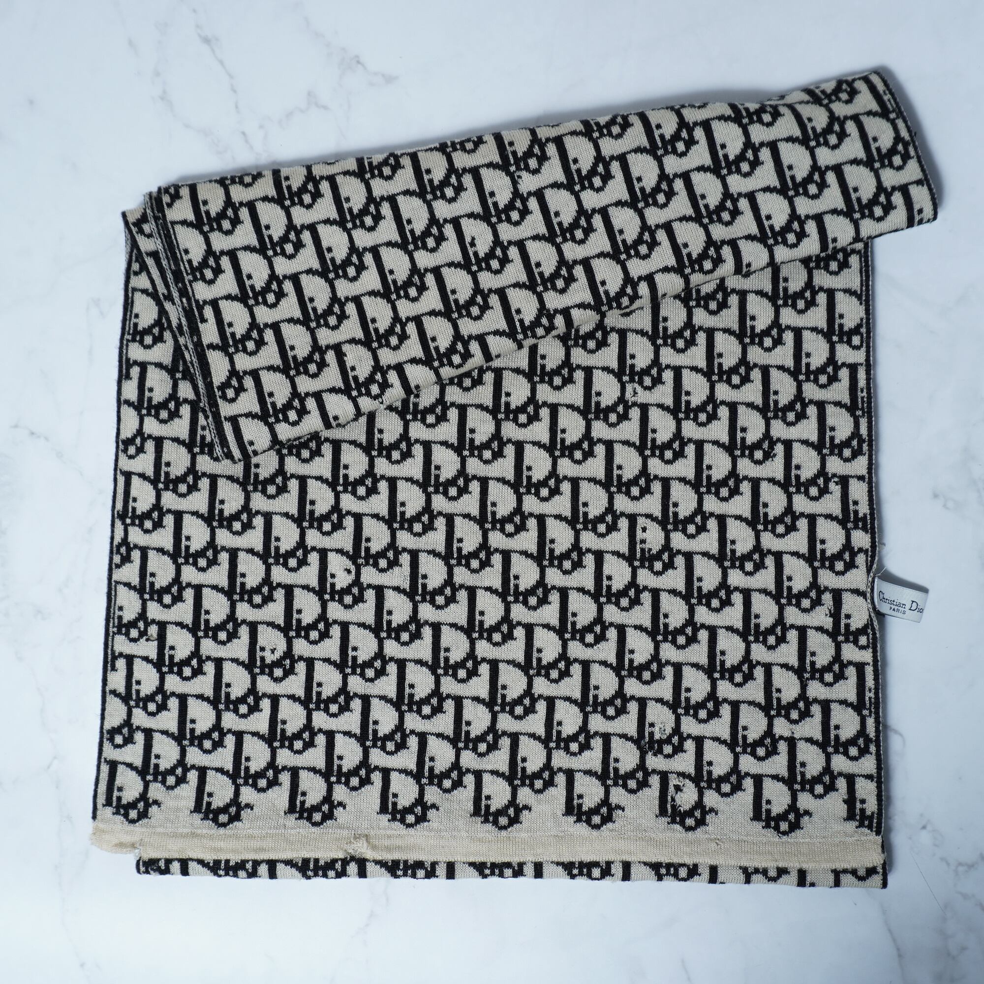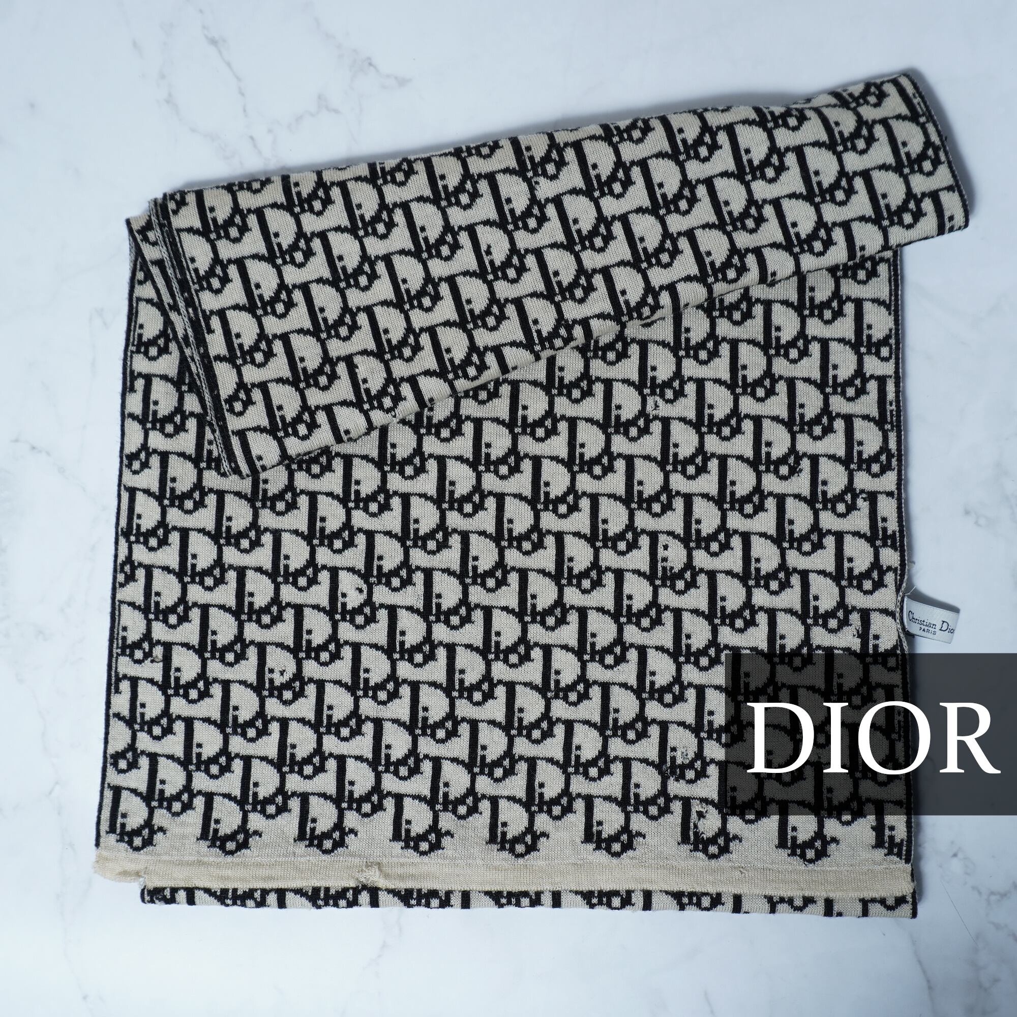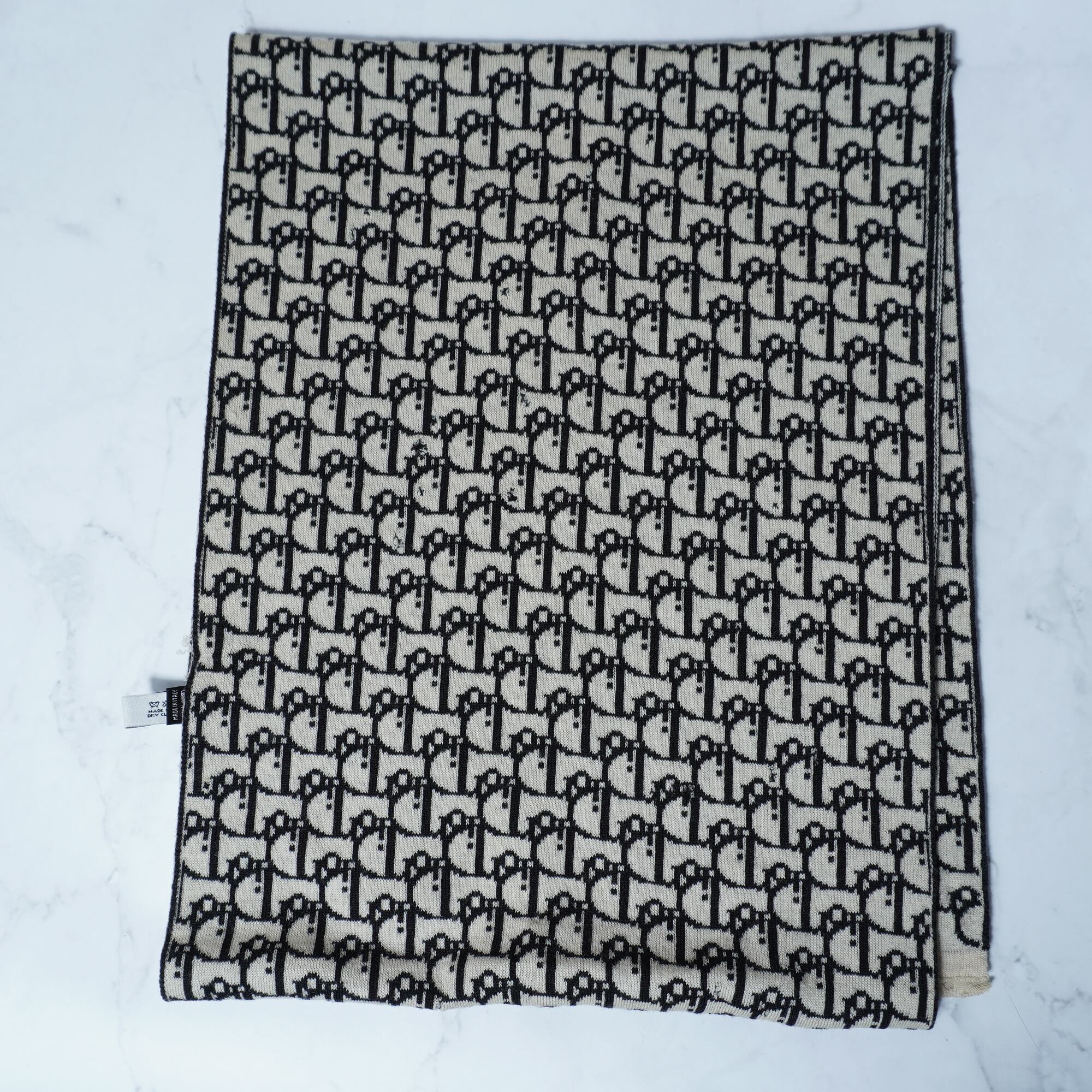 【Christian Dior】クリスチャンディオール WOOL100% トロッター総柄マフラー white&black