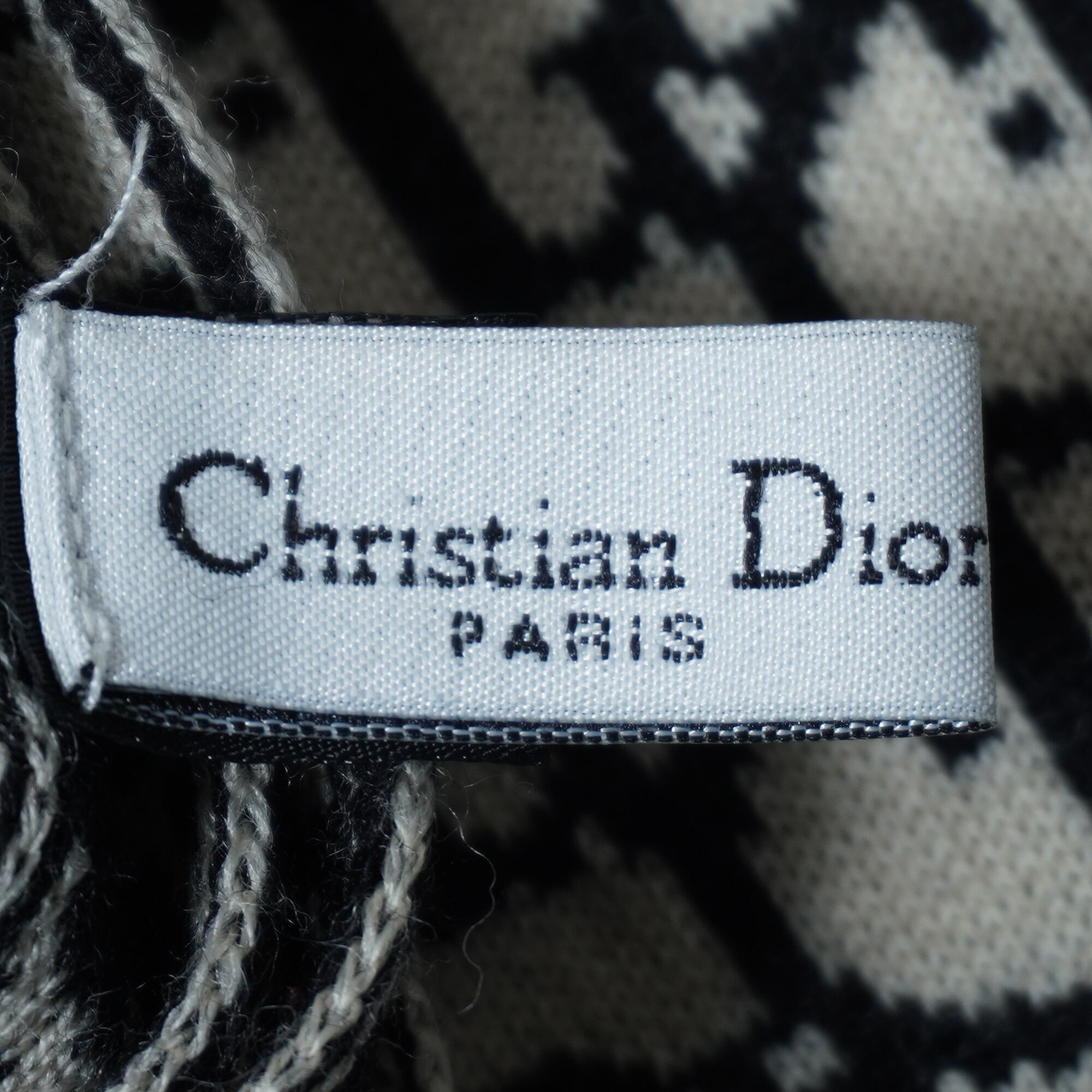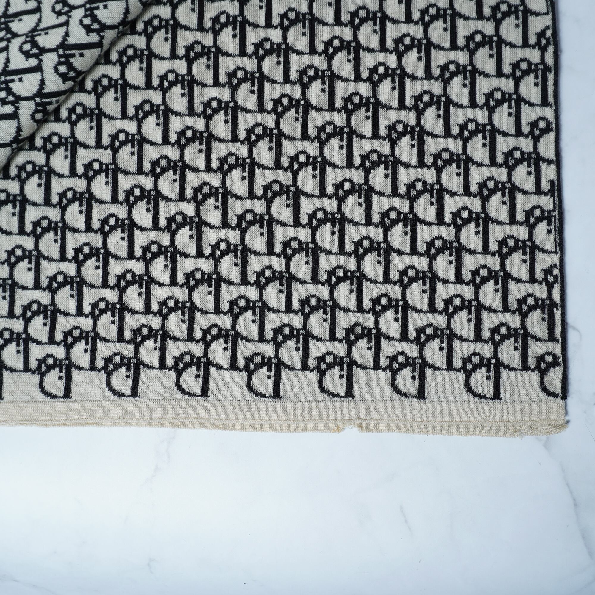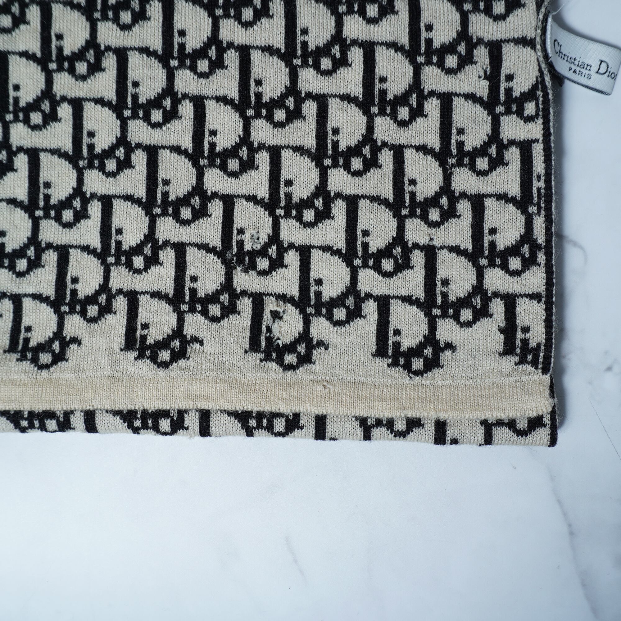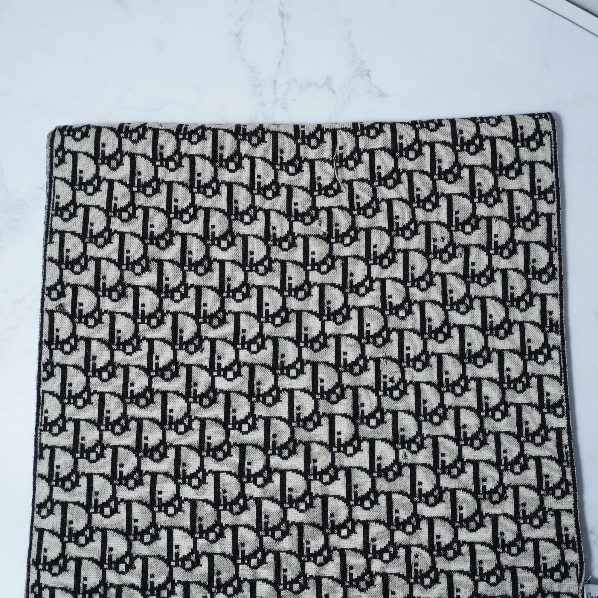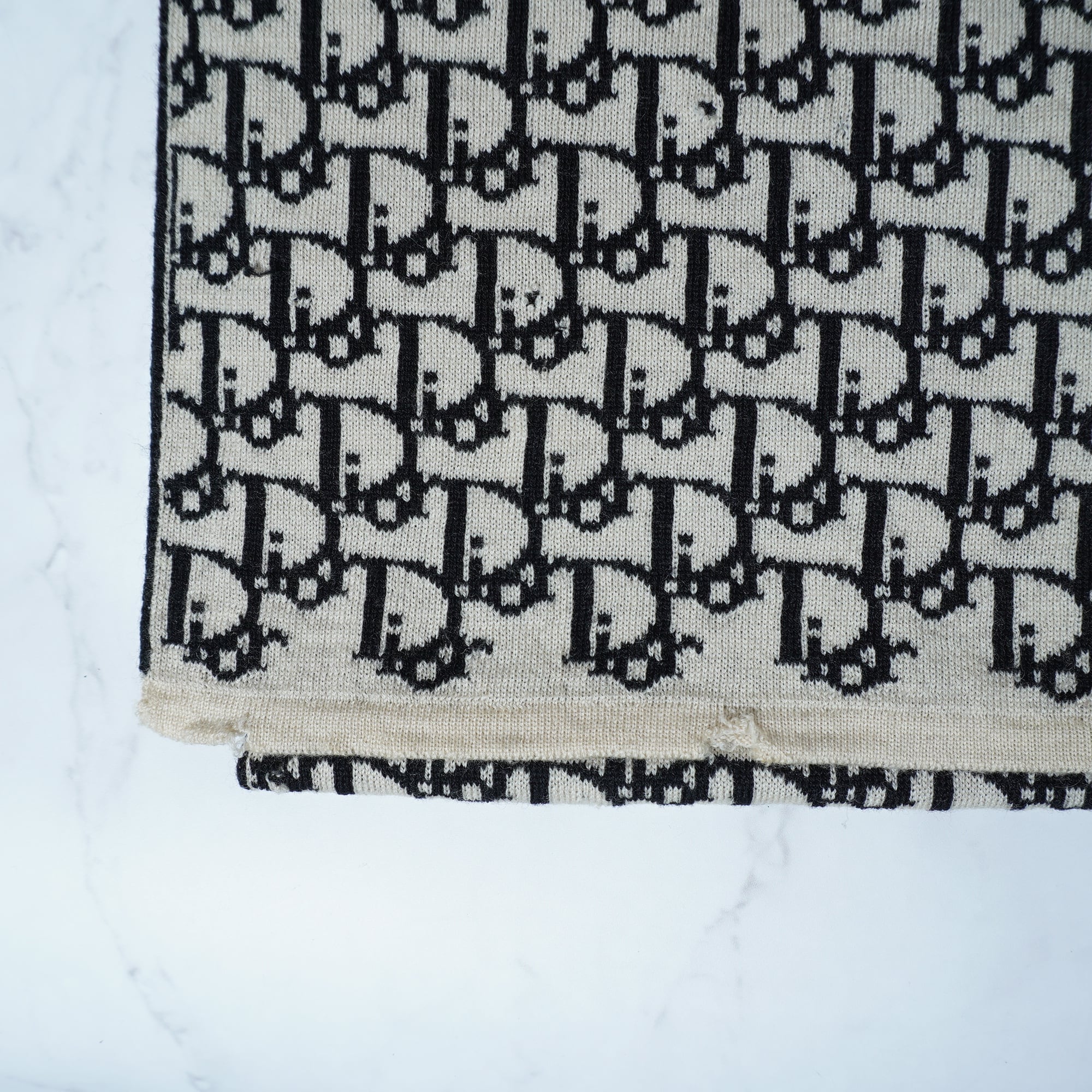 【Christian Dior】クリスチャンディオール WOOL100% トロッター総柄マフラー white&black