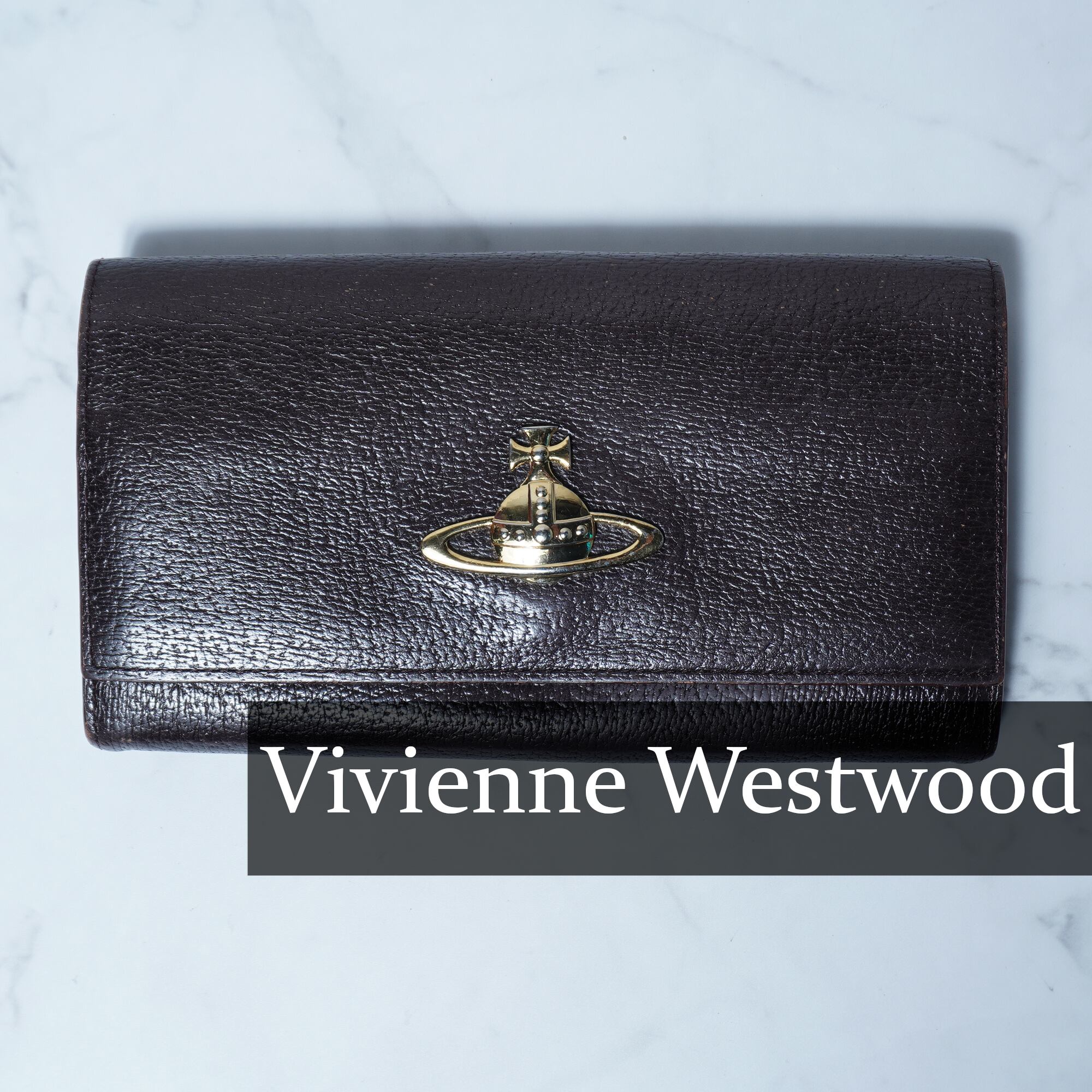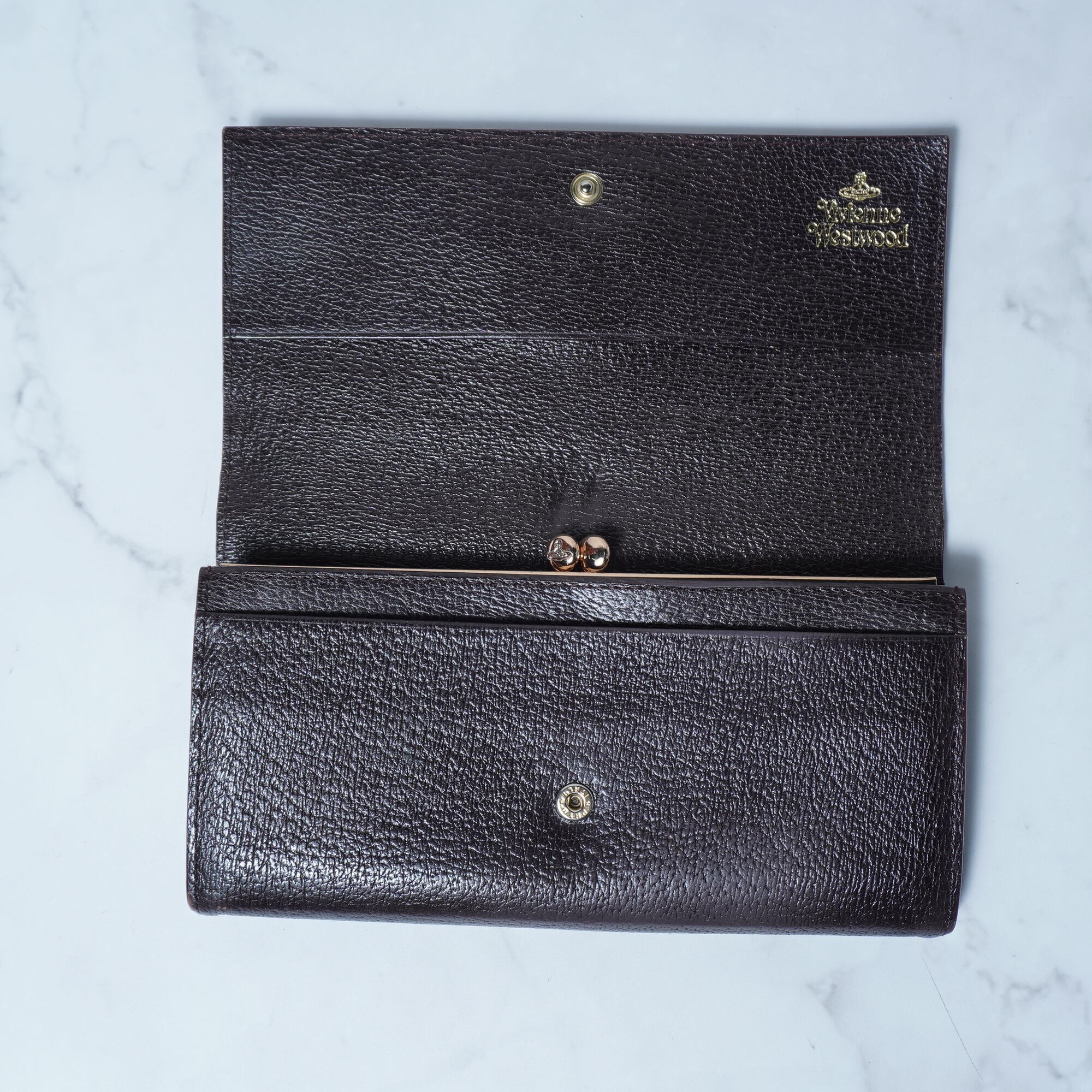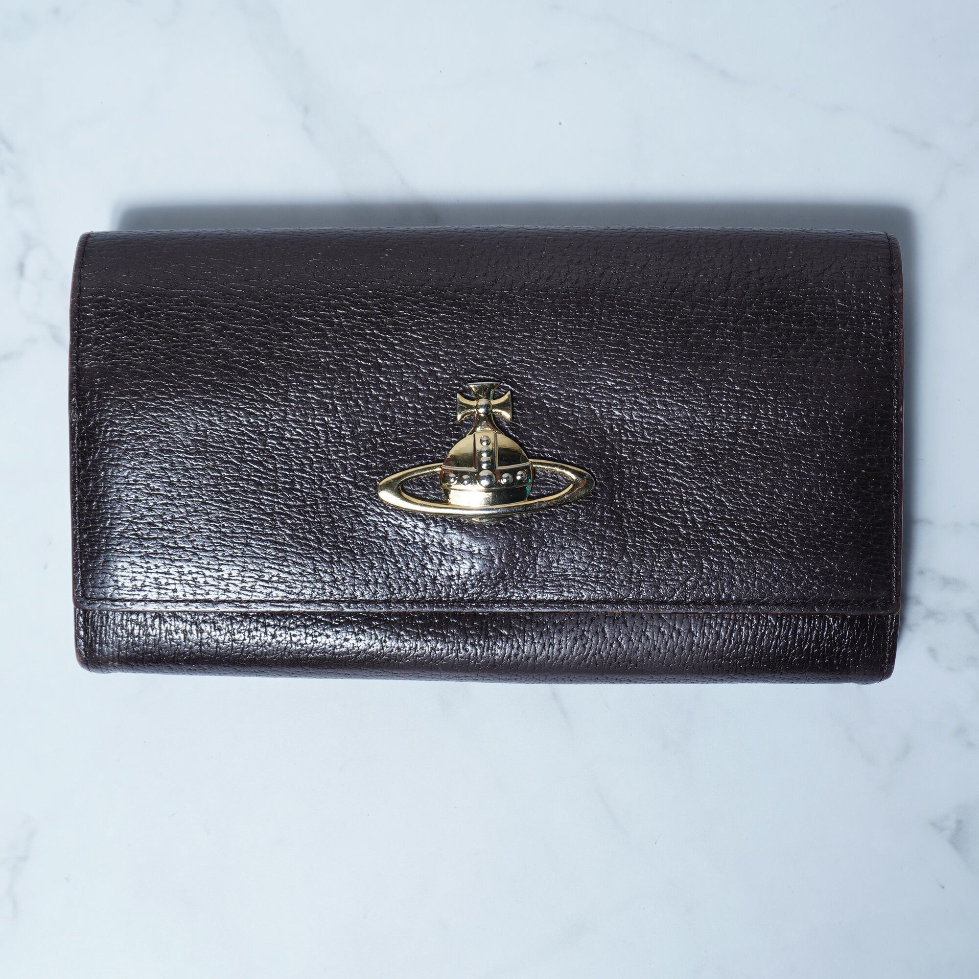 【Vivienne Westwood】ヴィヴィアンウエストウッド オーブロゴシボレザーロングウォレット dark brown