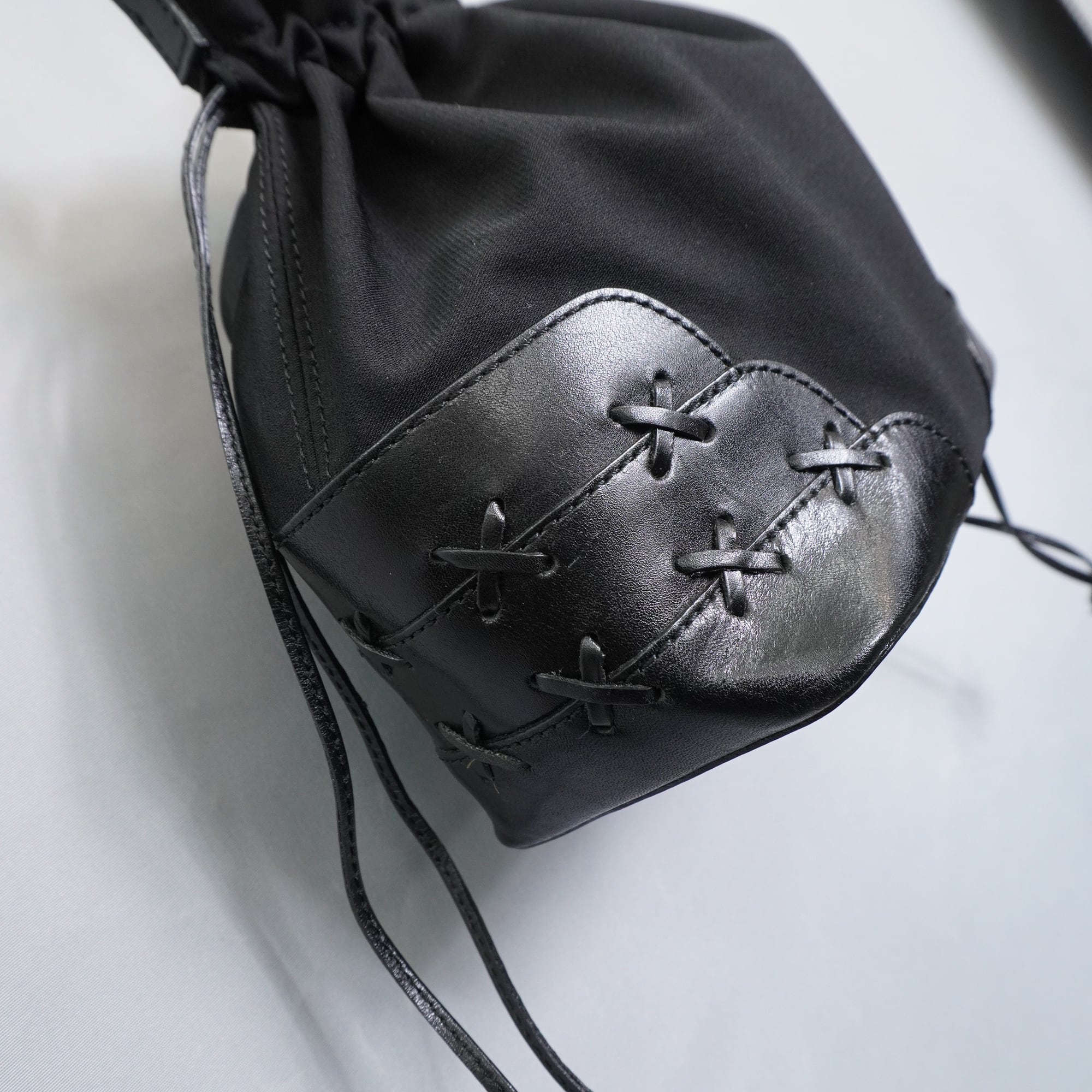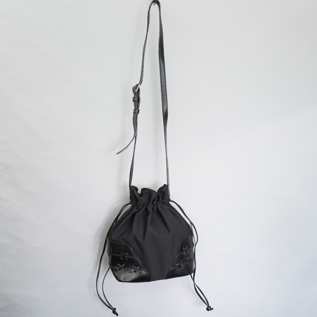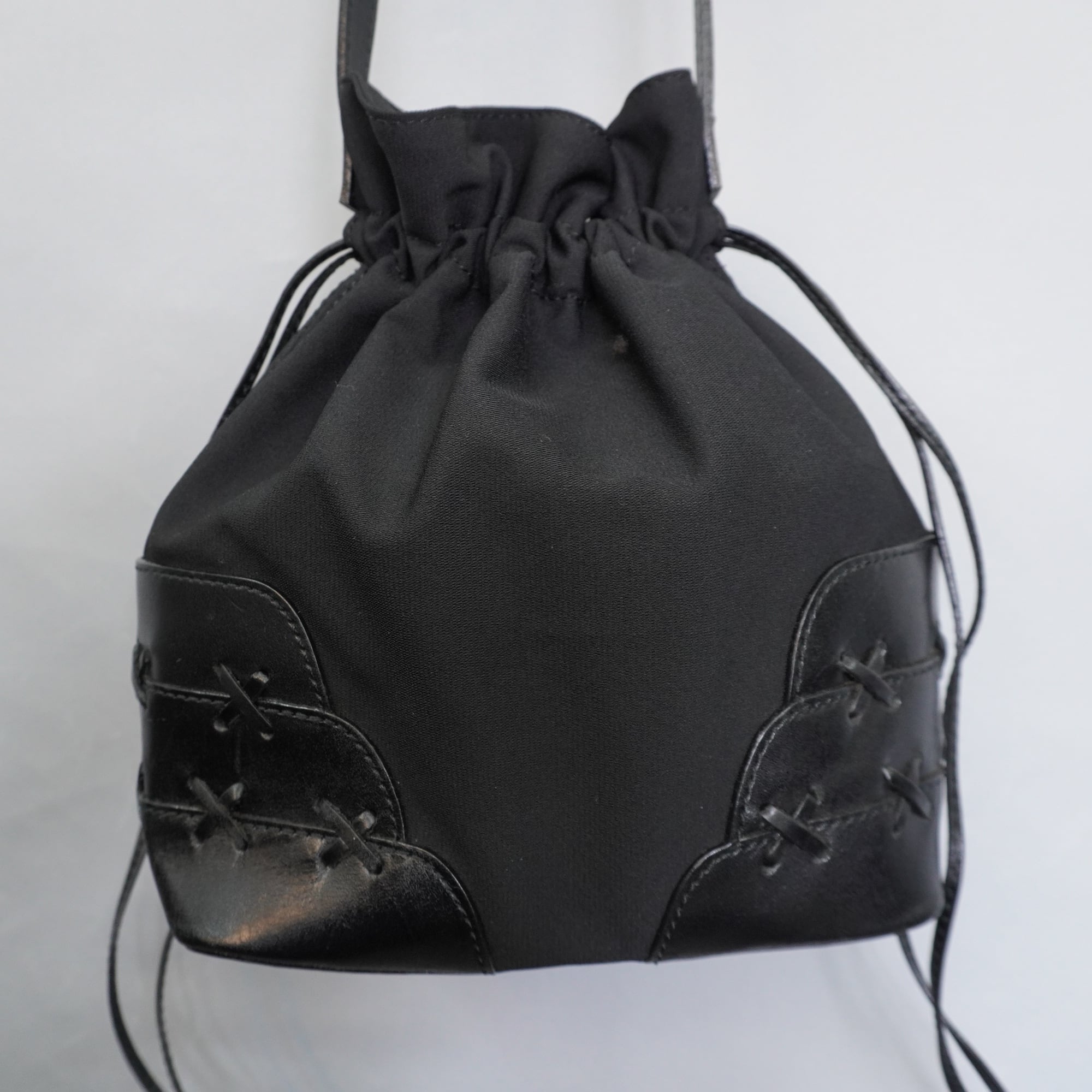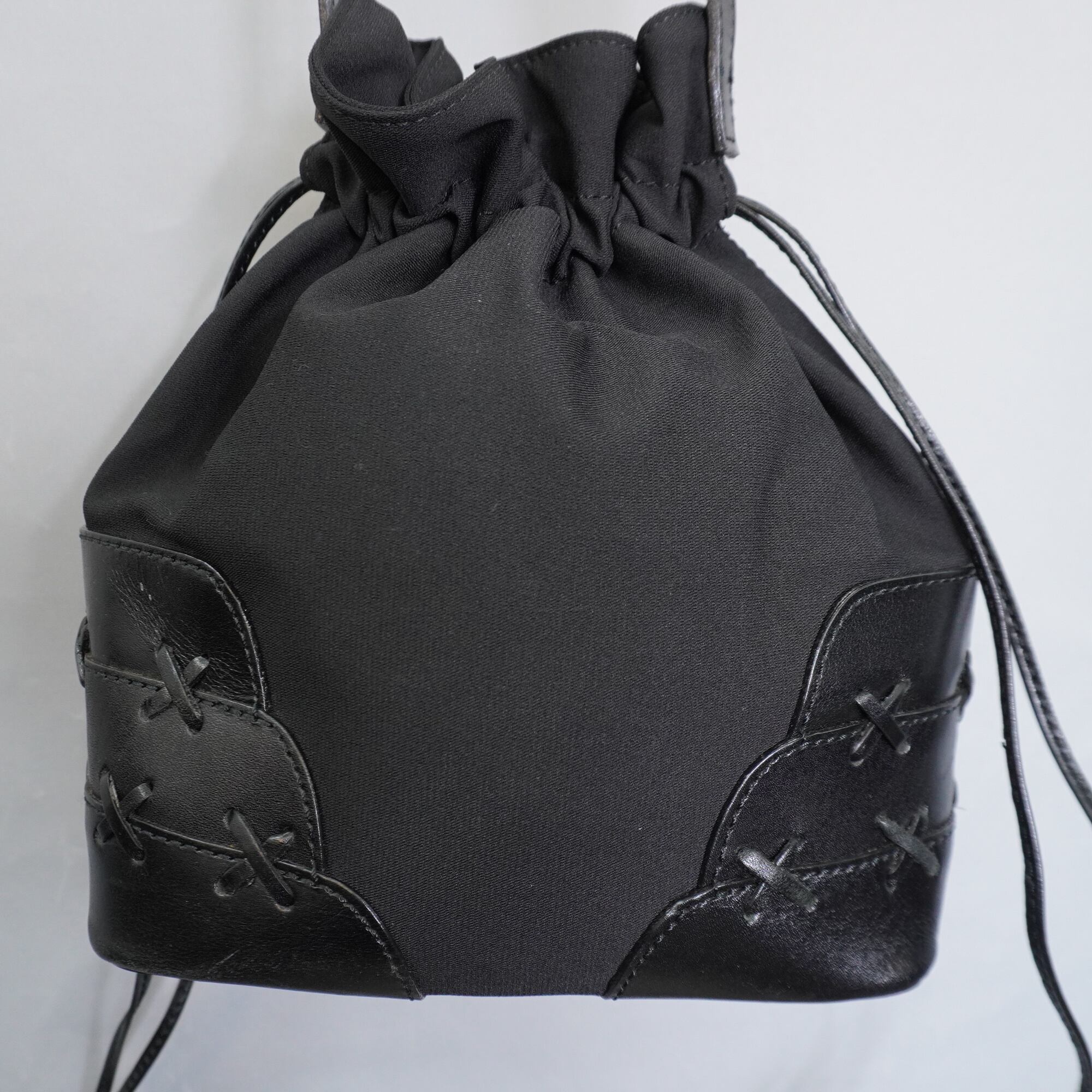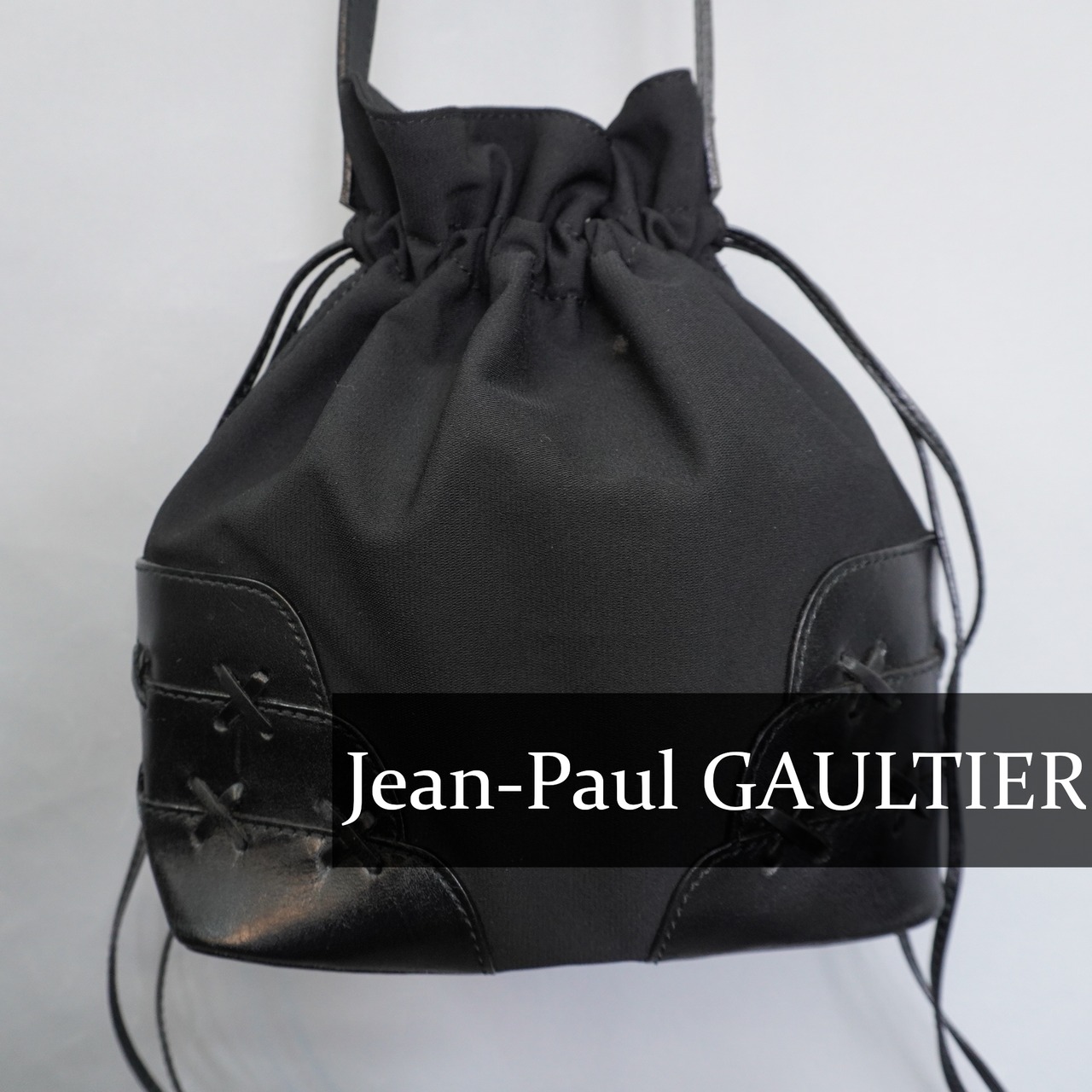 【Jean Paul GAULTIER】ジャンポールゴルチエ vintage 巾着型レザー切替ショルダーバッグ black