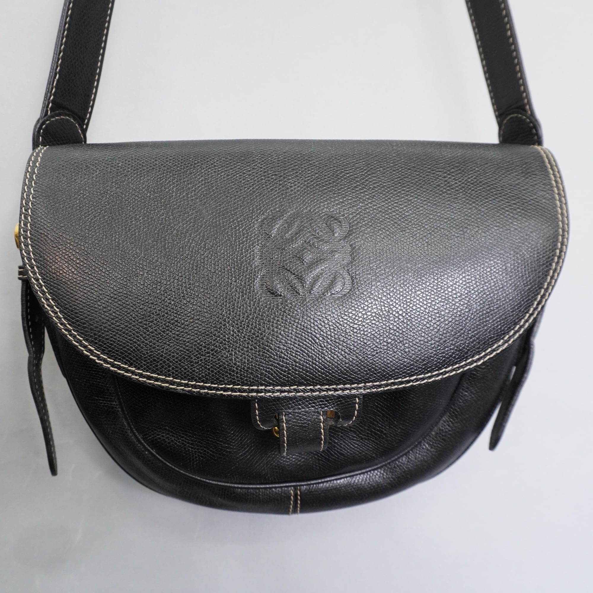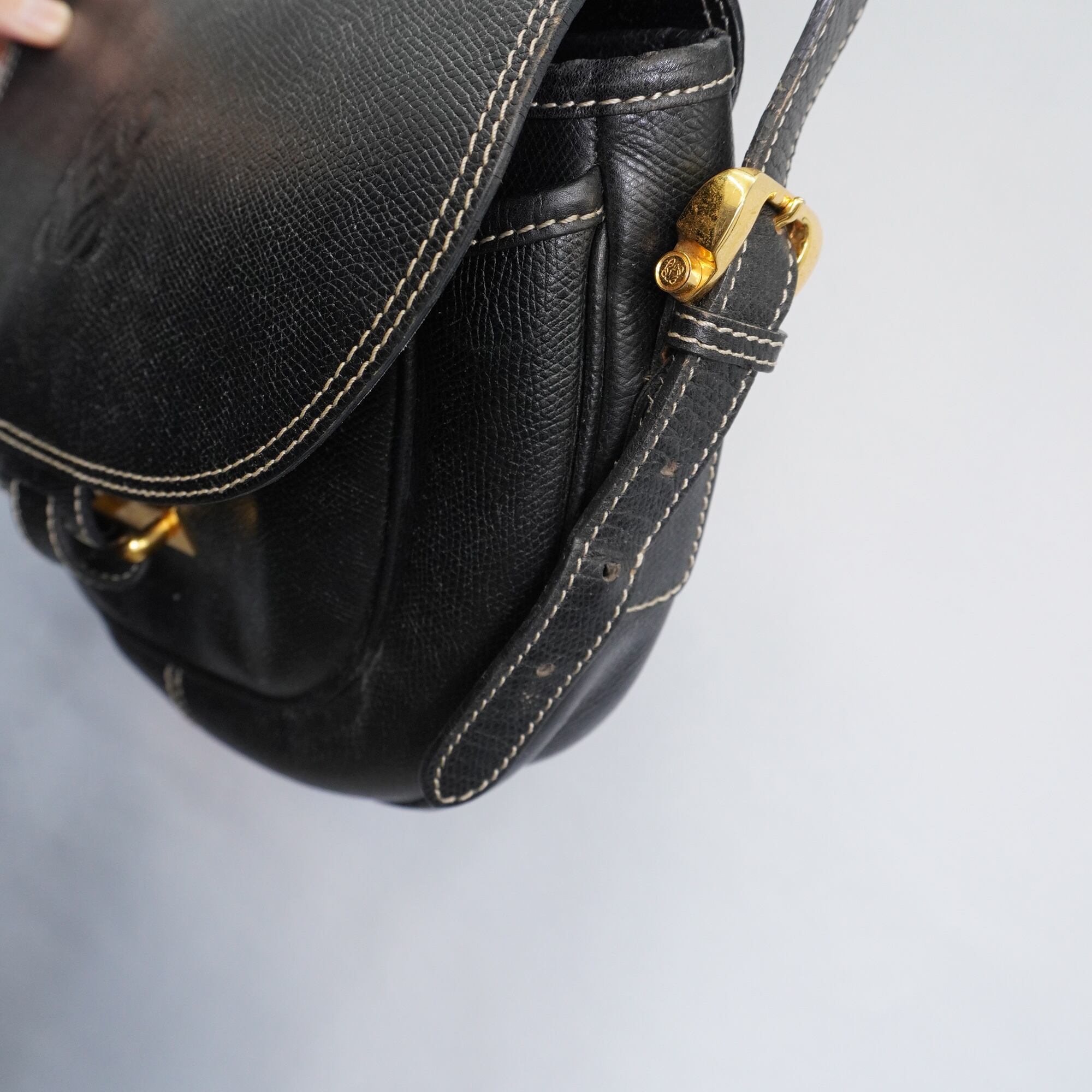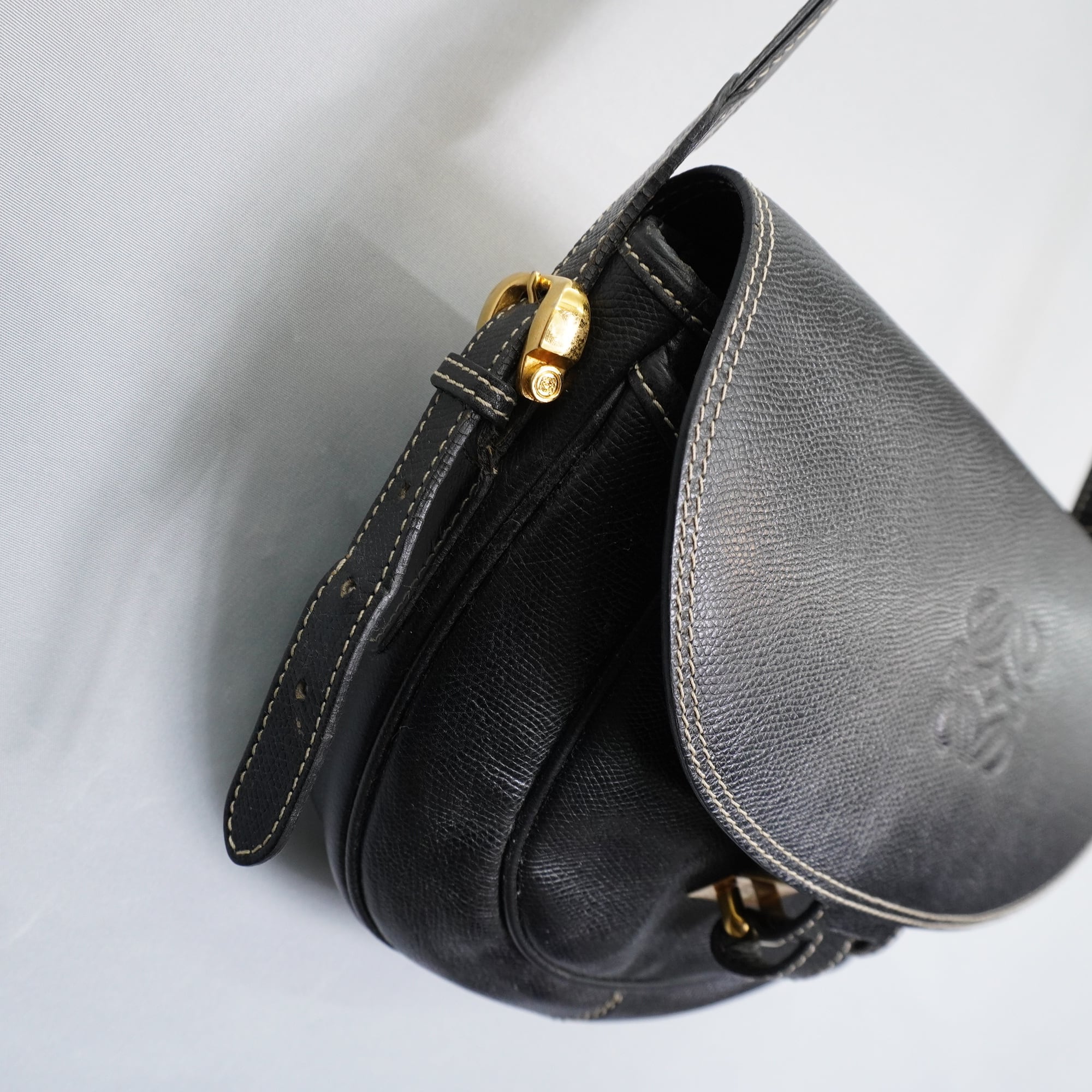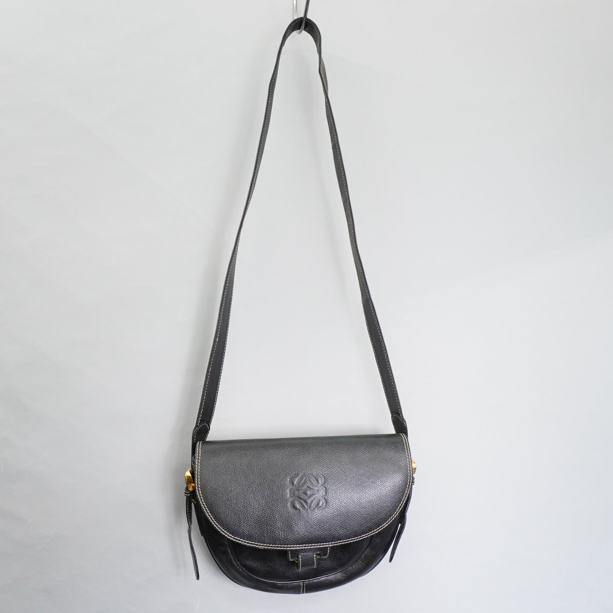 【LOEWE】ロエベ vintage アナグラムエンボスラウンドショルダーバッグ black