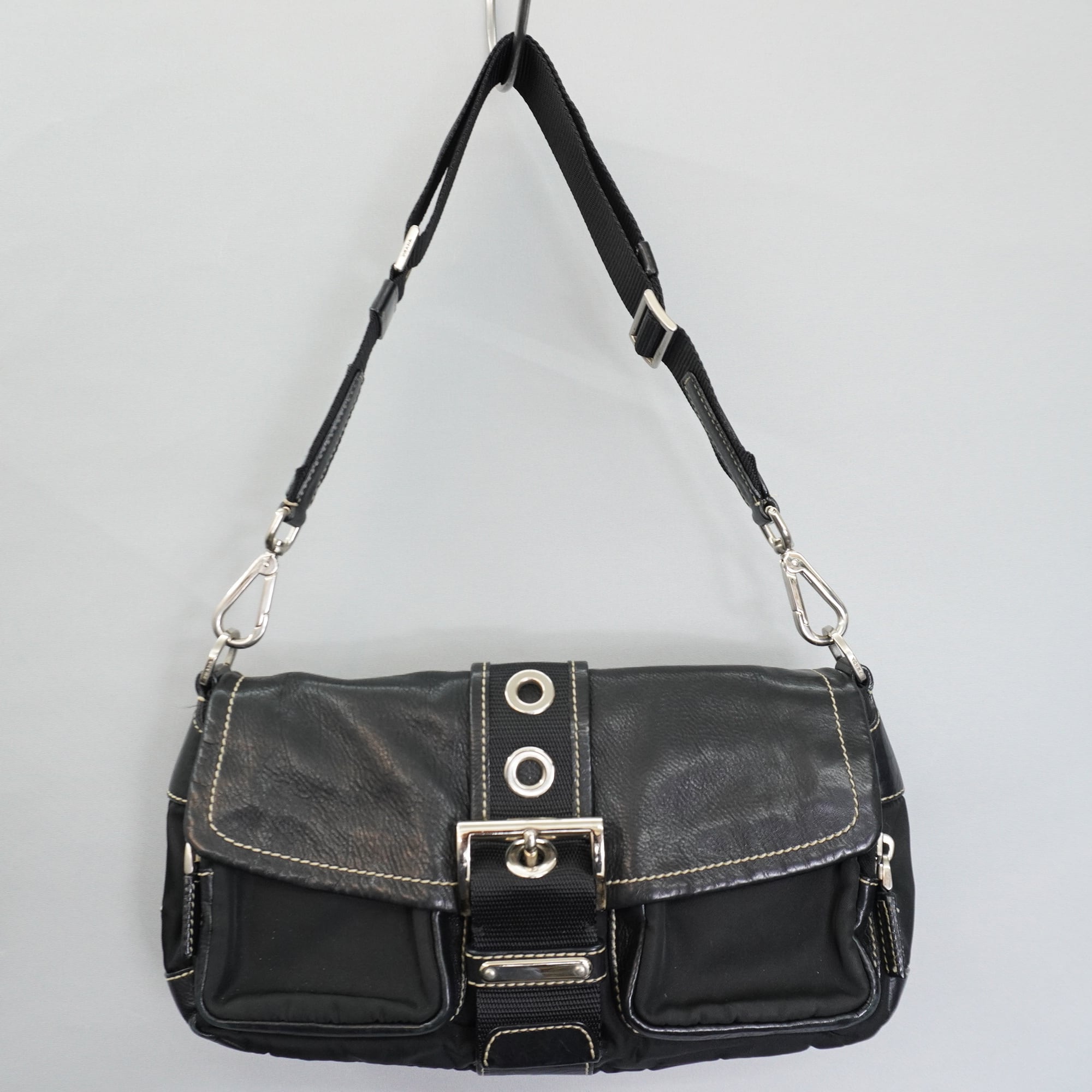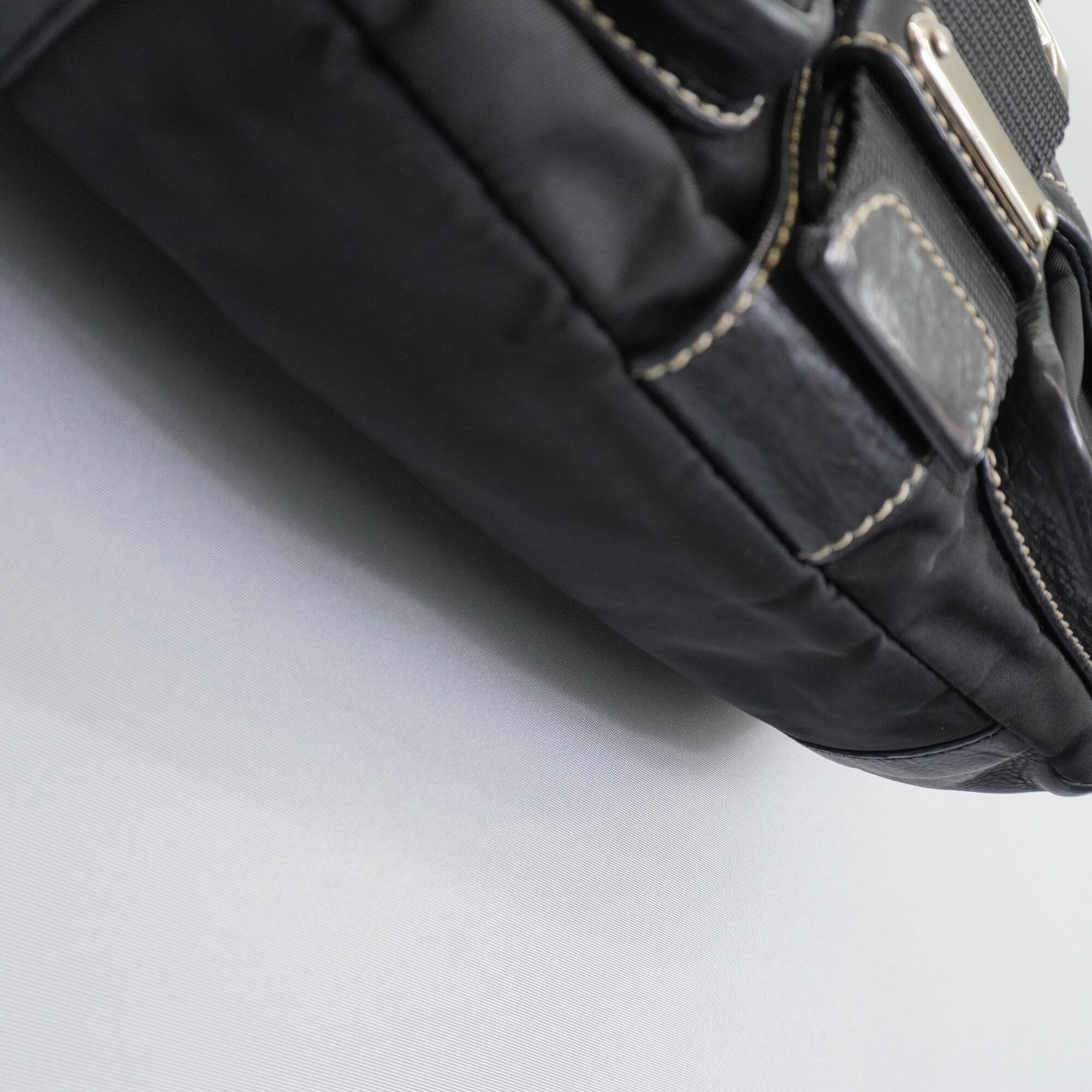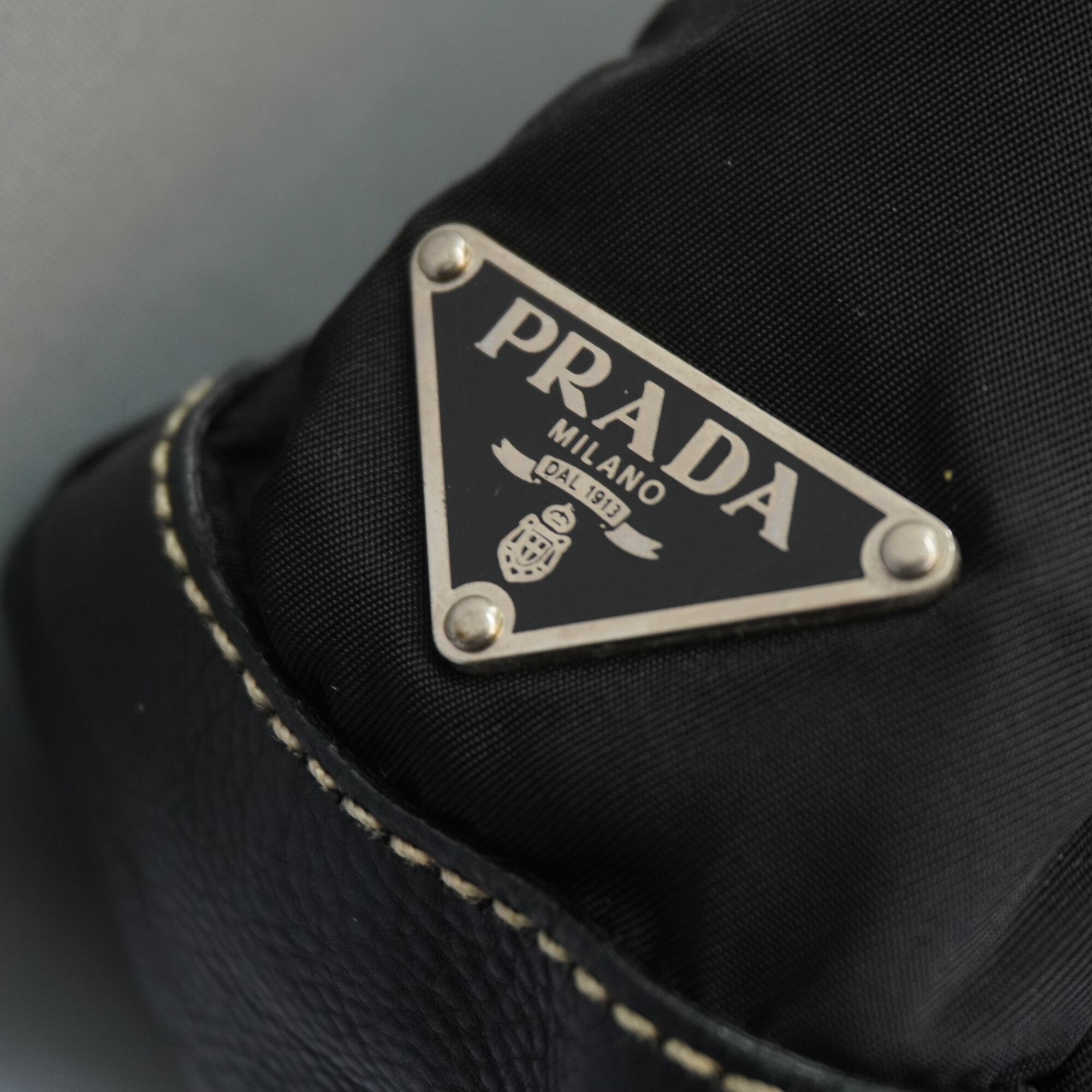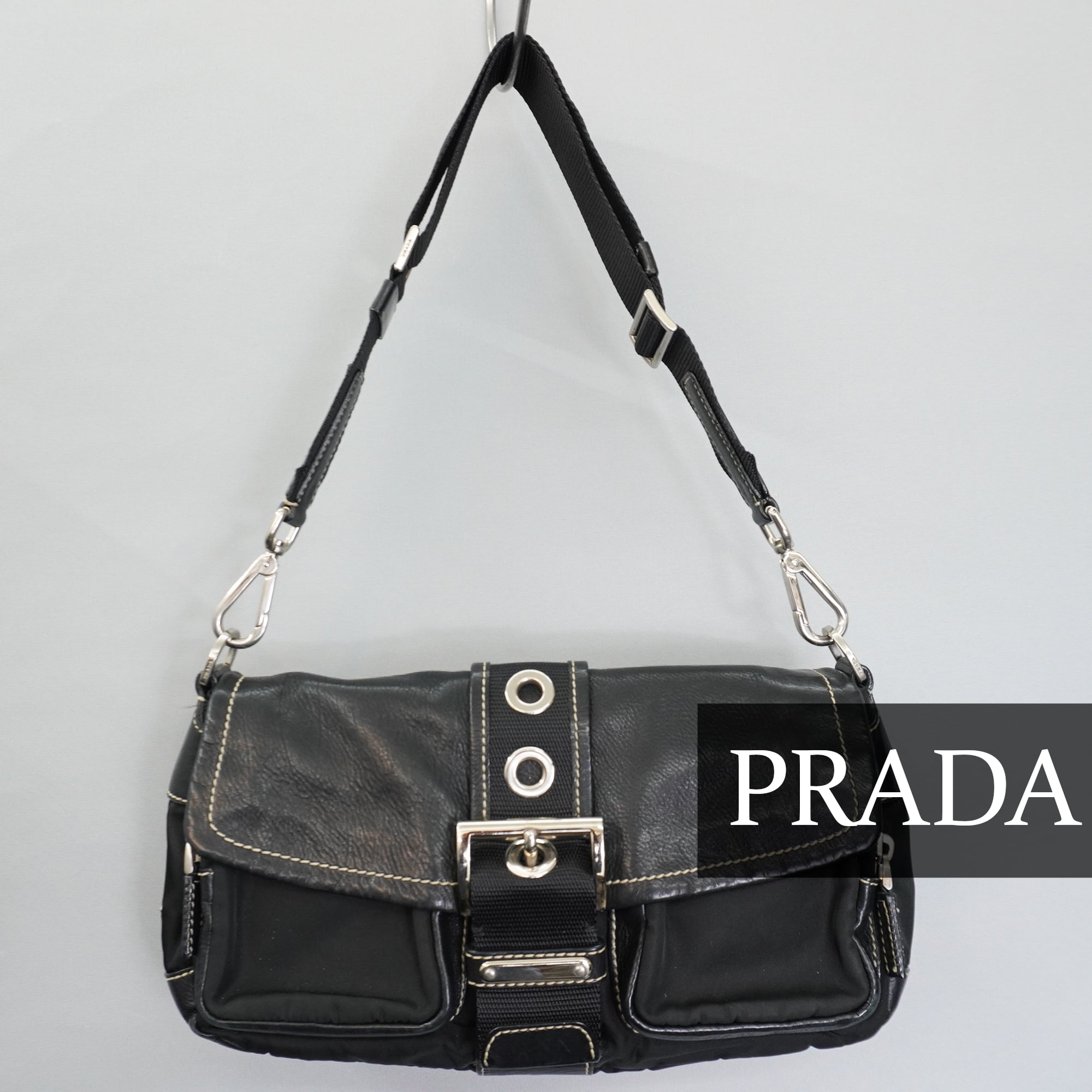 【PRADA】プラダ vintage 三角ロゴプレート レザー切替ホーボーワンショルダーバッグ black