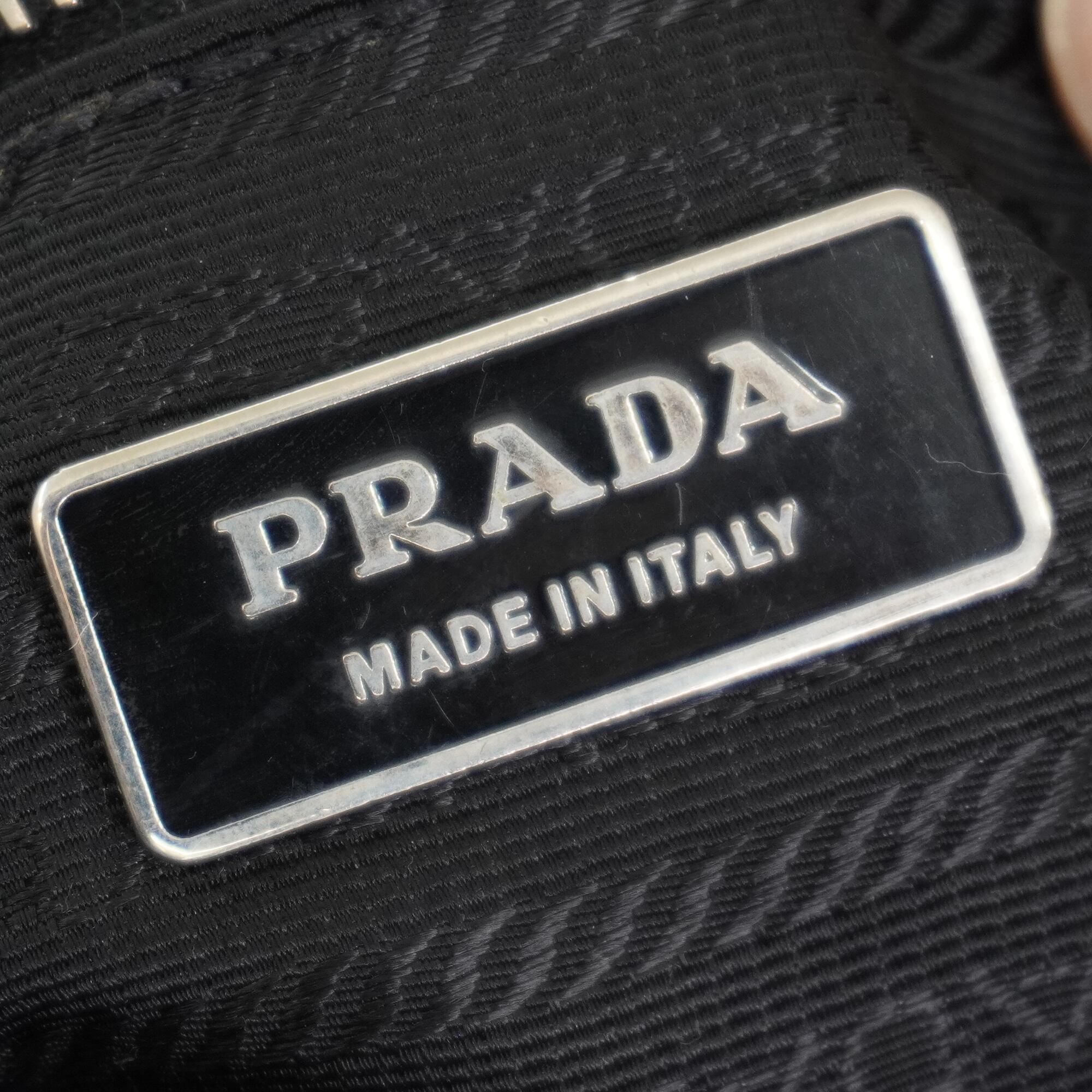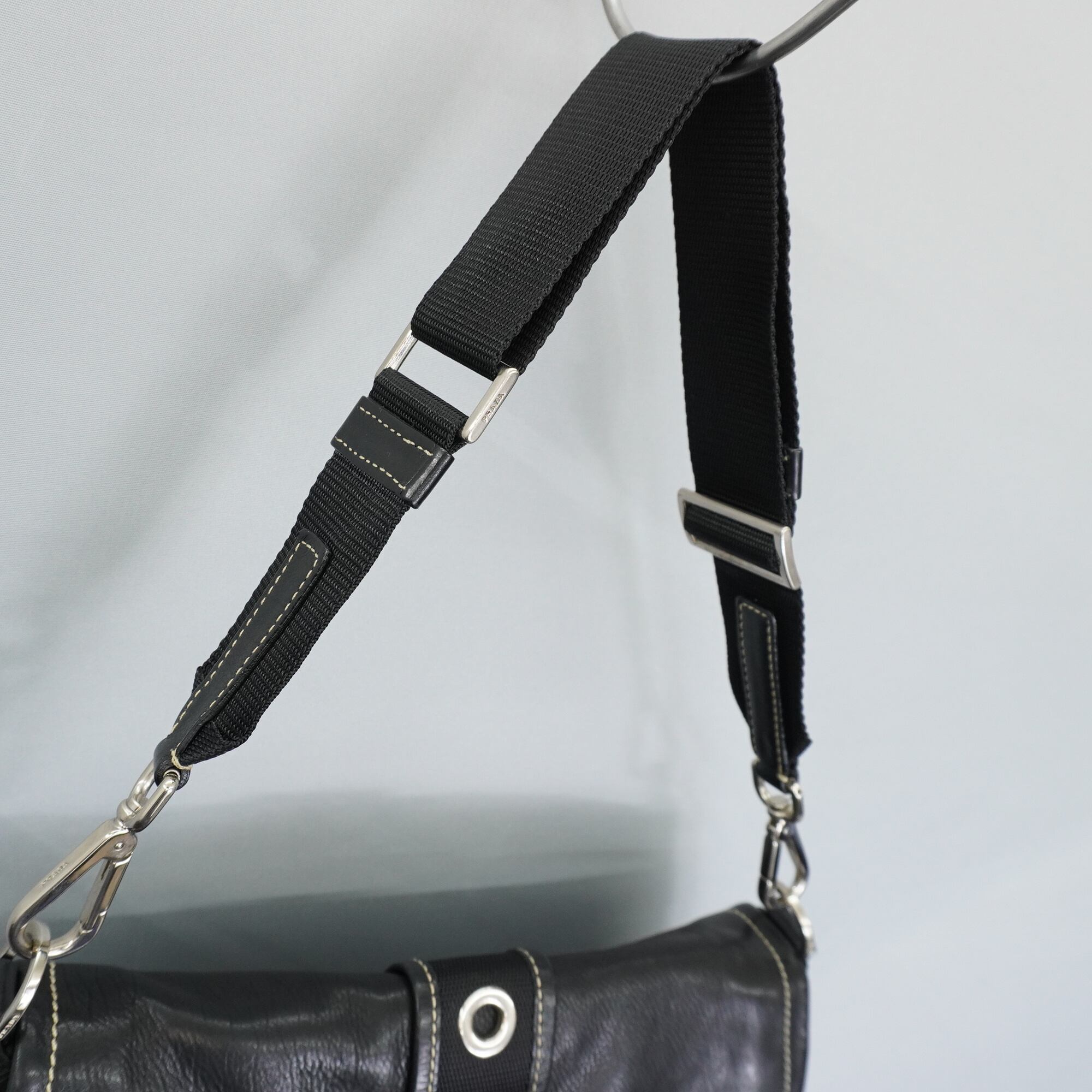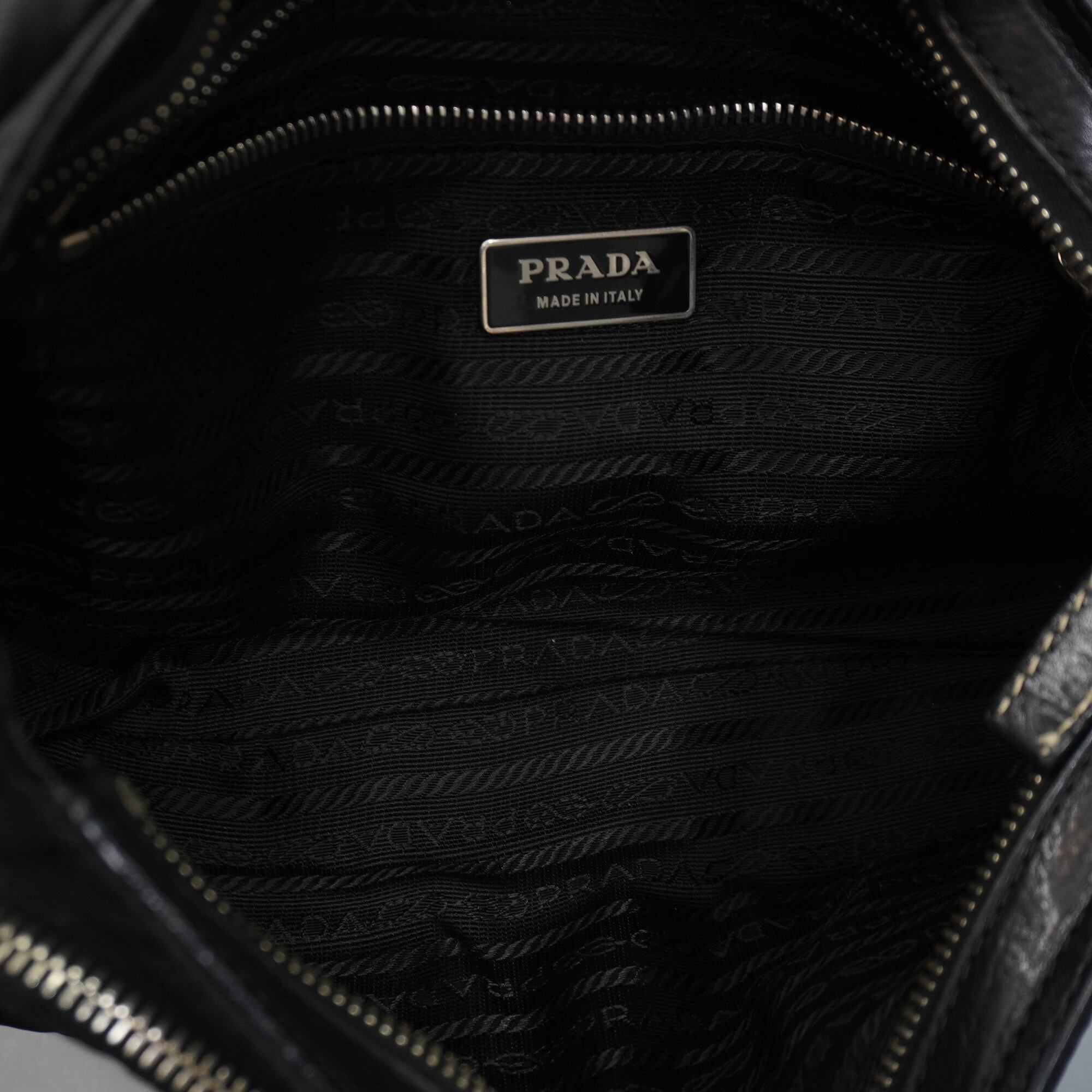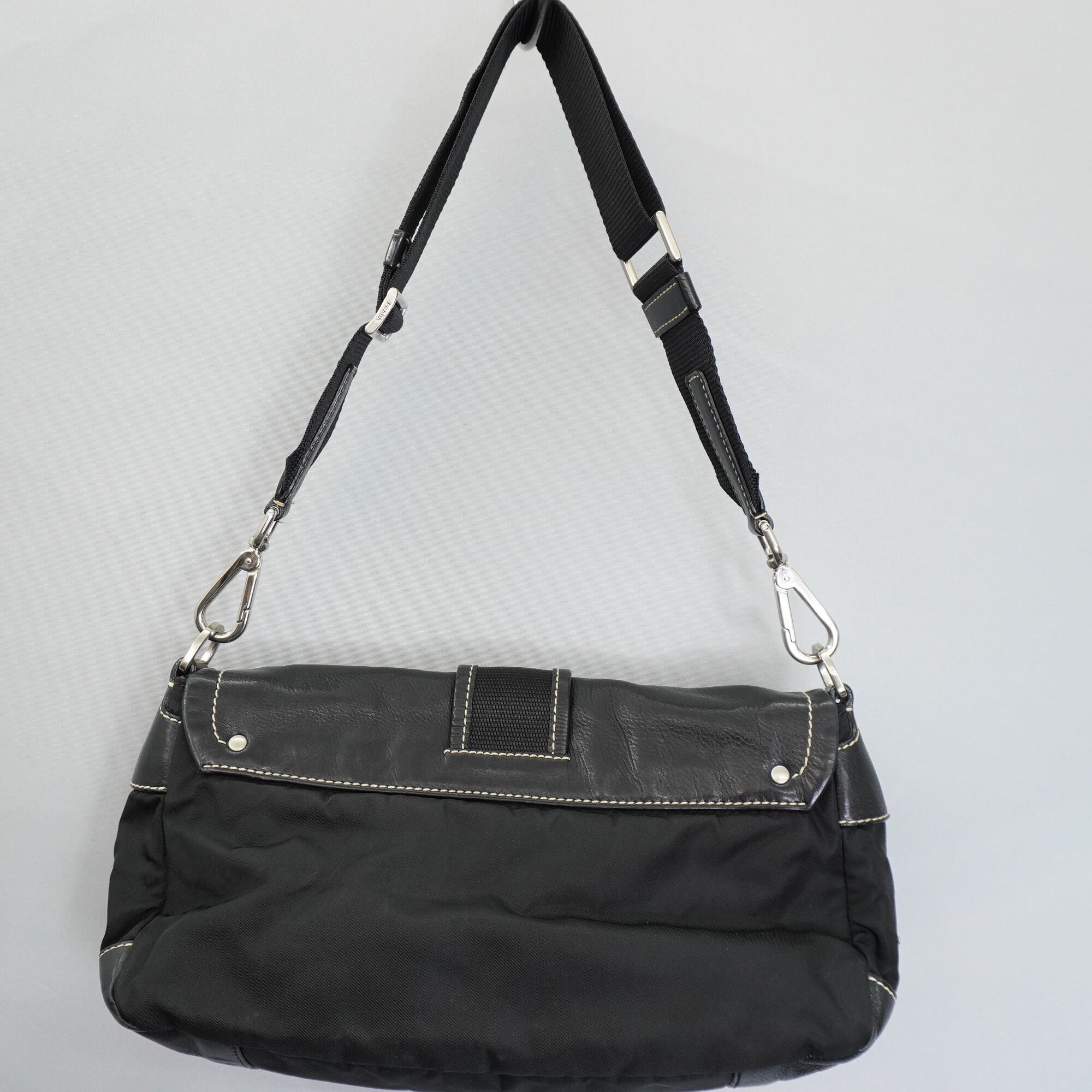 【PRADA】プラダ vintage 三角ロゴプレート レザー切替ホーボーワンショルダーバッグ black
