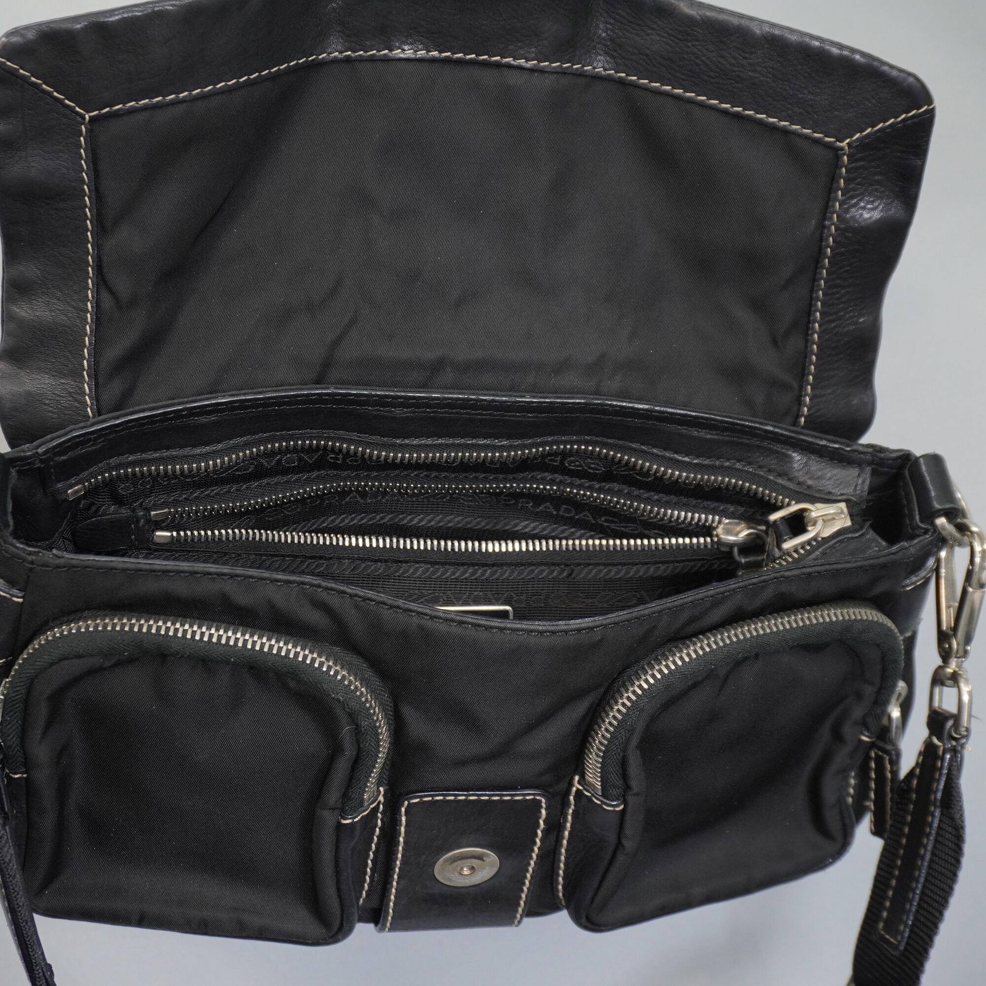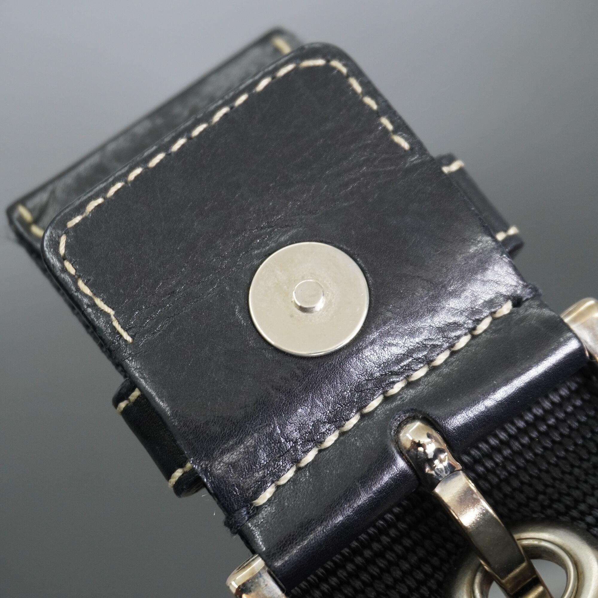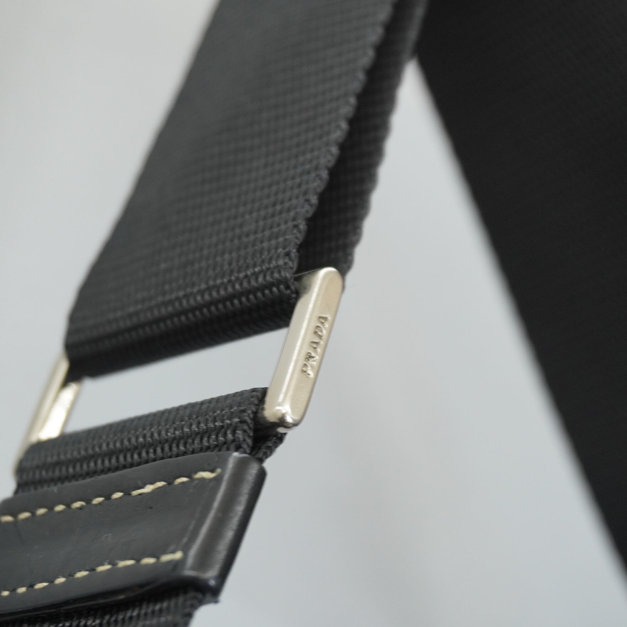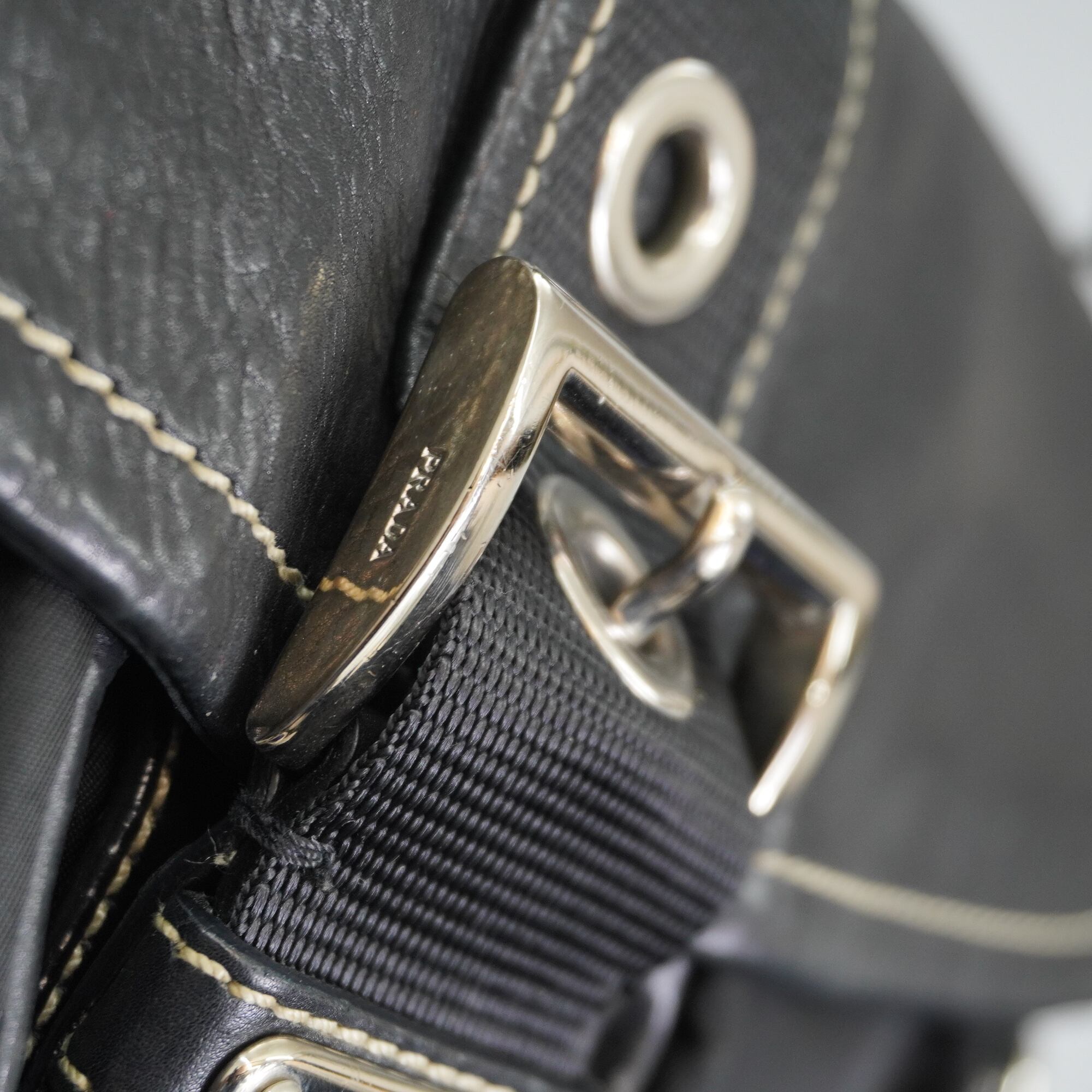 【PRADA】プラダ vintage 三角ロゴプレート レザー切替ホーボーワンショルダーバッグ black