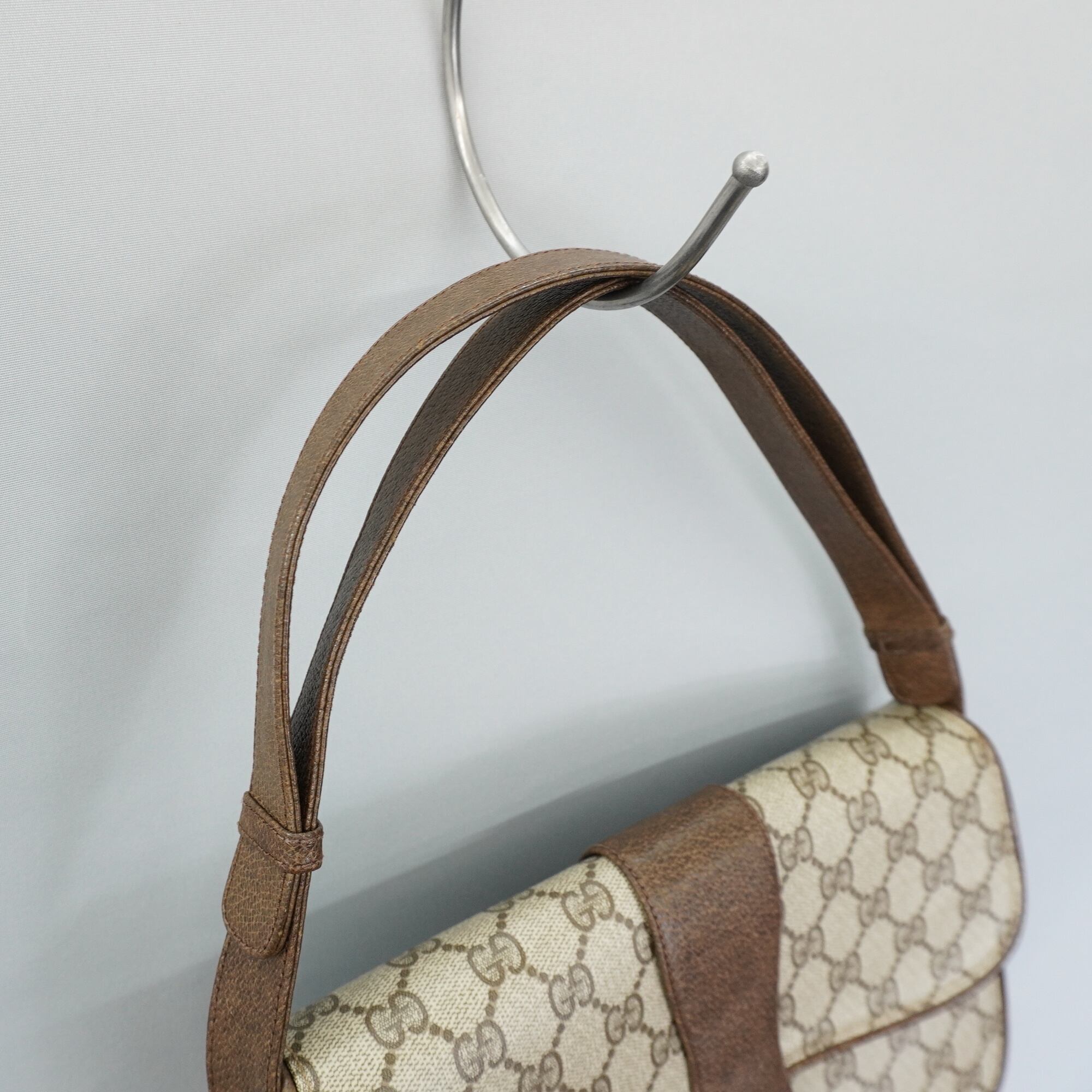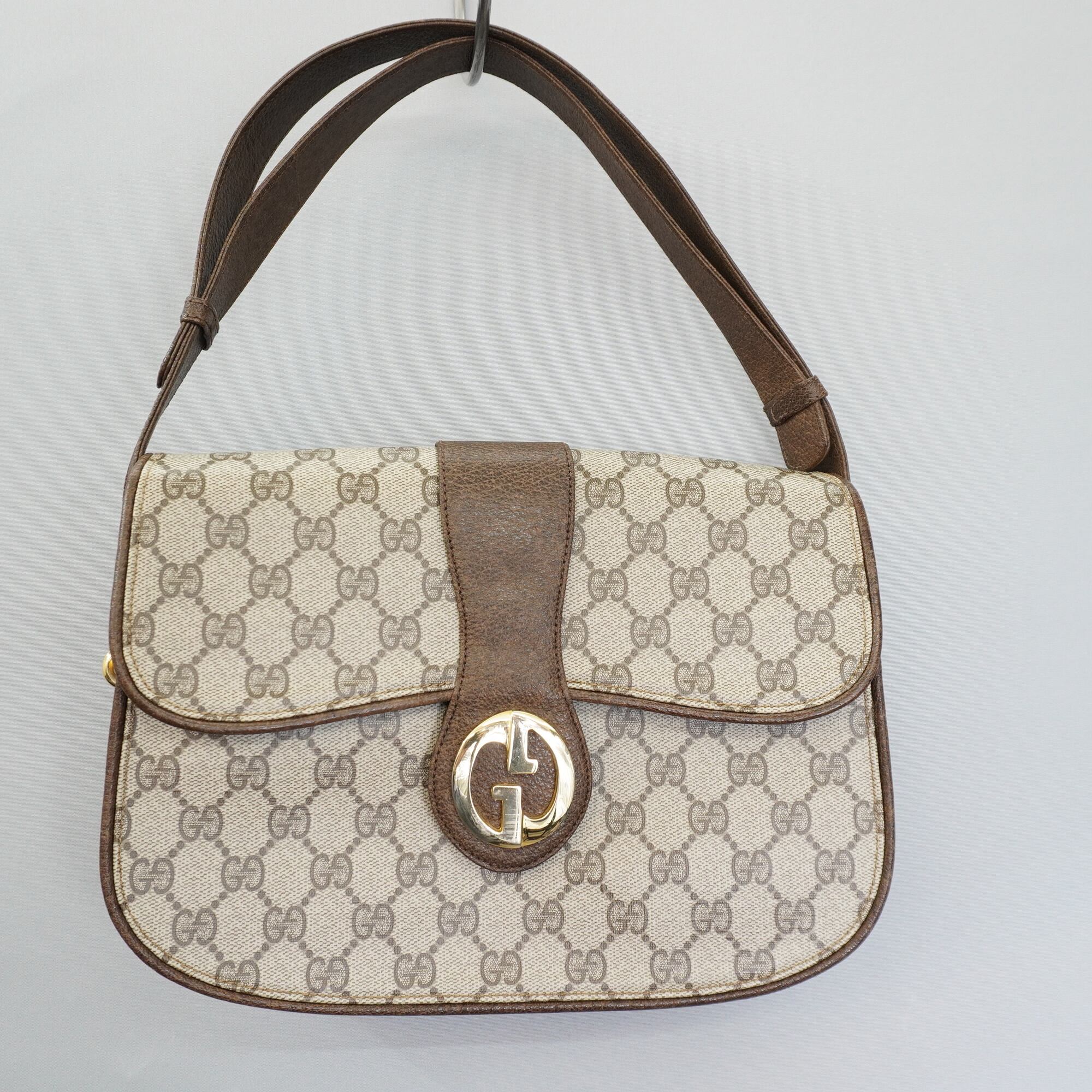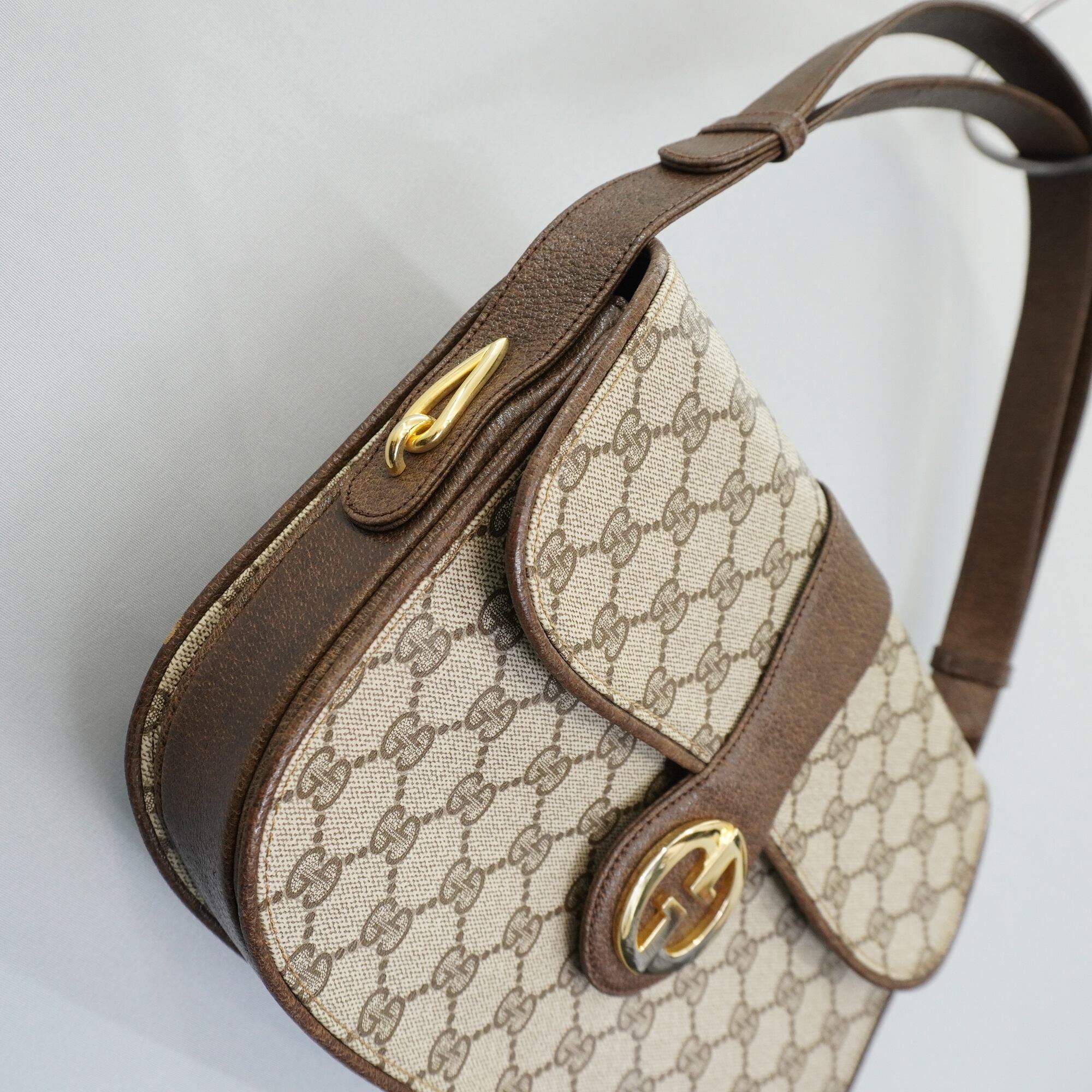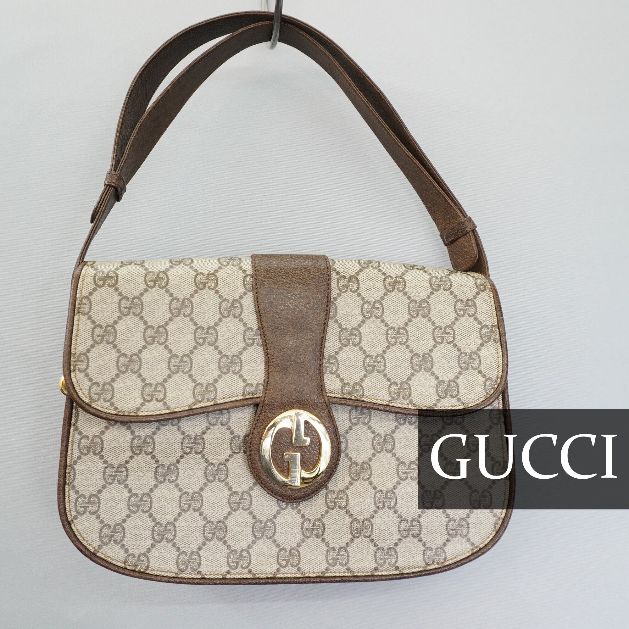 【GUCCI】グッチ vintage GGモノグラム インターロッキングフラップ ワンショルダーバッグ