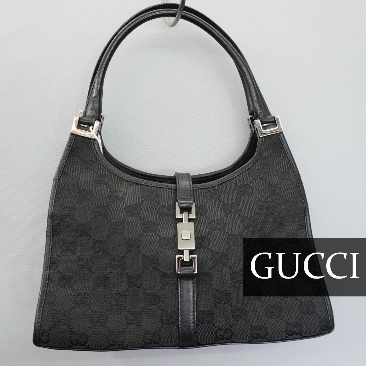 【GUCCI】グッチ vintage ジャッキーGGキャンバスショルダーバッグ black