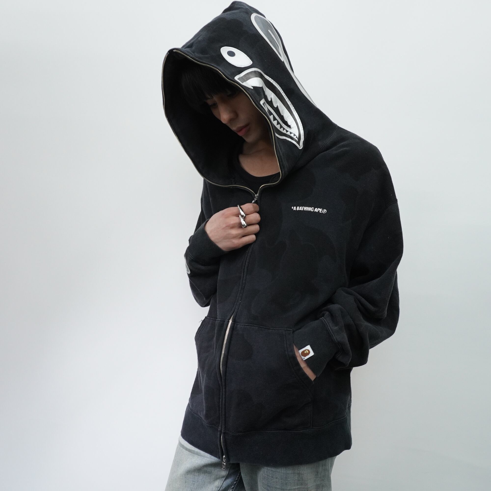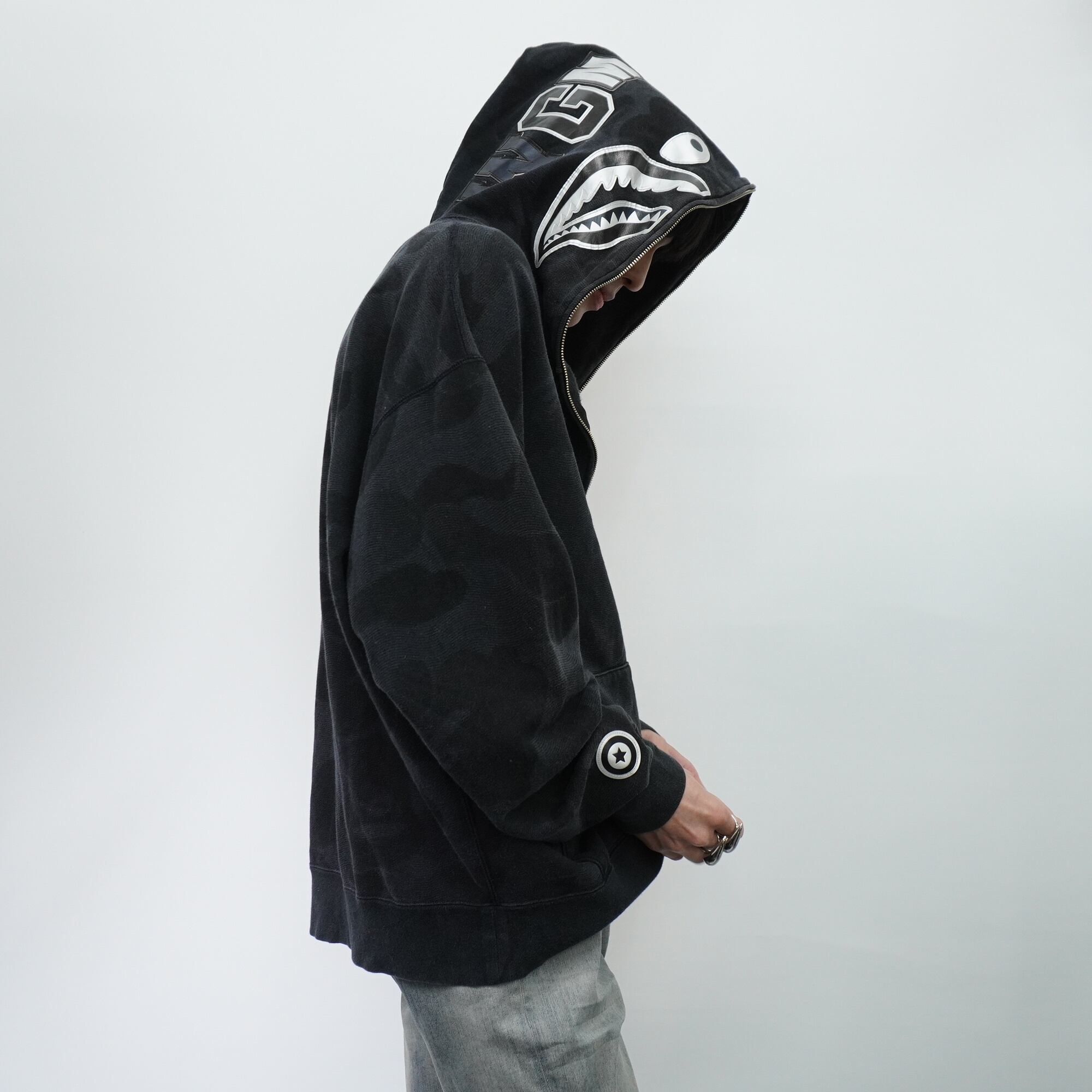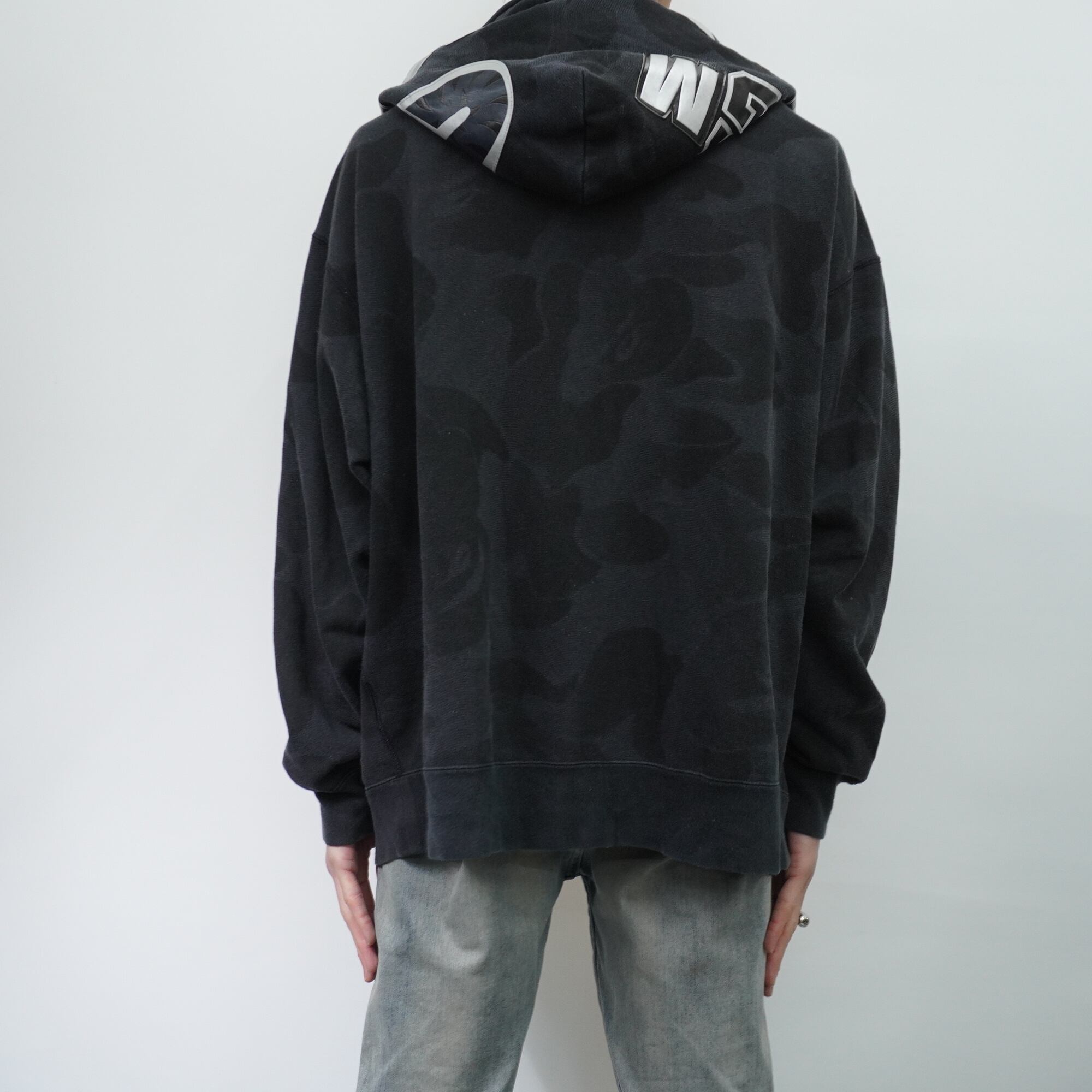 【A BATHING APE】アベイシングエイプ INK CAMO SHARK ZIP HOODIE black