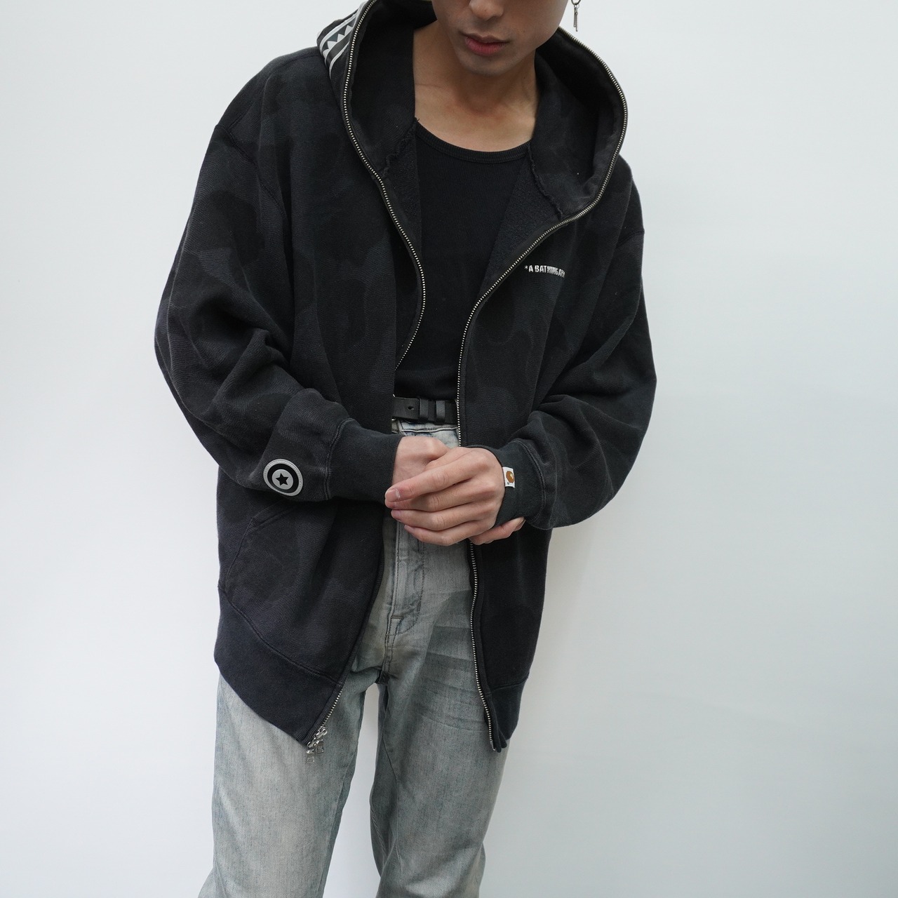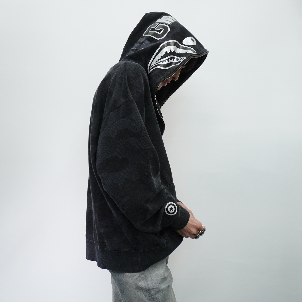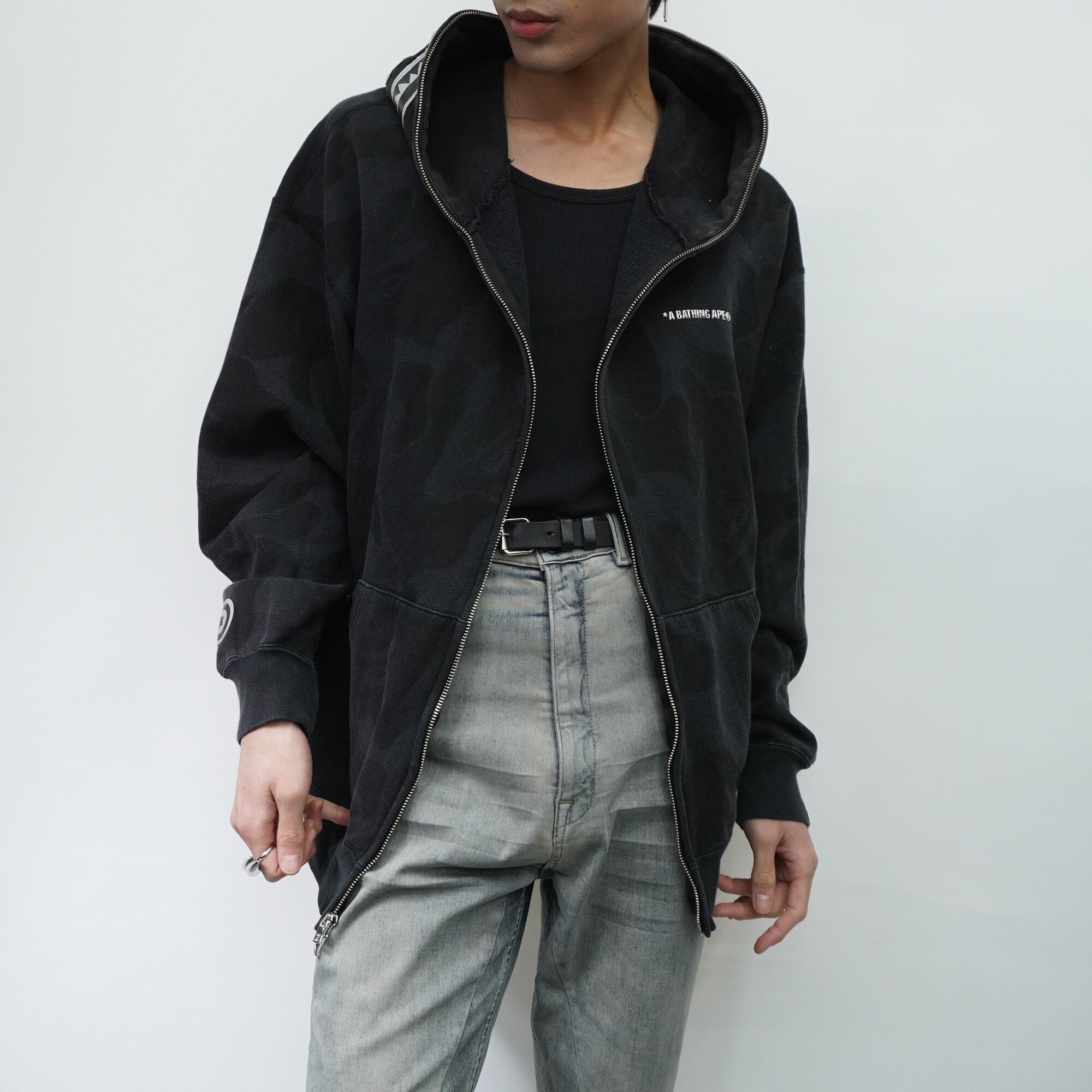 【A BATHING APE】アベイシングエイプ INK CAMO SHARK ZIP HOODIE black