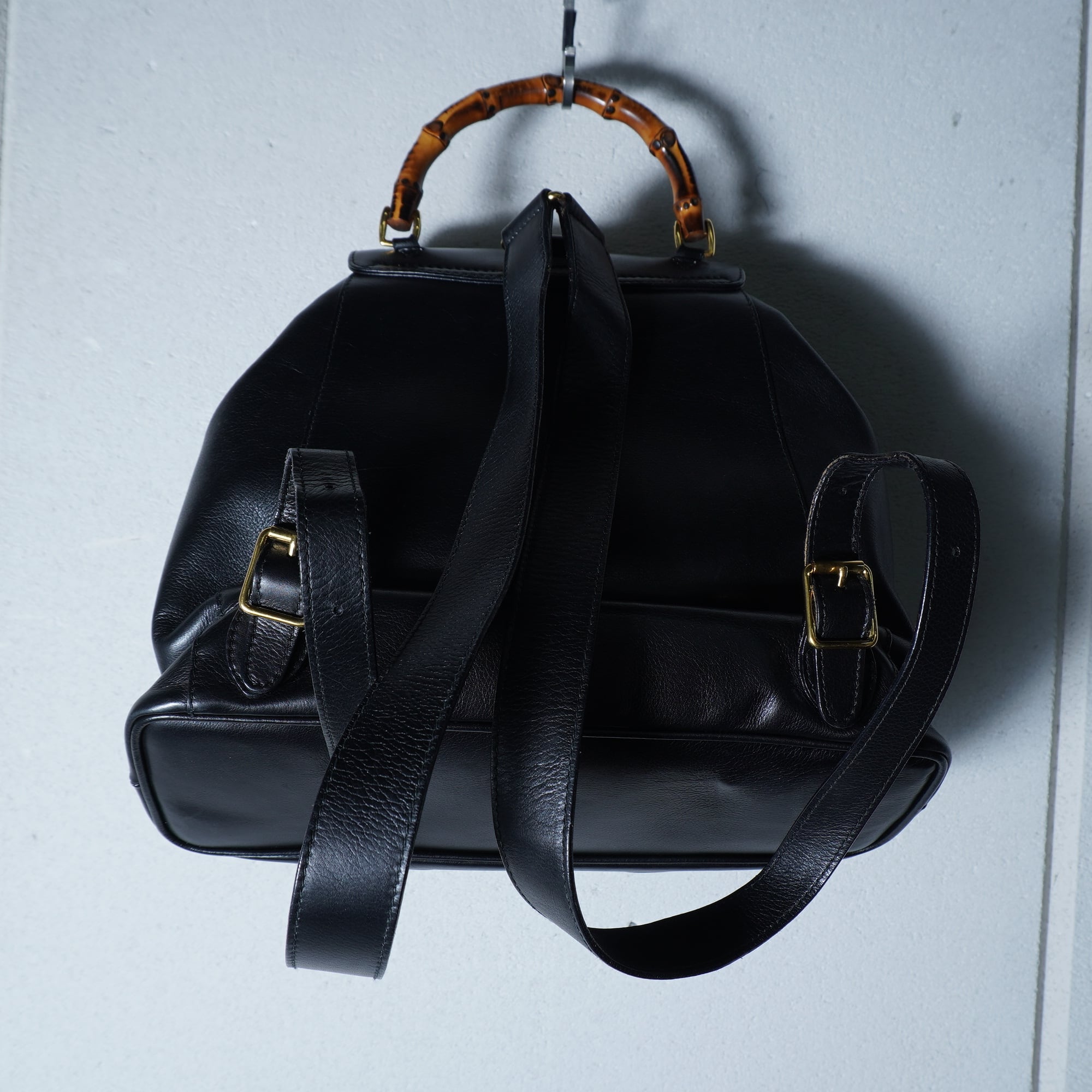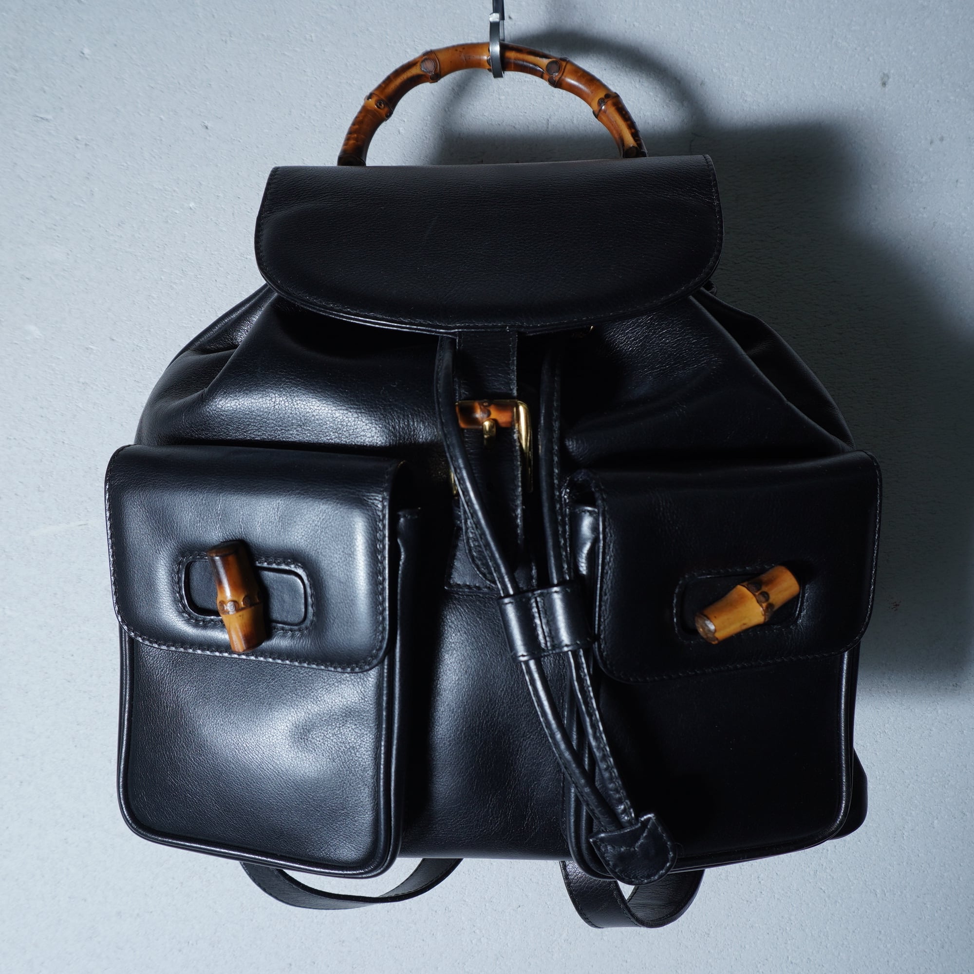 【GUCCI】グッチ 美品バンブーオールレザーバックパック black