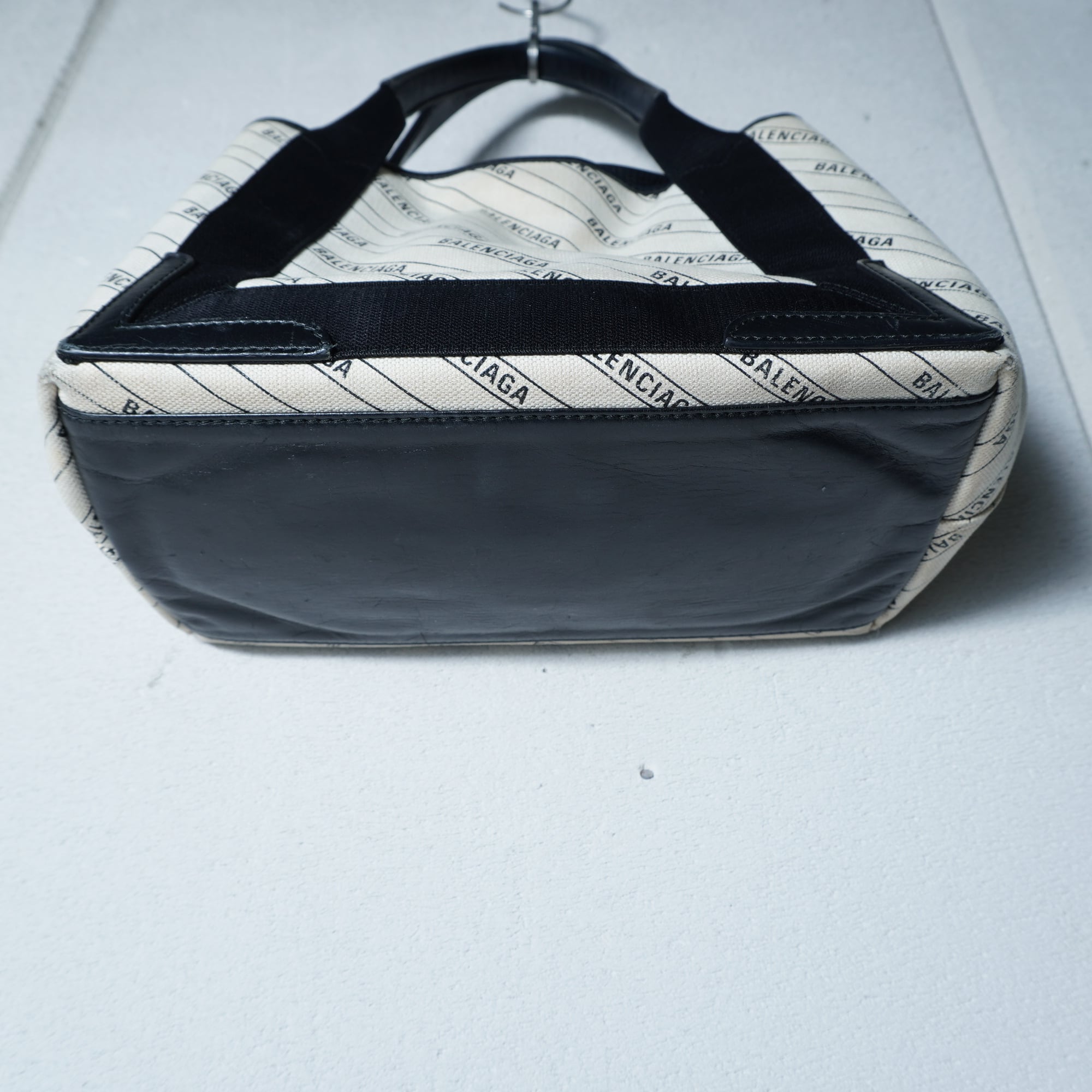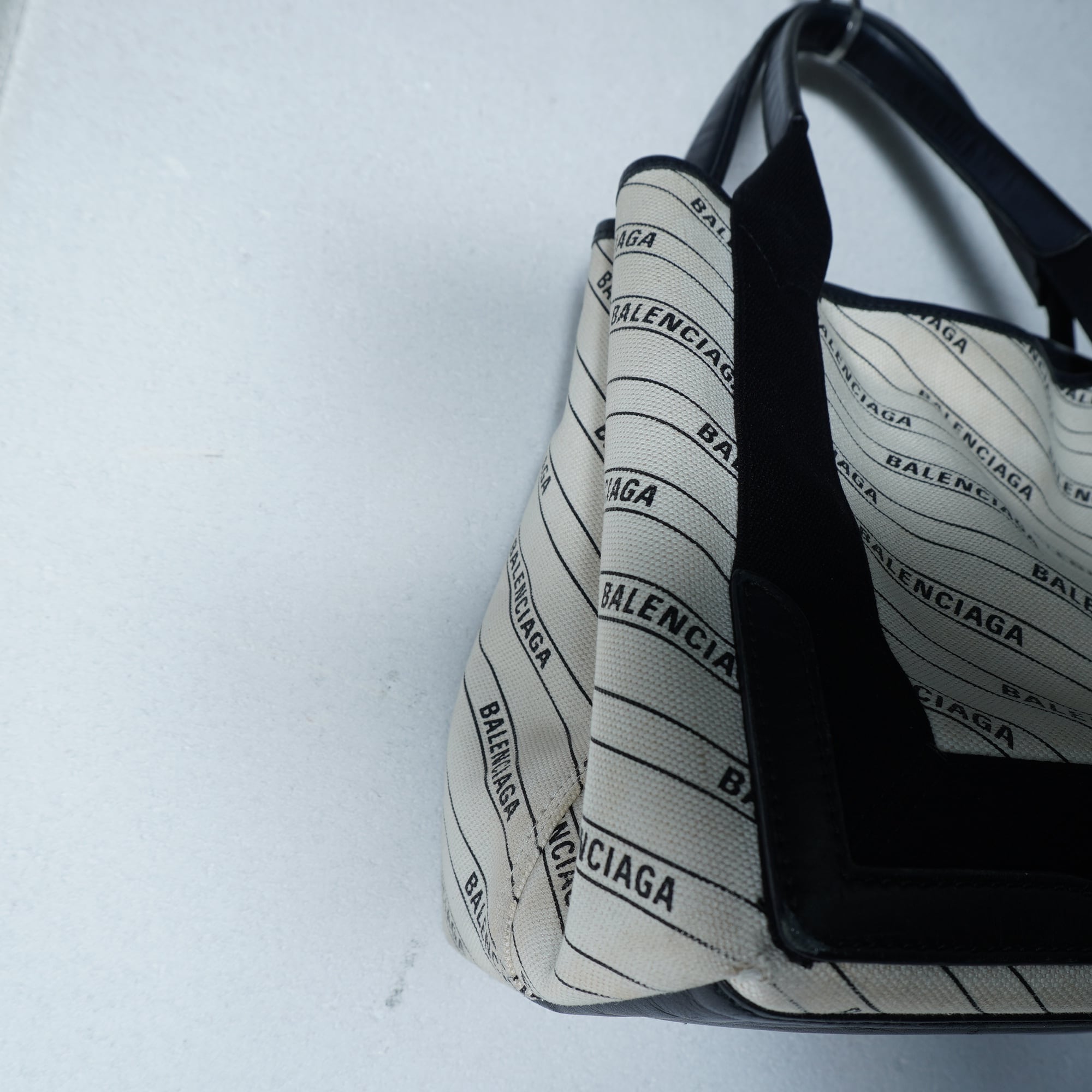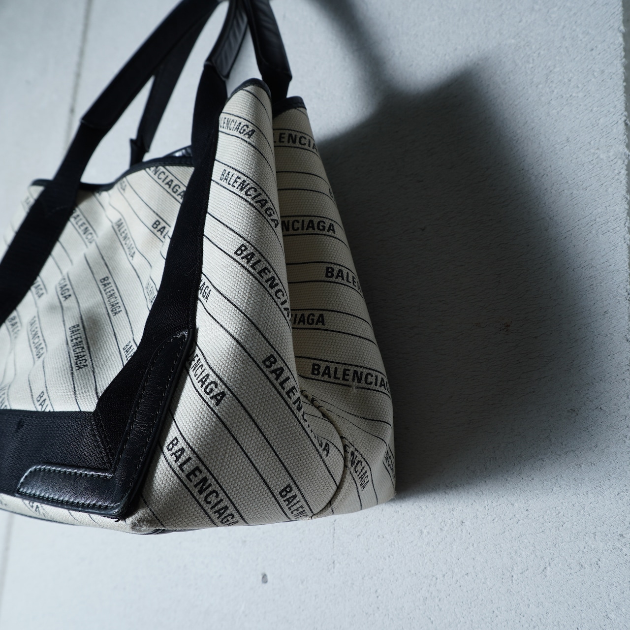 【BALENCIAGA】バレンシアガ ロゴストライプネイビーカバストートバッグ black&white