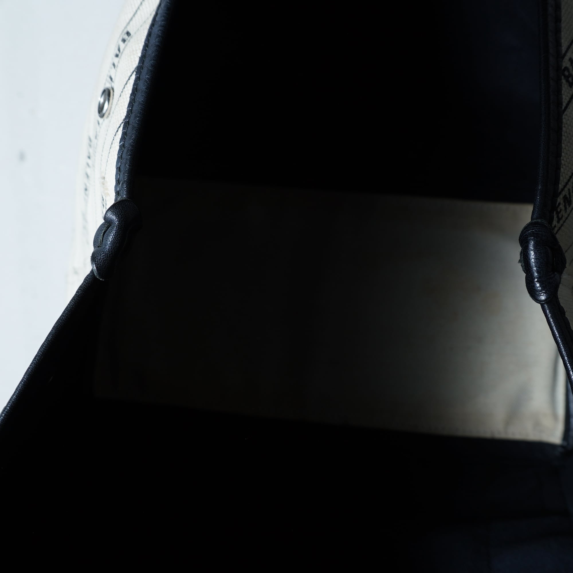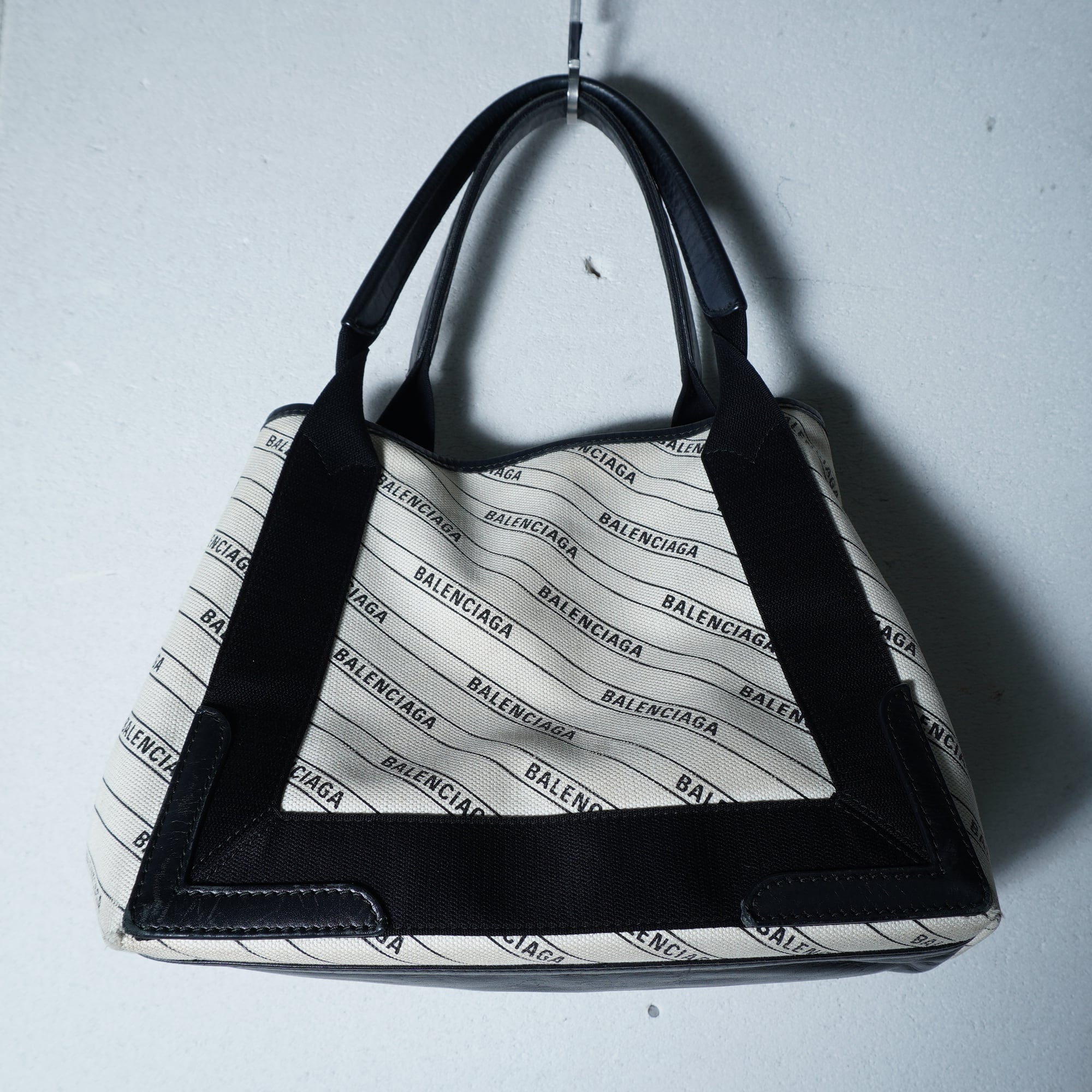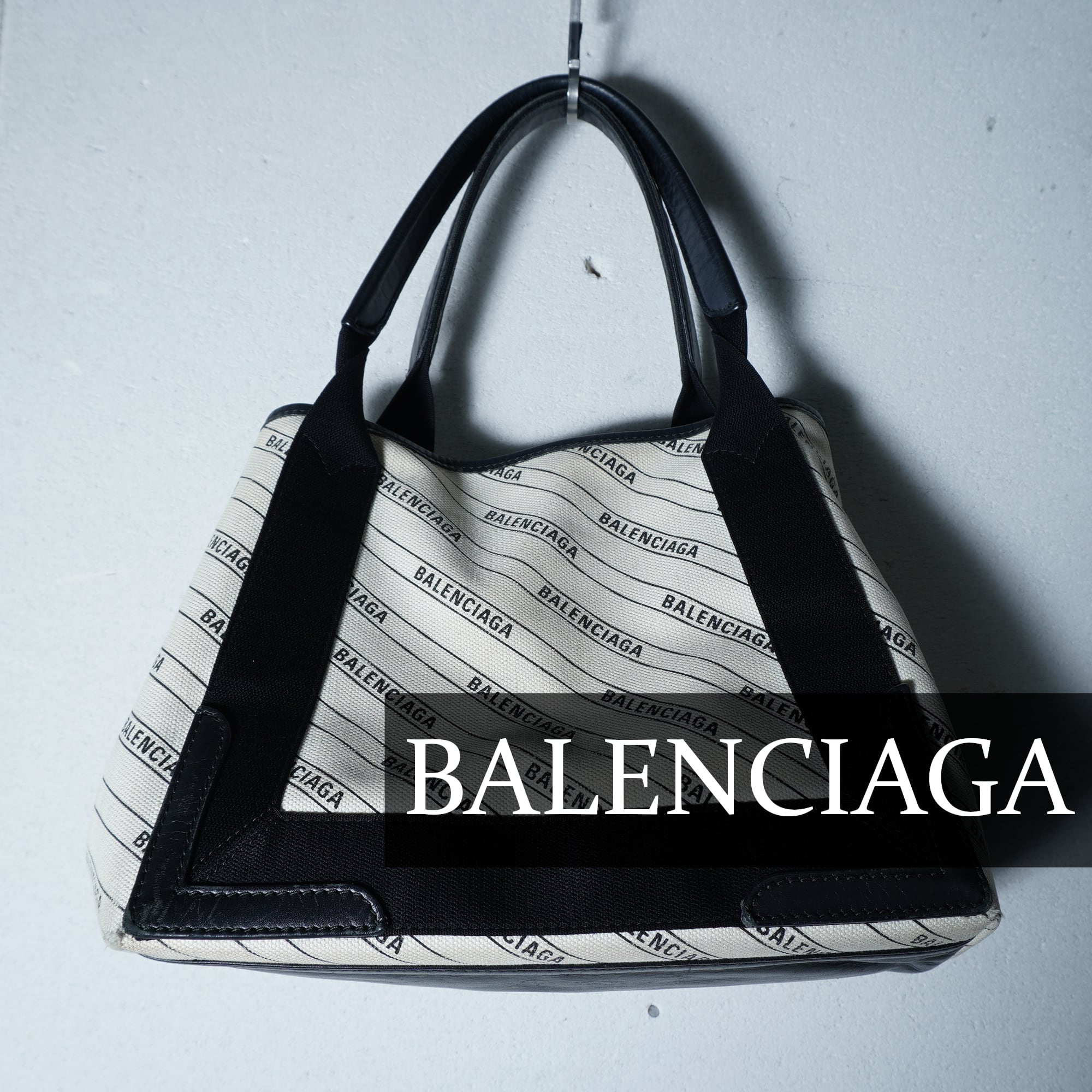 【BALENCIAGA】バレンシアガ ロゴストライプネイビーカバストートバッグ black&white