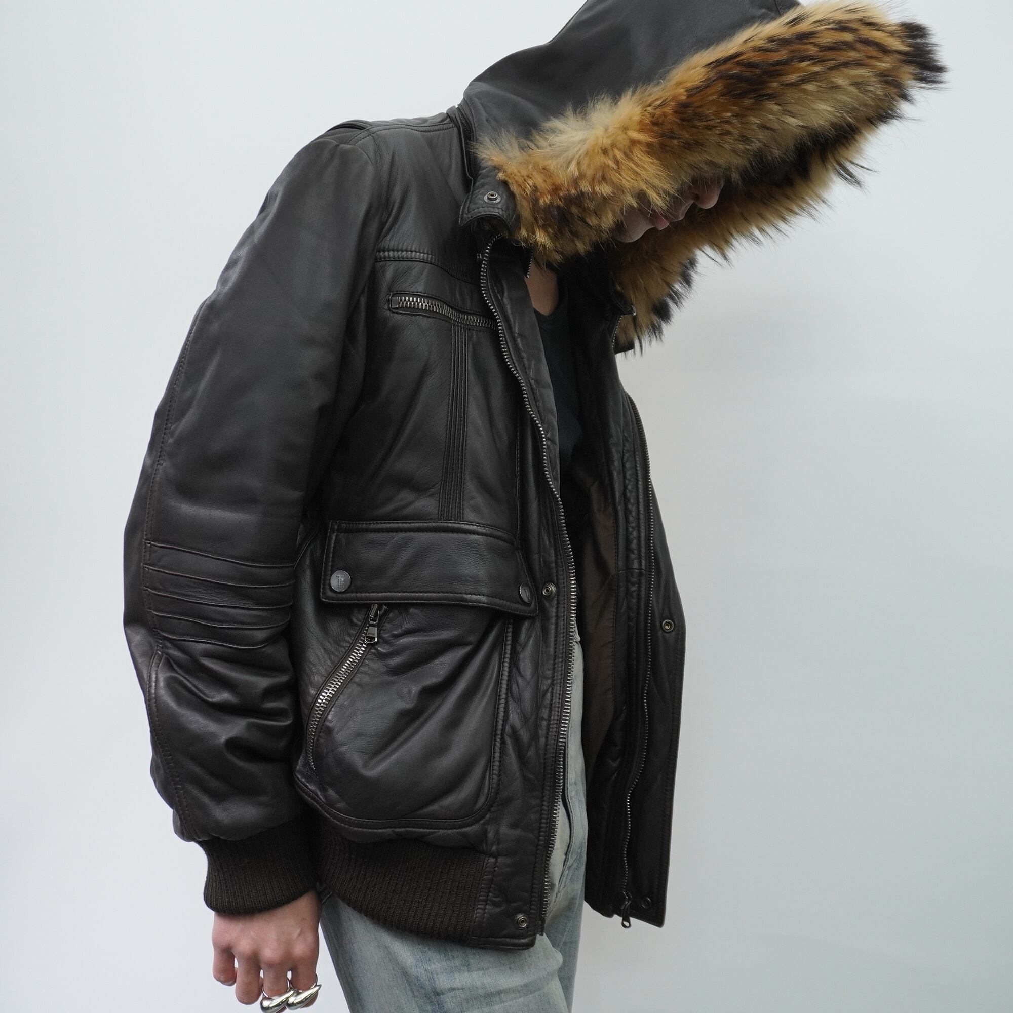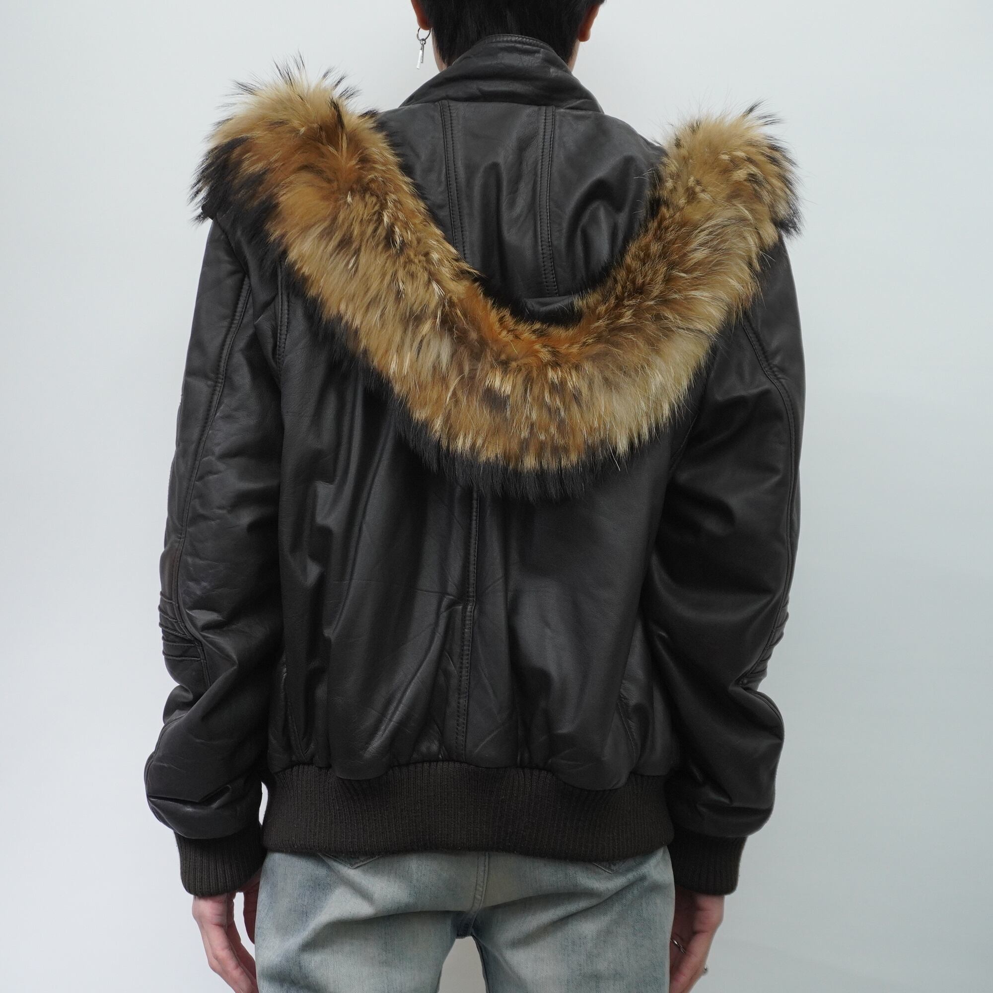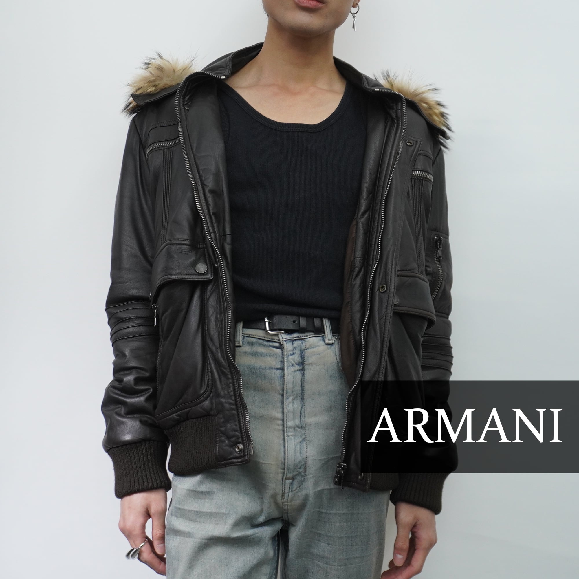 【ARMANI】AJ ARMANI JEANS 90's vintage 羊革中綿リアルファーフーデットジャケット brown