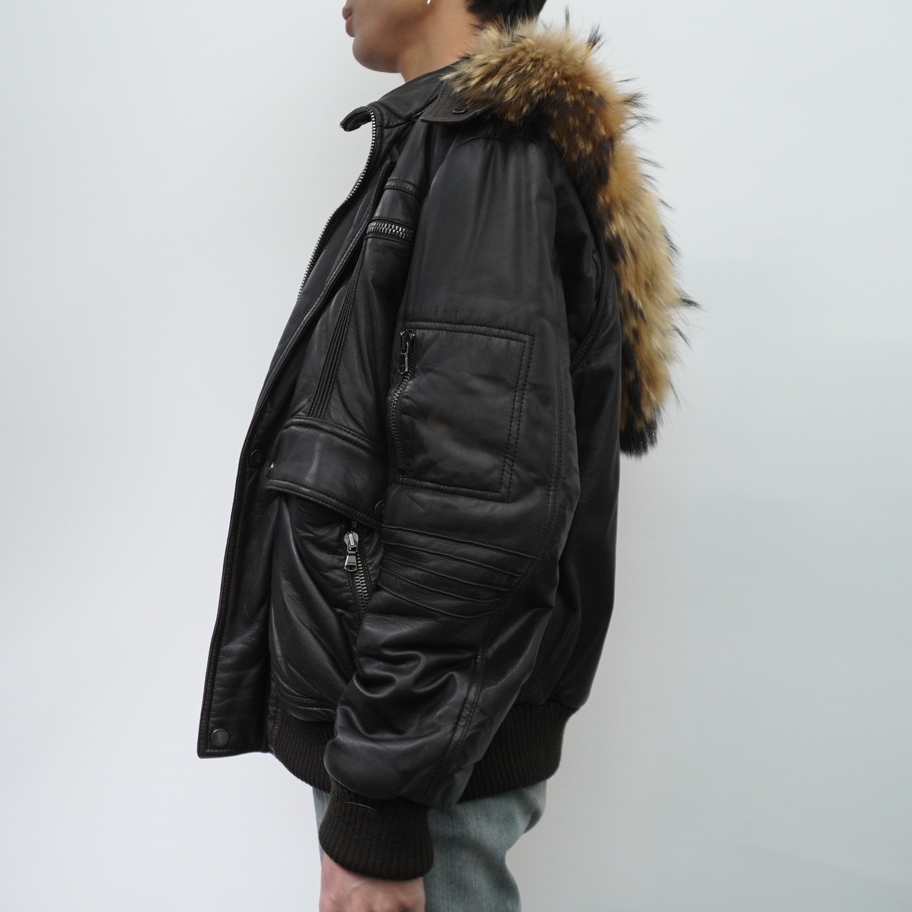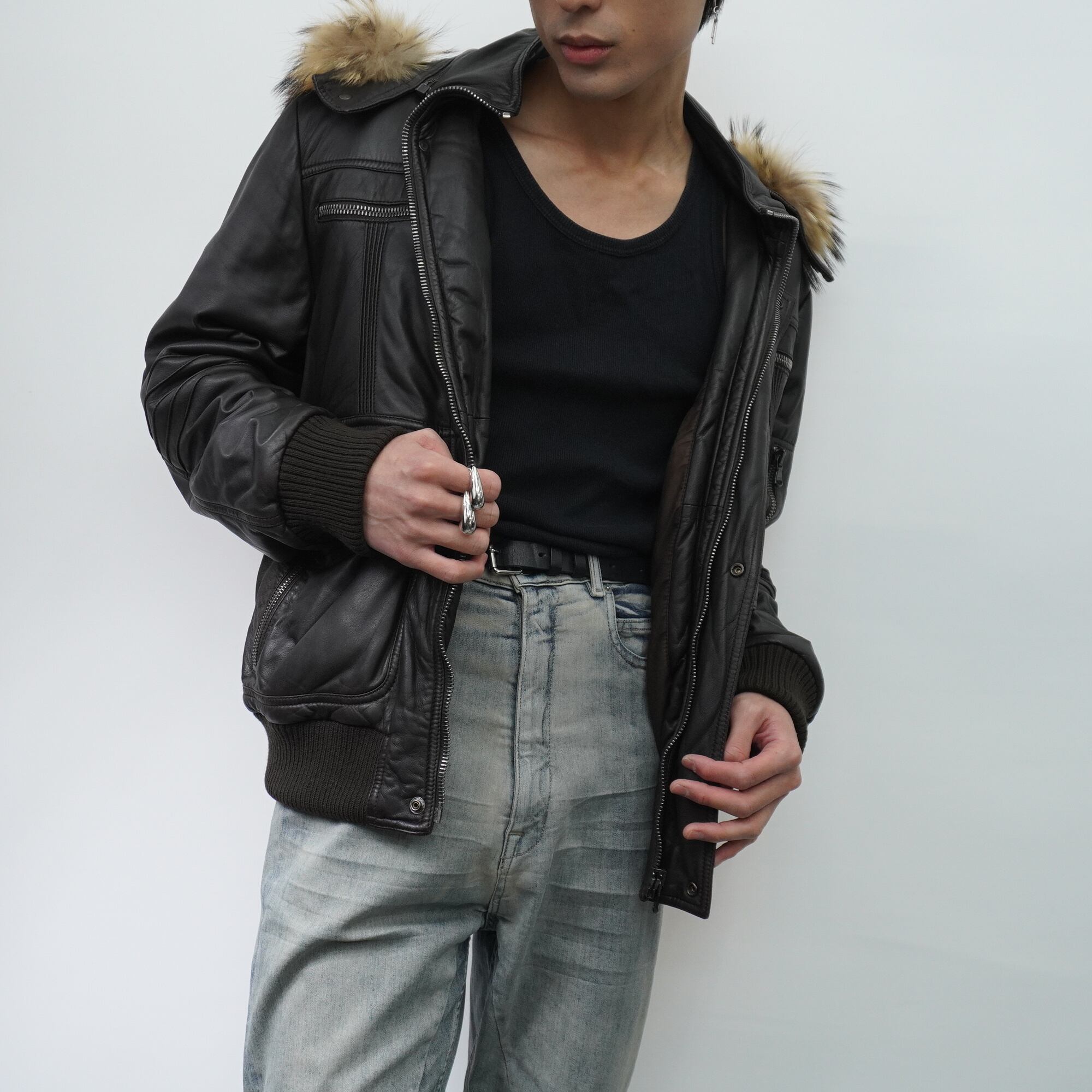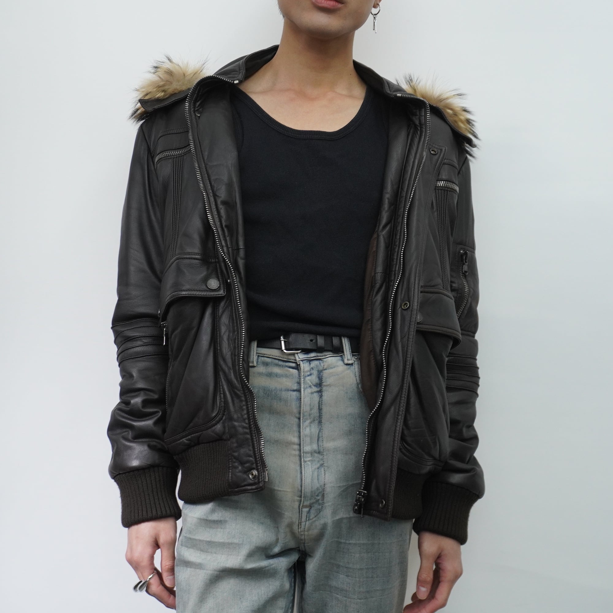 【ARMANI】AJ ARMANI JEANS 90's vintage 羊革中綿リアルファーフーデットジャケット brown