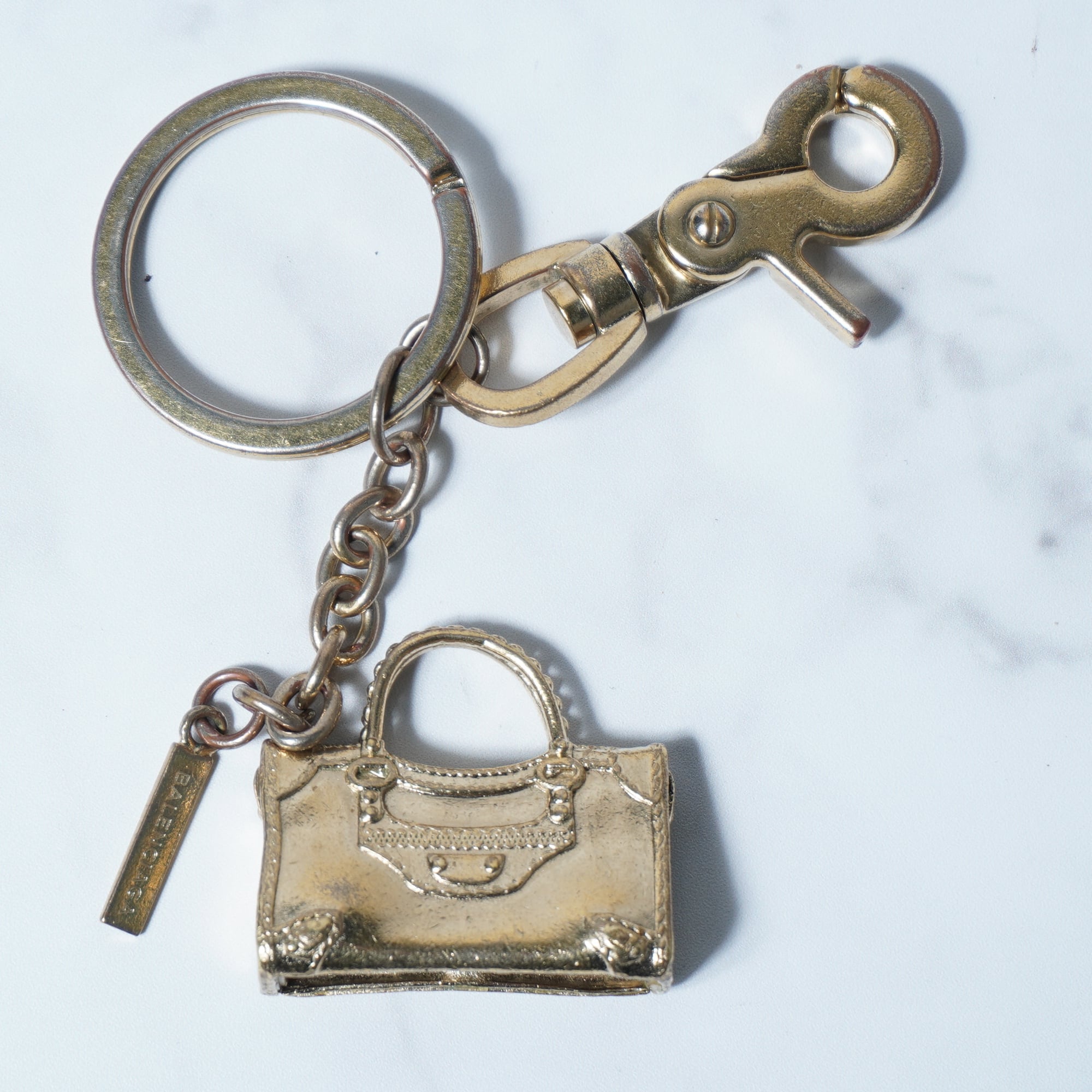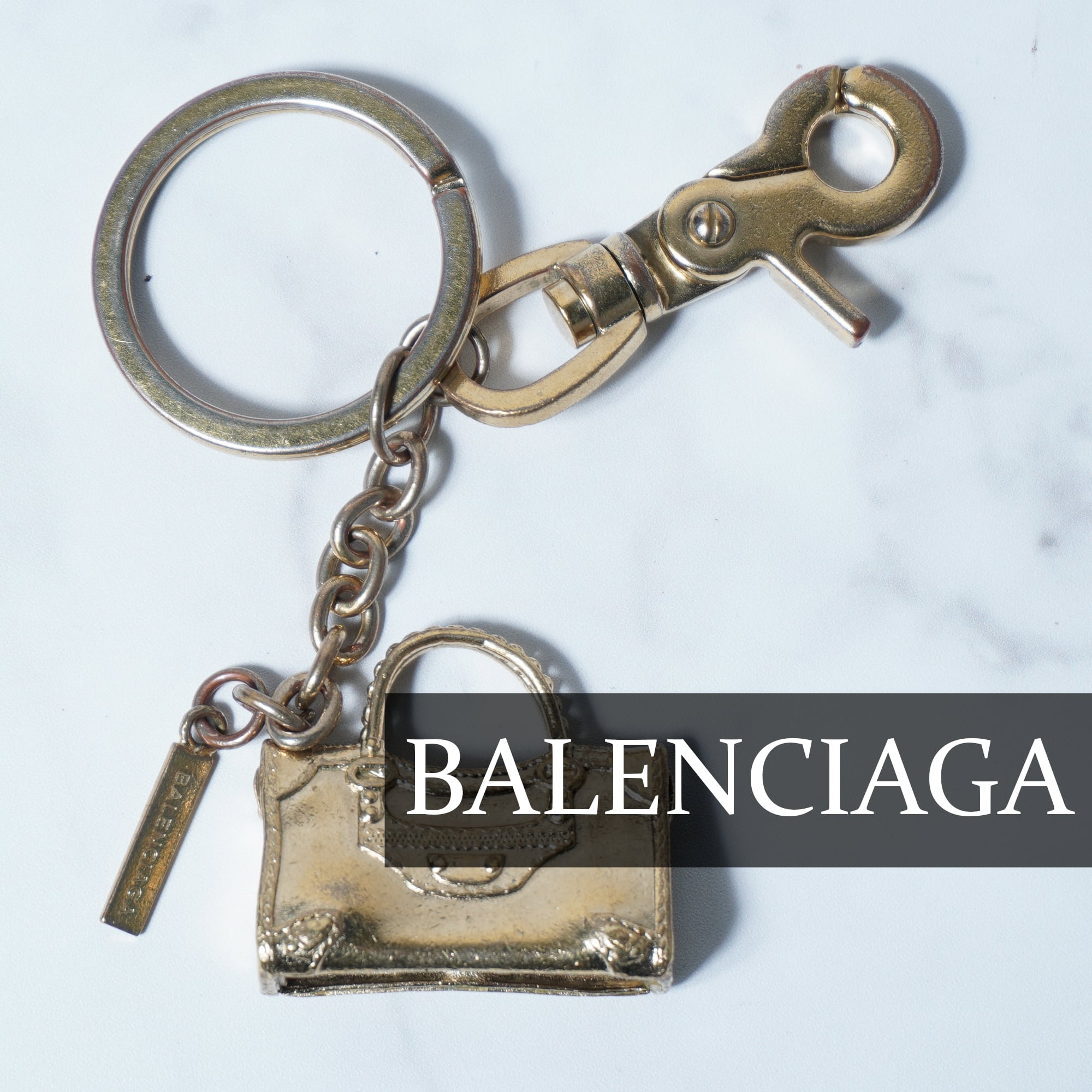 【BALENCIAGA】バレンシアガ ロゴ入ミニバッグキーホルダー gold