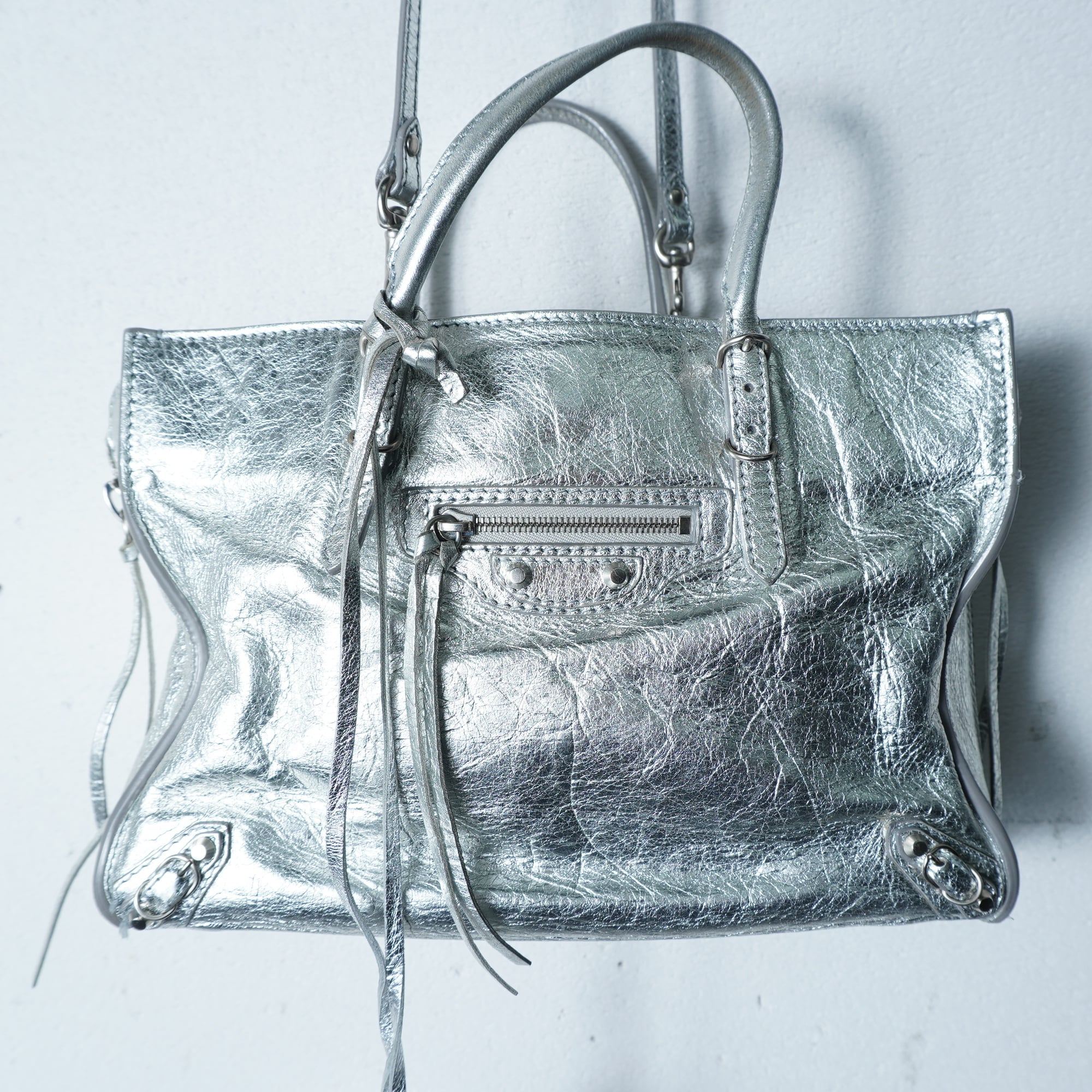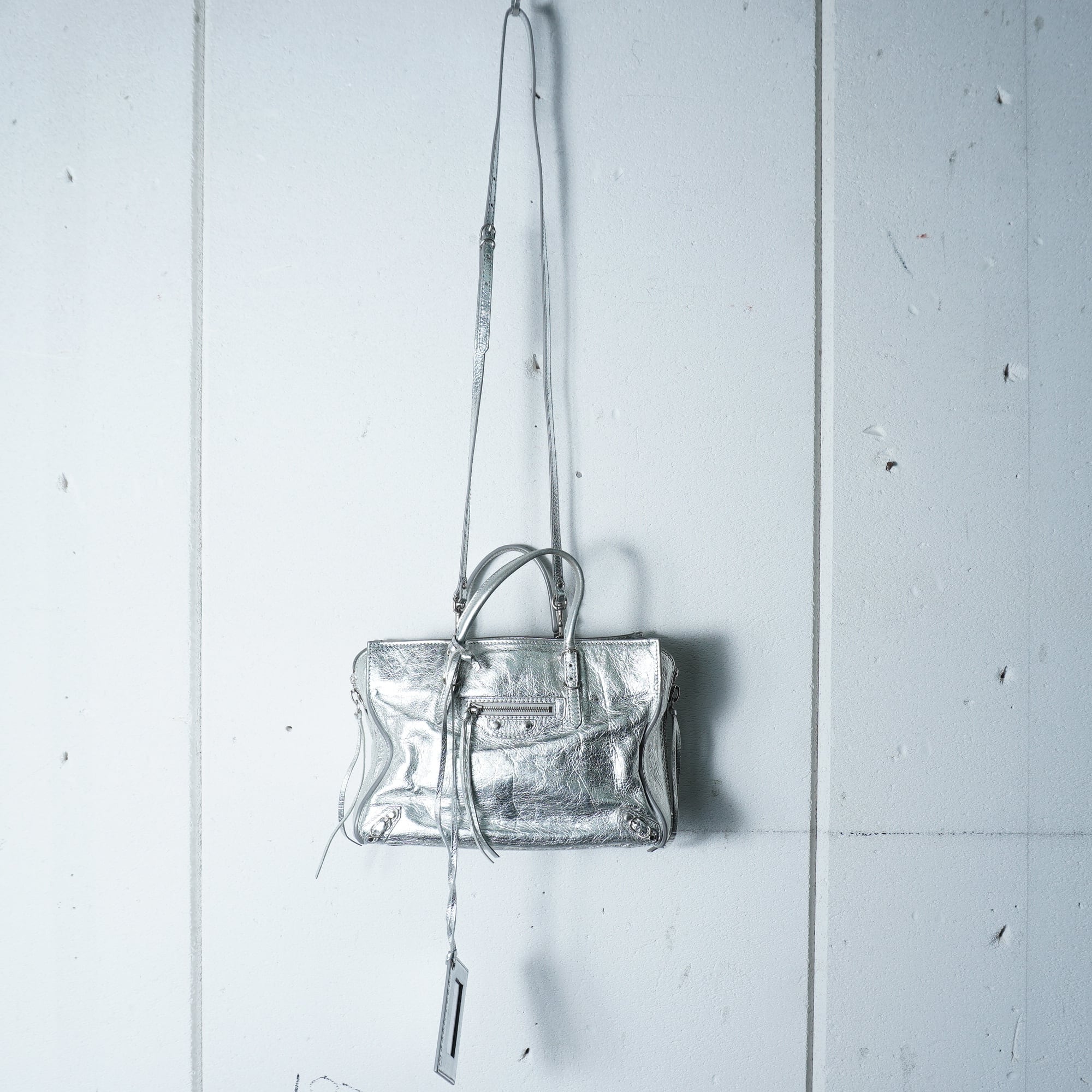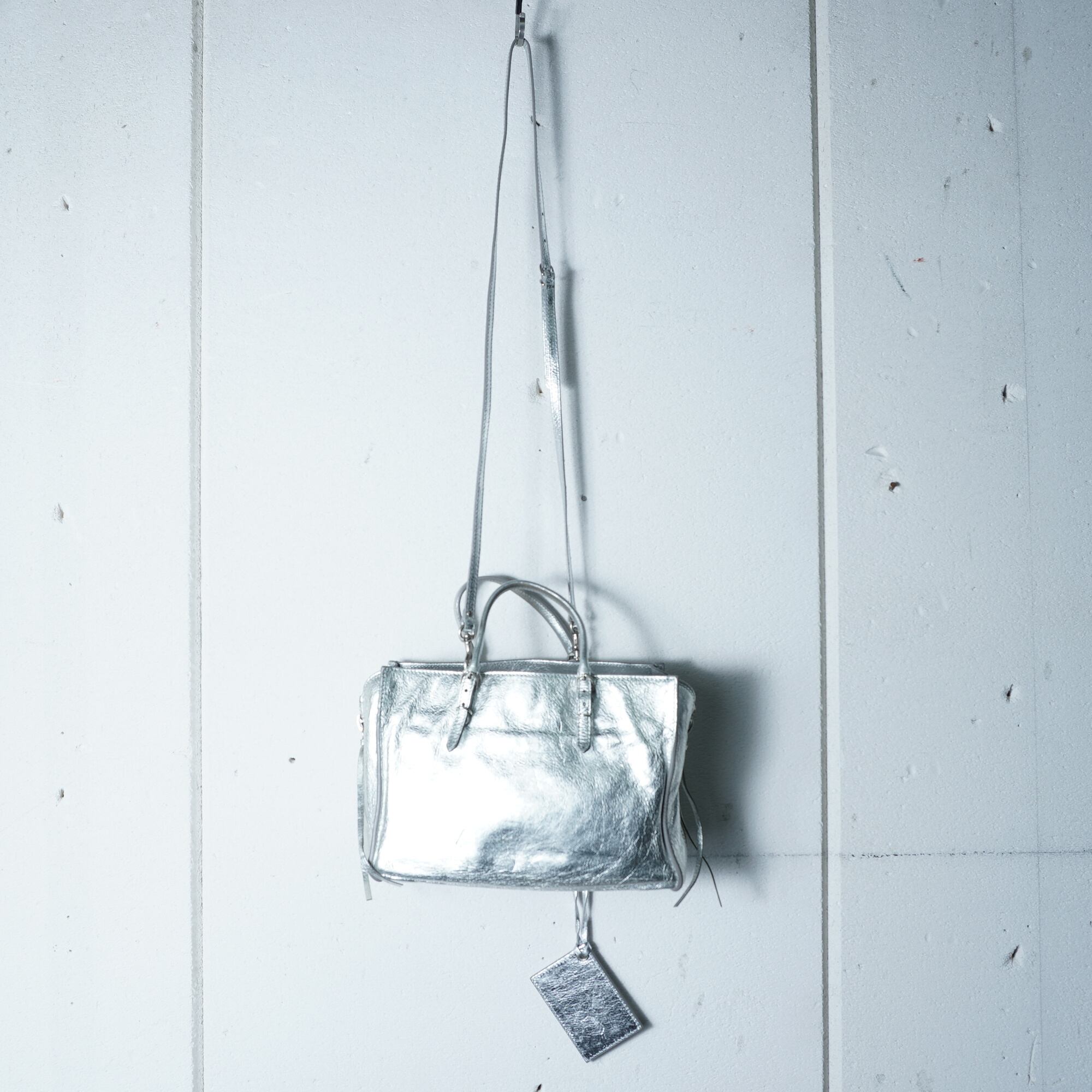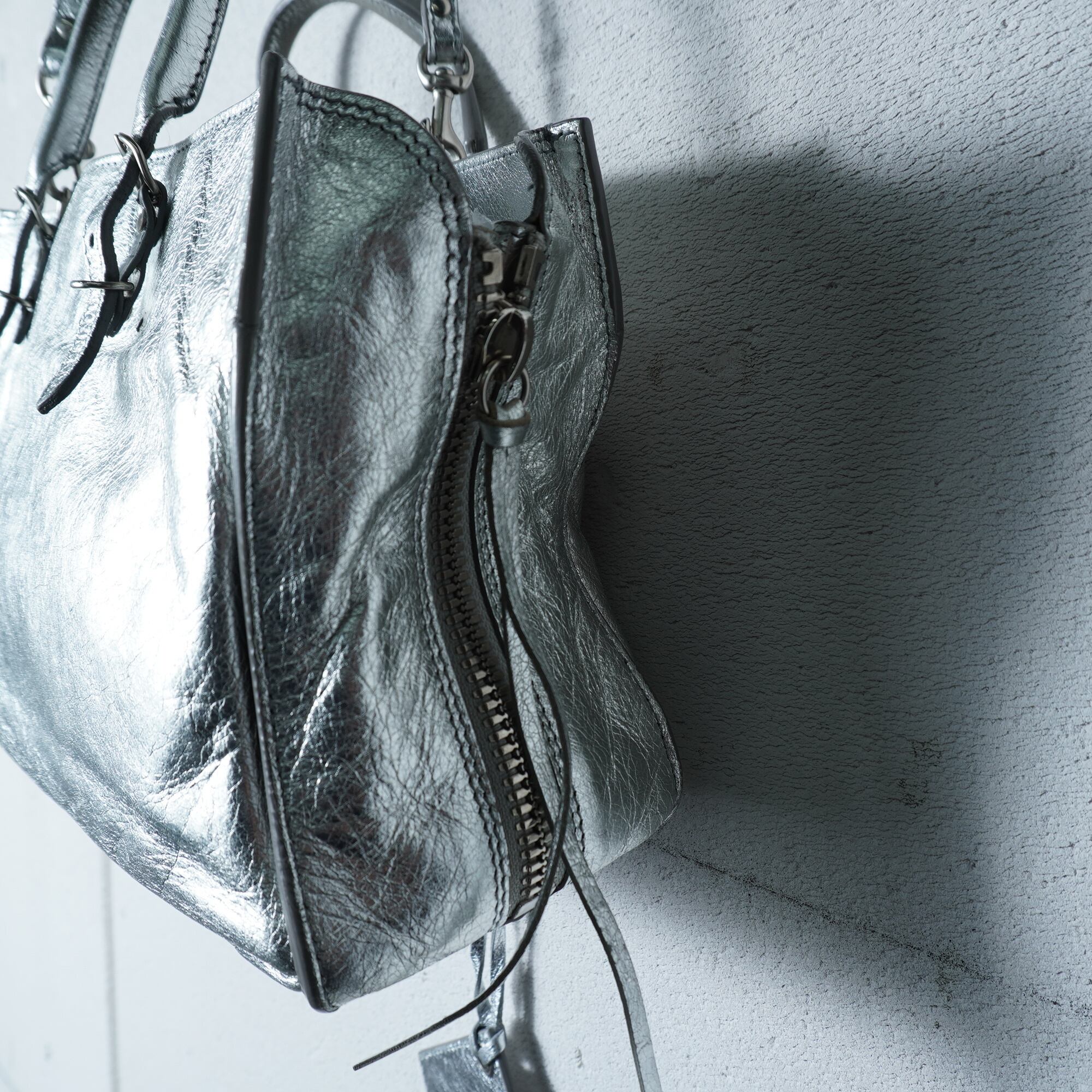 【BALENCIAGA】バレンシアガ メタリックレザー2WAYショルダーハンドバッグ silver