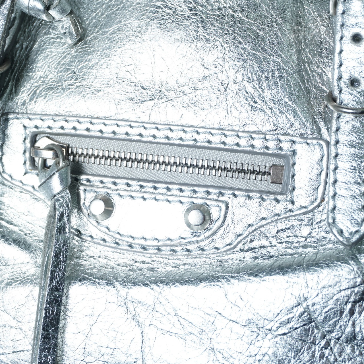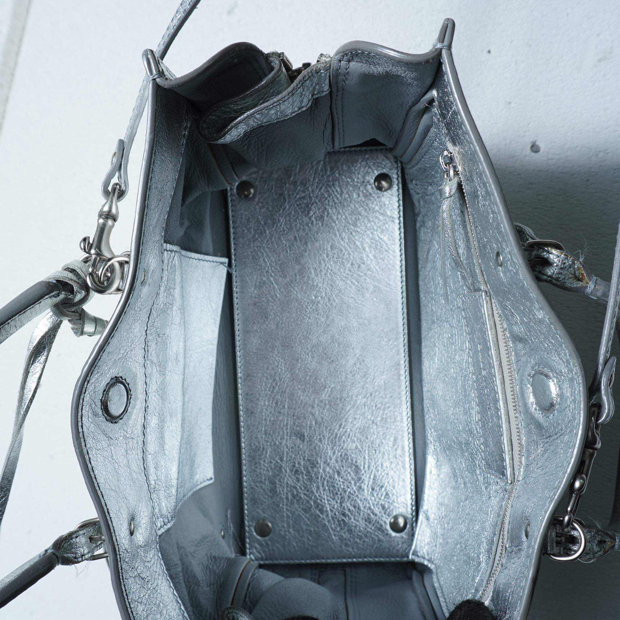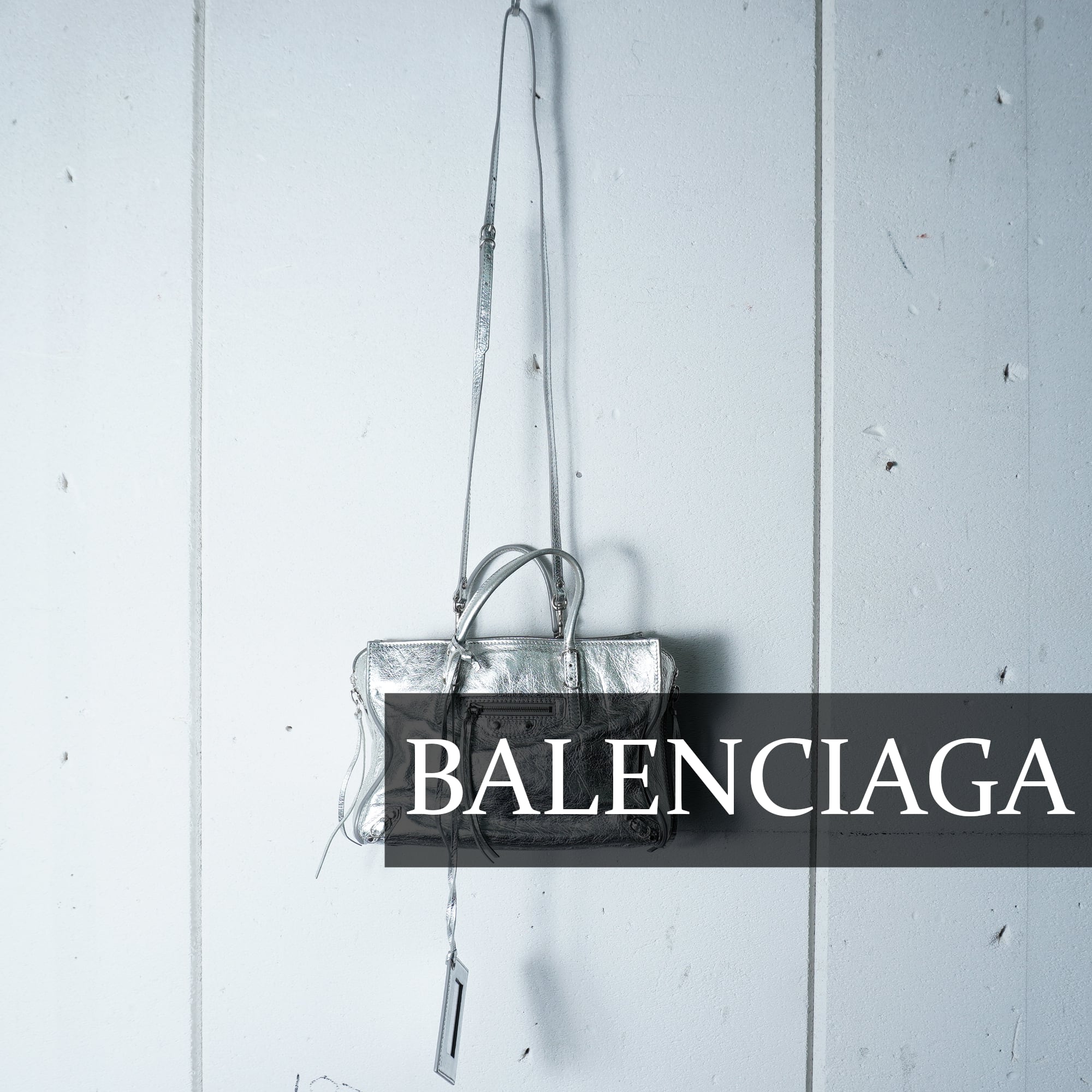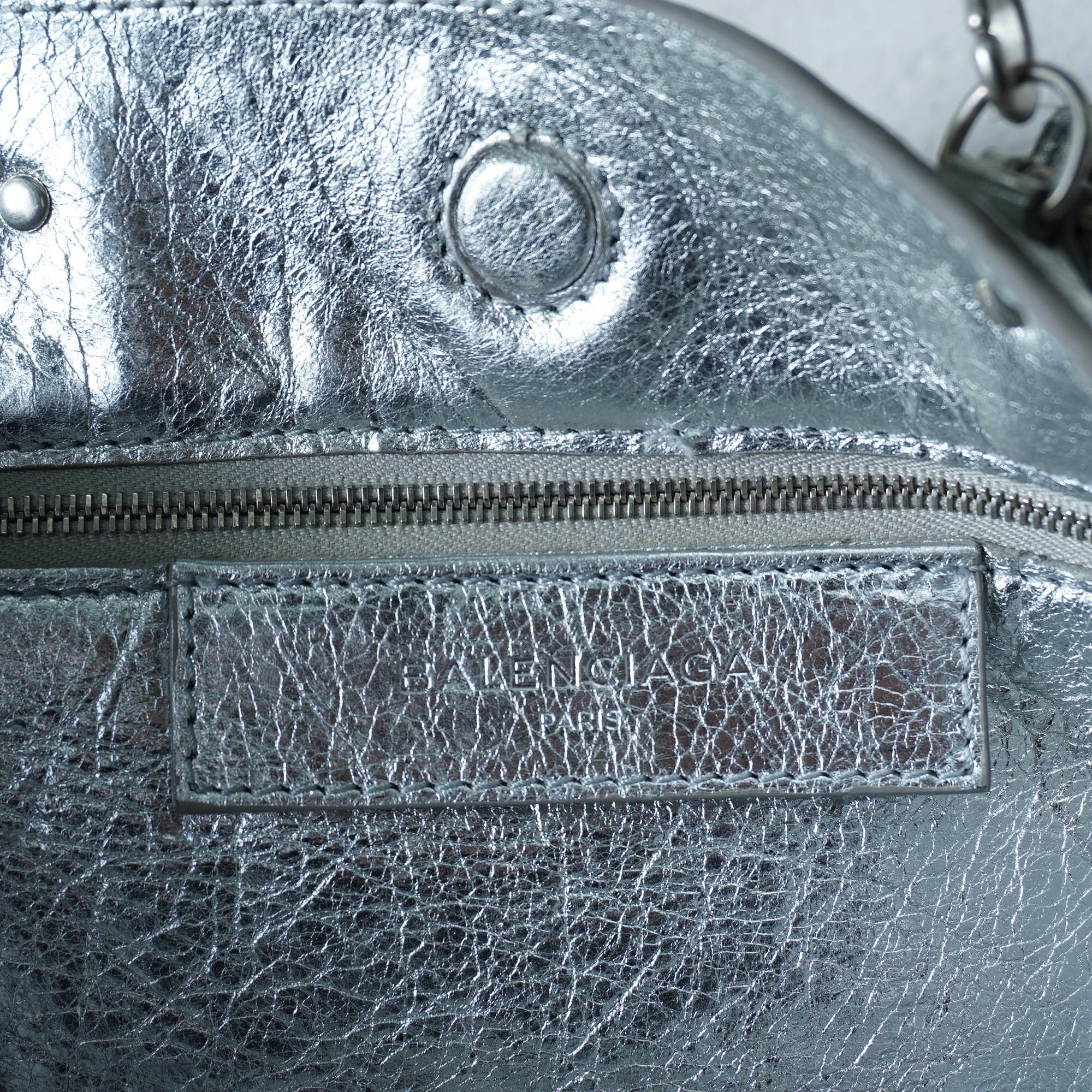 【BALENCIAGA】バレンシアガ メタリックレザー2WAYショルダーハンドバッグ silver