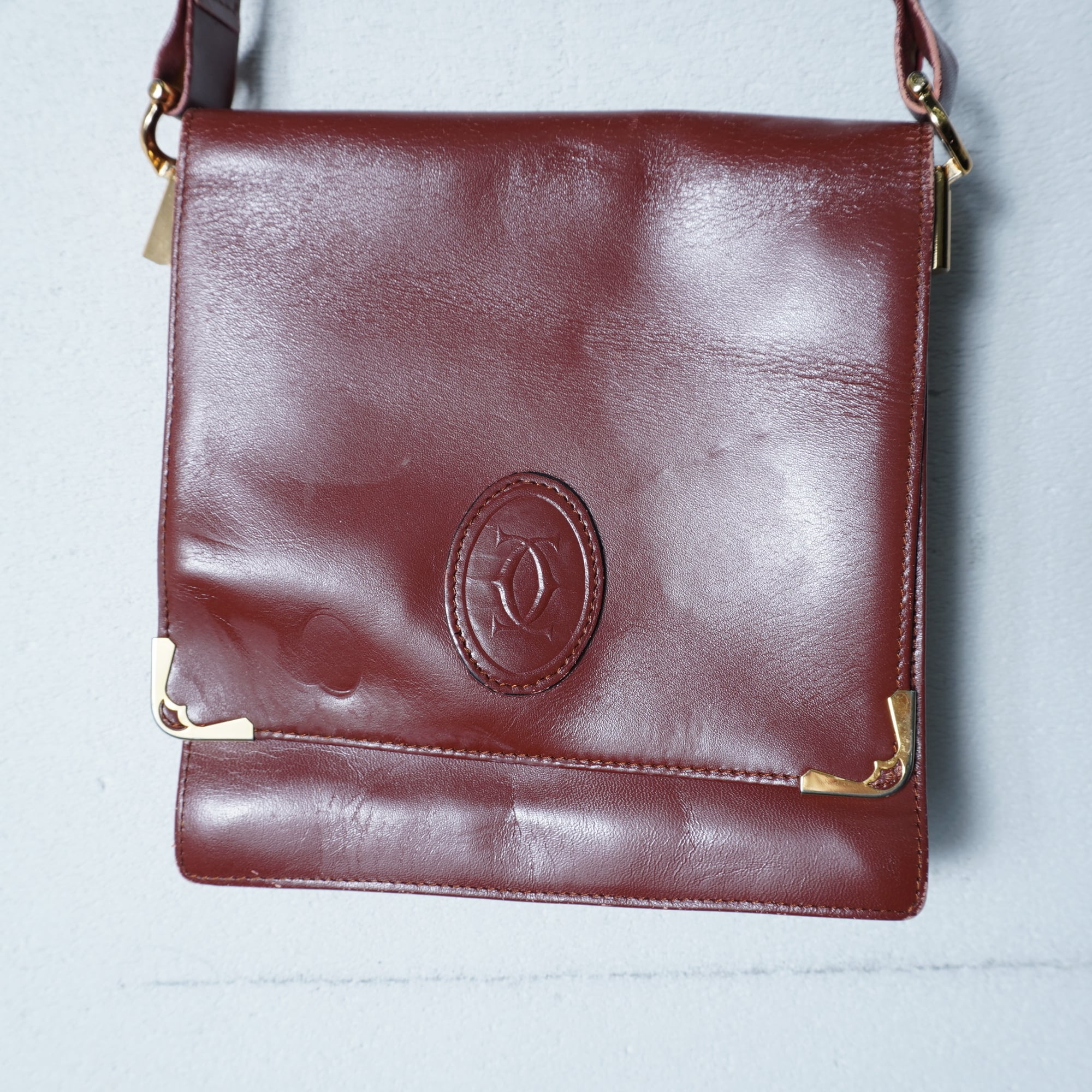 【Cartier】カルティエ マストライン レザーショルダーバッグ bordeaux