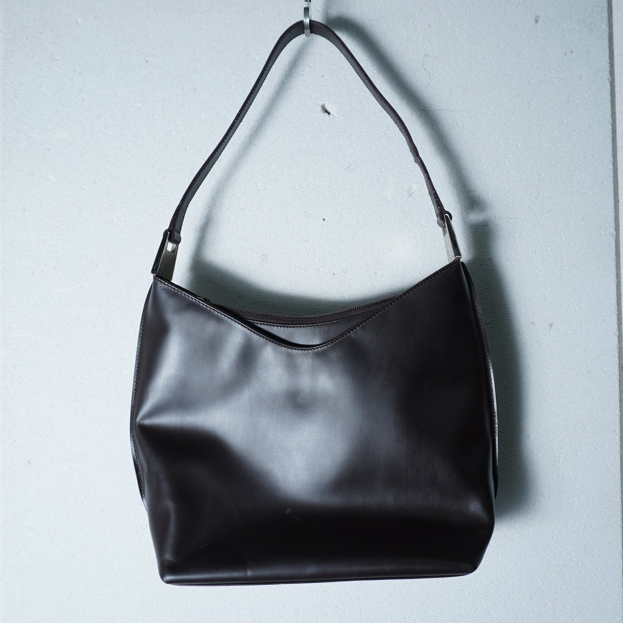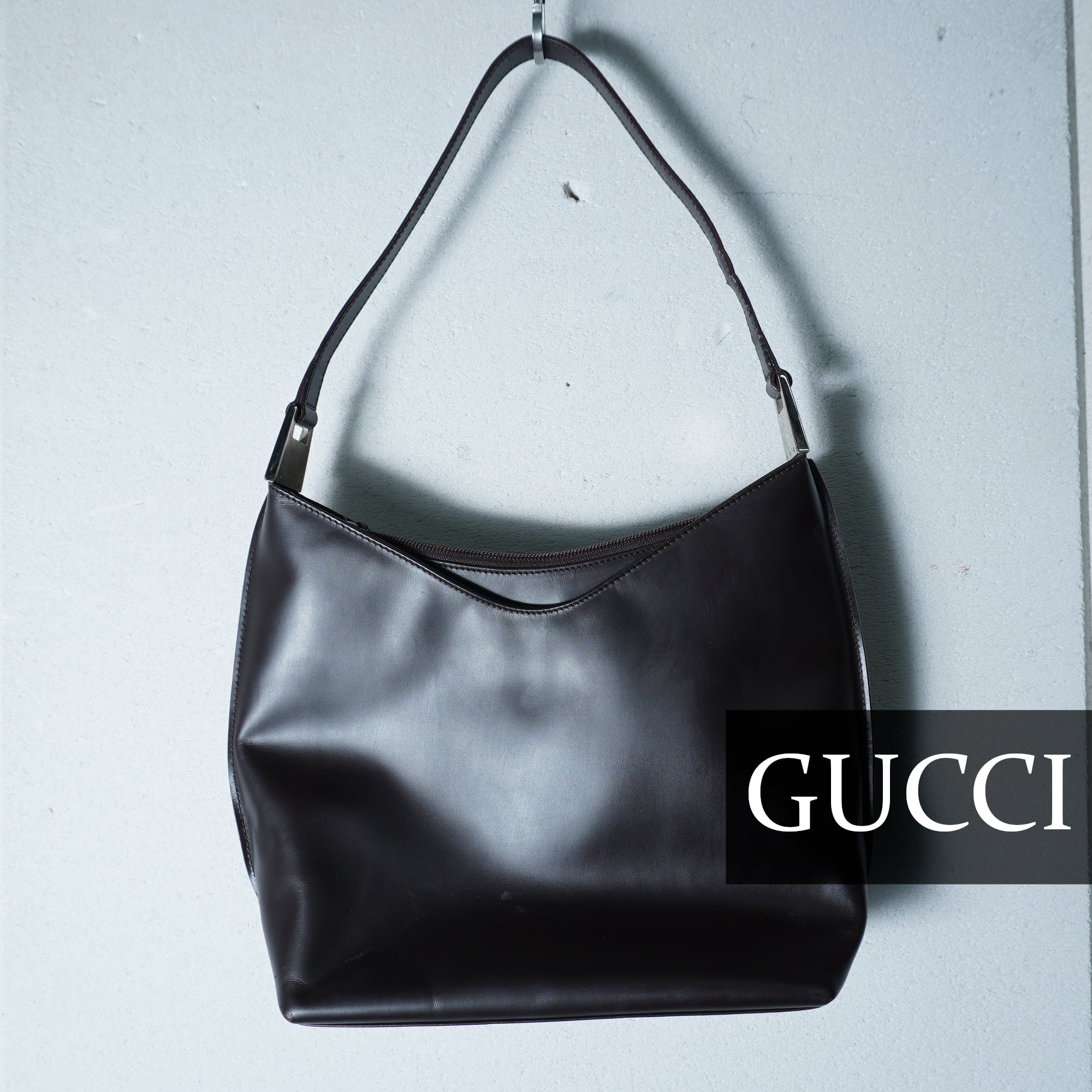 【GUCCI】グッチ ロゴ金具 オールレザーワンショルダーバッグ dark brown