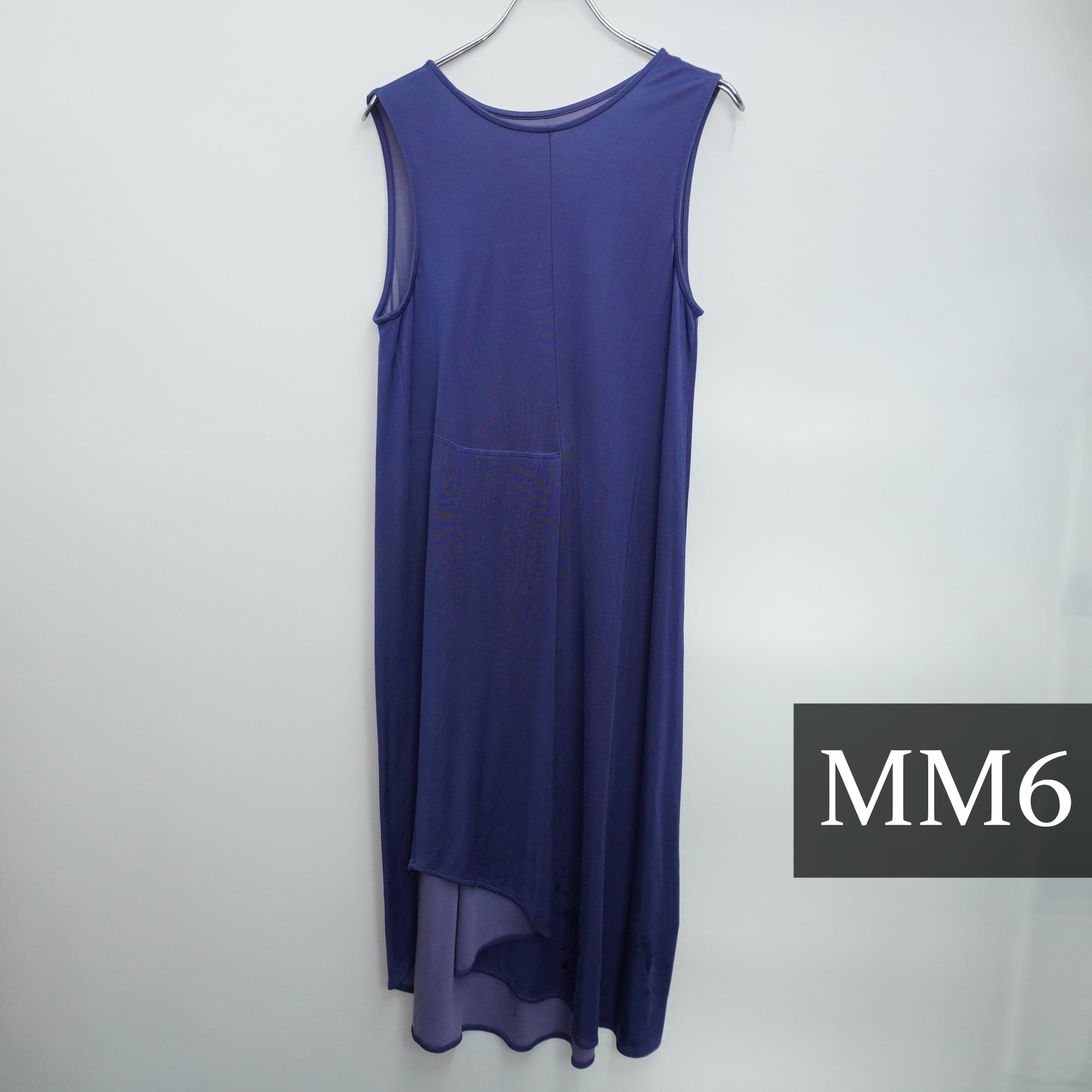 【MM6】メゾンマルジェラ MM6 18AW 美光沢コットンレーヨン デザインノースリーブワンピース blue