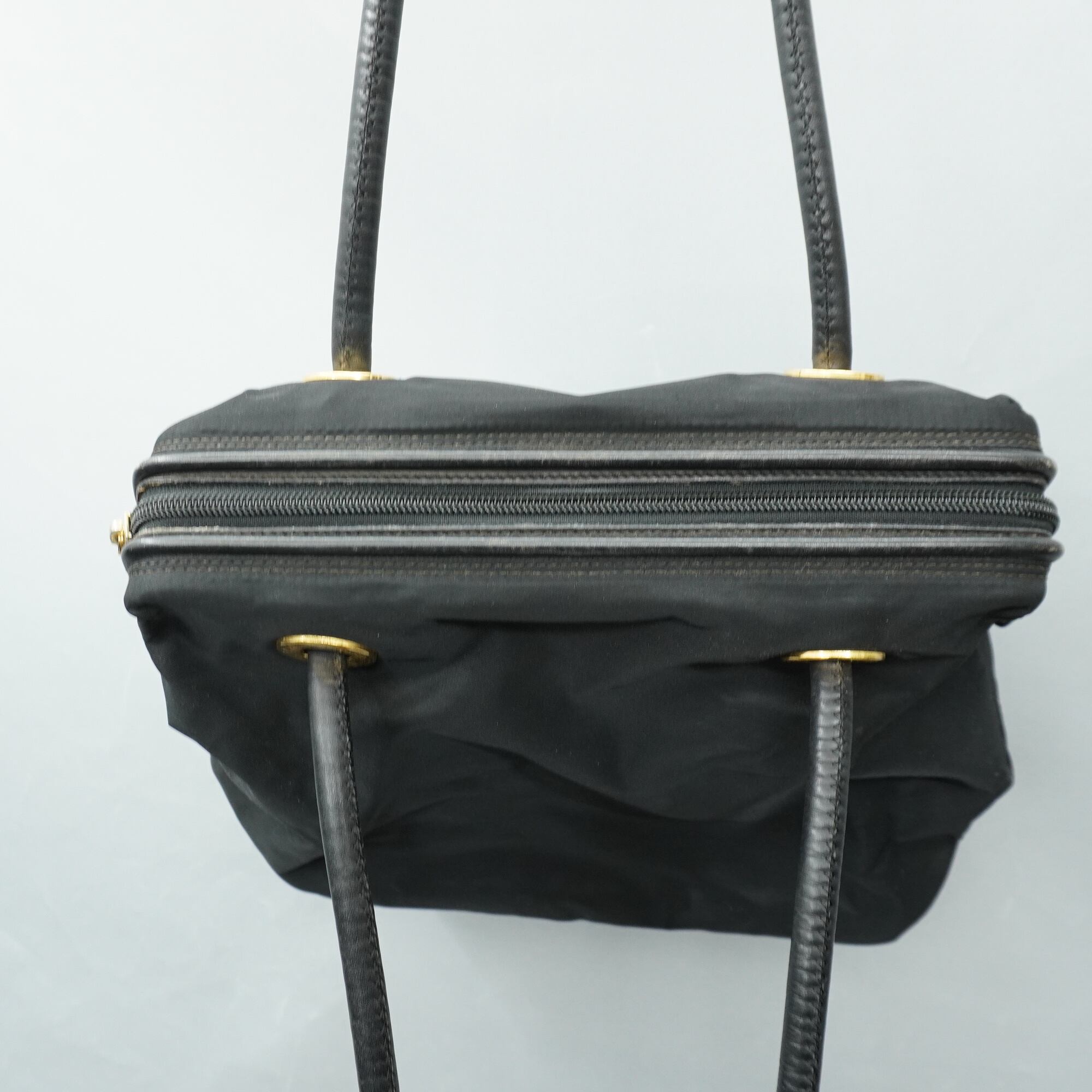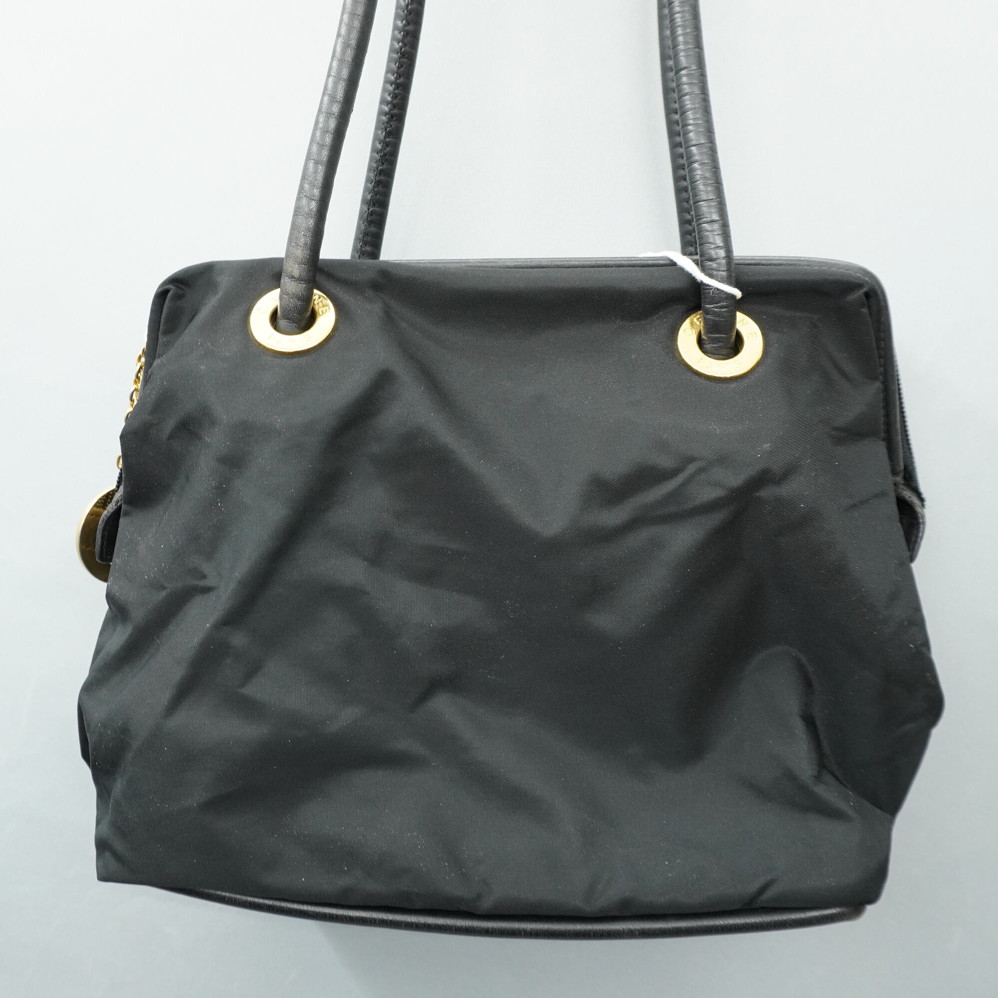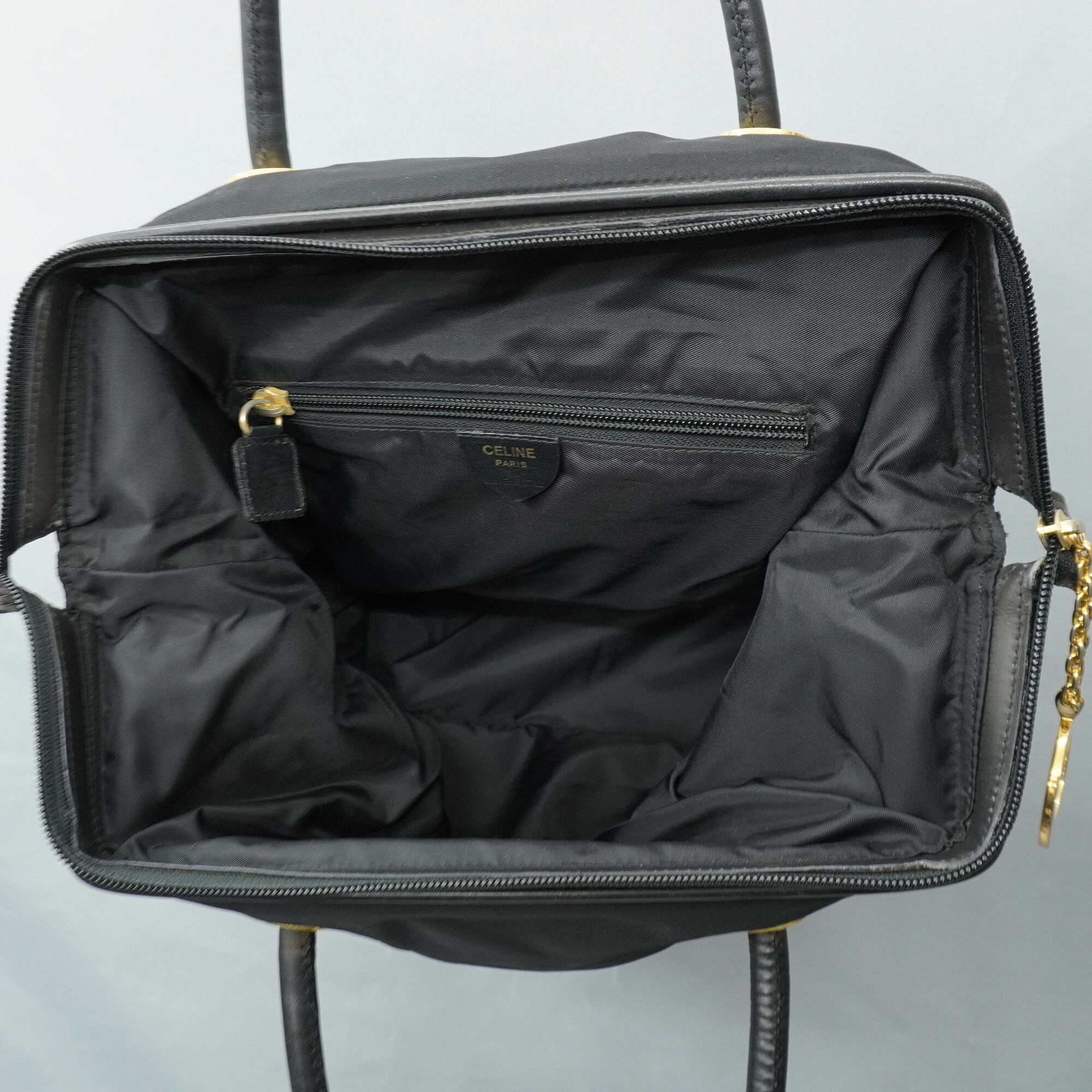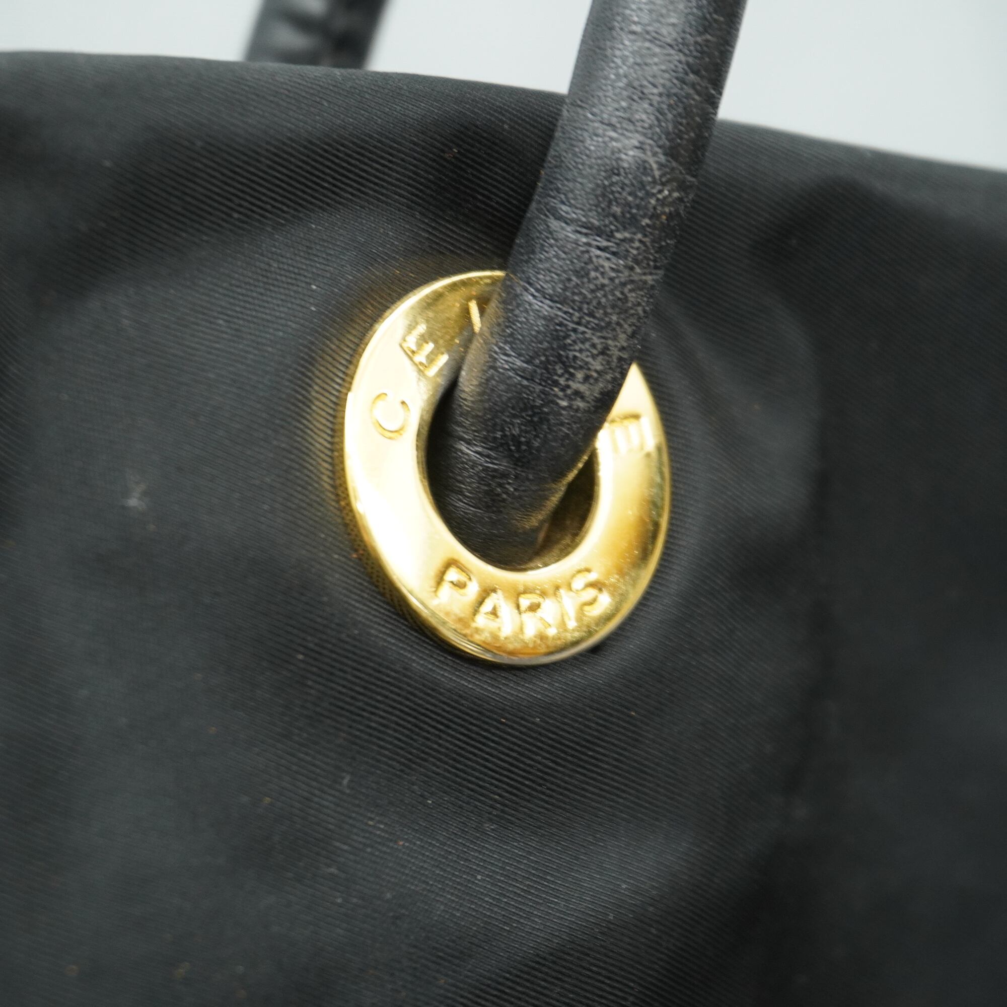 【CELINE】セリーヌ vintage サークルロゴレザーナイロンショルダーバッグ black
