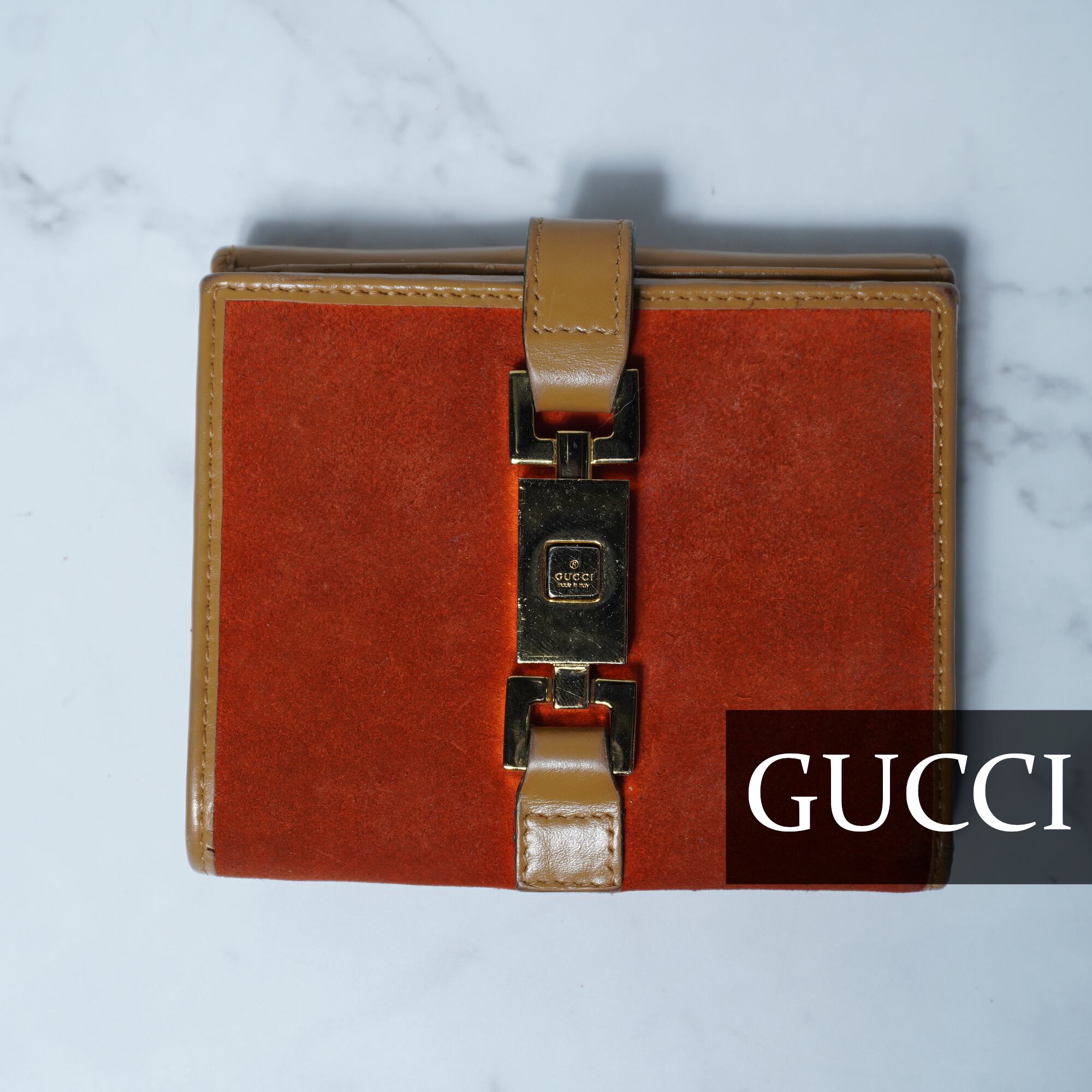 【GUCCI】グッチ ロゴ入二つ折りレザーウォレット orange