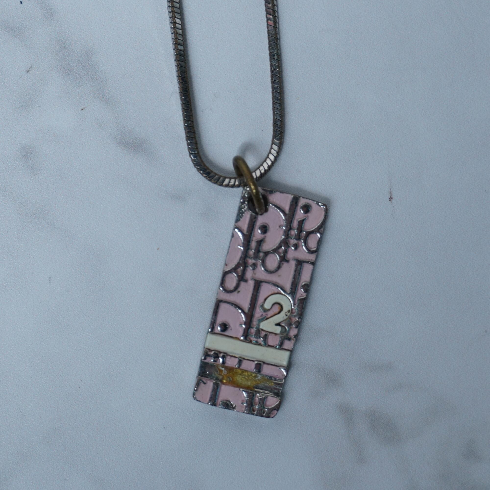 【Christian Dior】クリスチャンディオール トロッタ―プレートトップネックレス pink&silver