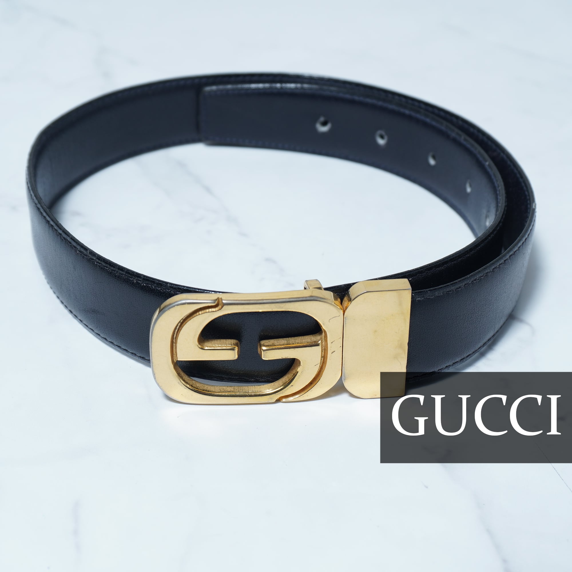【GUCCI】グッチ インターロッキンGゴールドバックルレザーベルト black