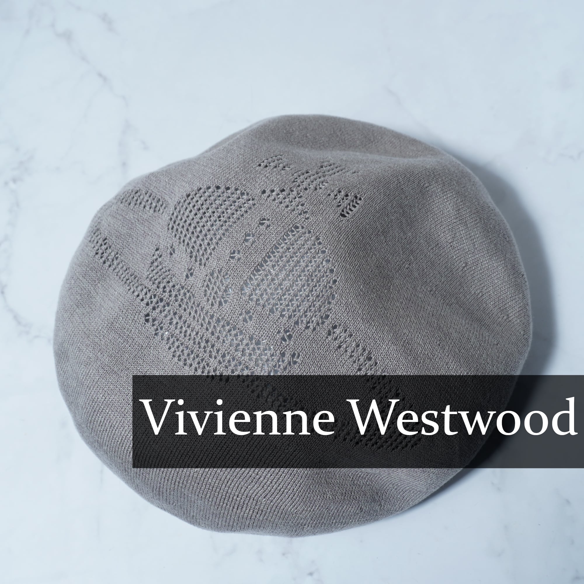 【Vivienne Westwood】ヴィヴィアンウエストウッド 透かし編みオーブロゴサマーベレー帽 gray