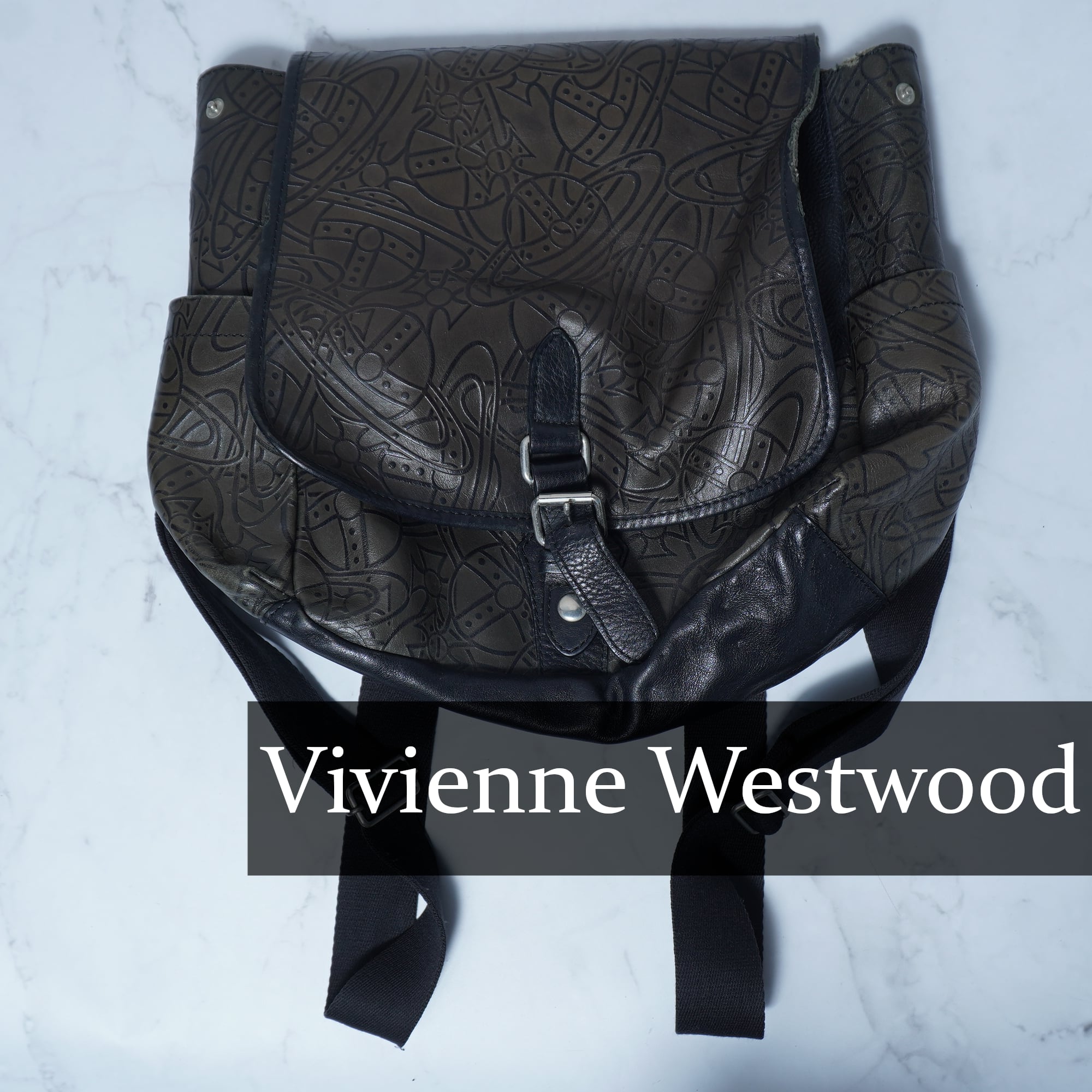 【Vivienne Westwood】ヴィヴィアンウエストウッド エンボスオーブロゴ総柄レザーバックパック black