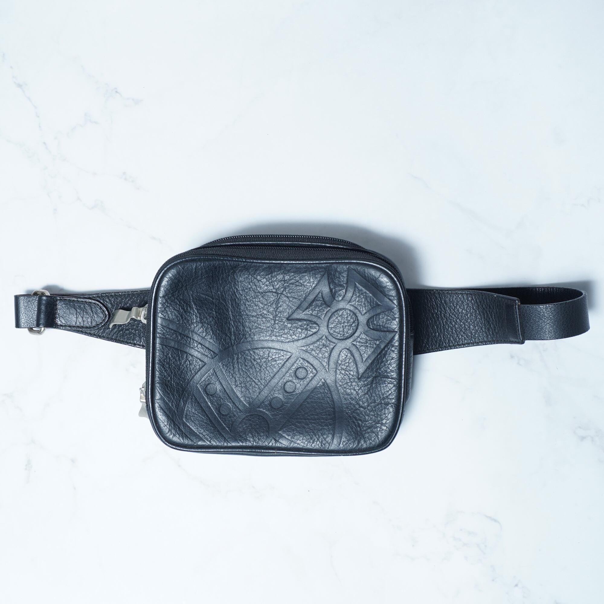 【Vivienne Westwood】ヴィヴィアンウエストウッド エンボスオーブロゴリアルレザーウエストバッグ black