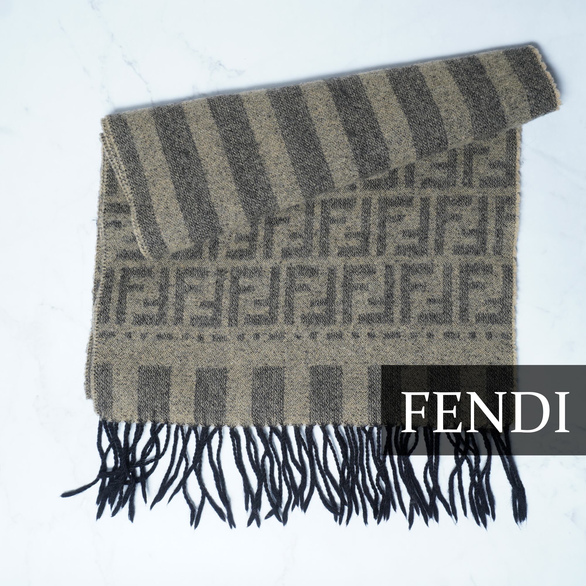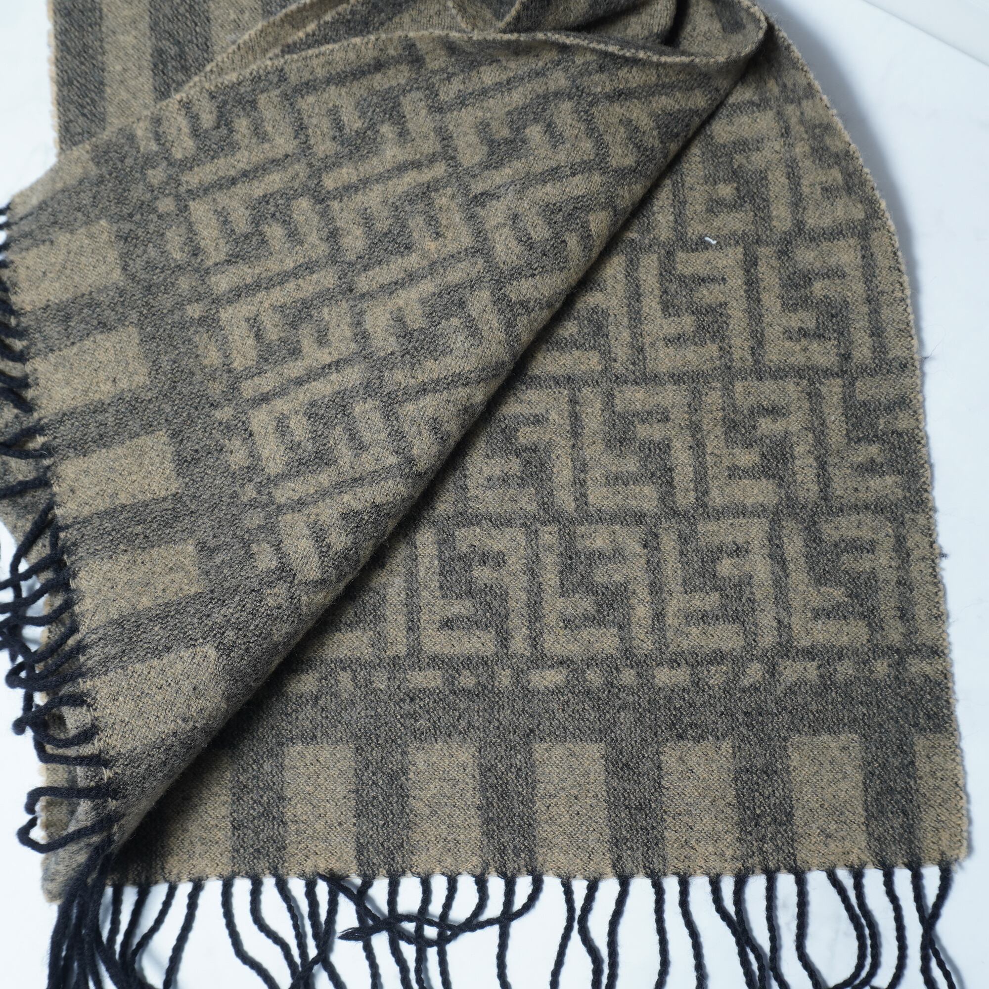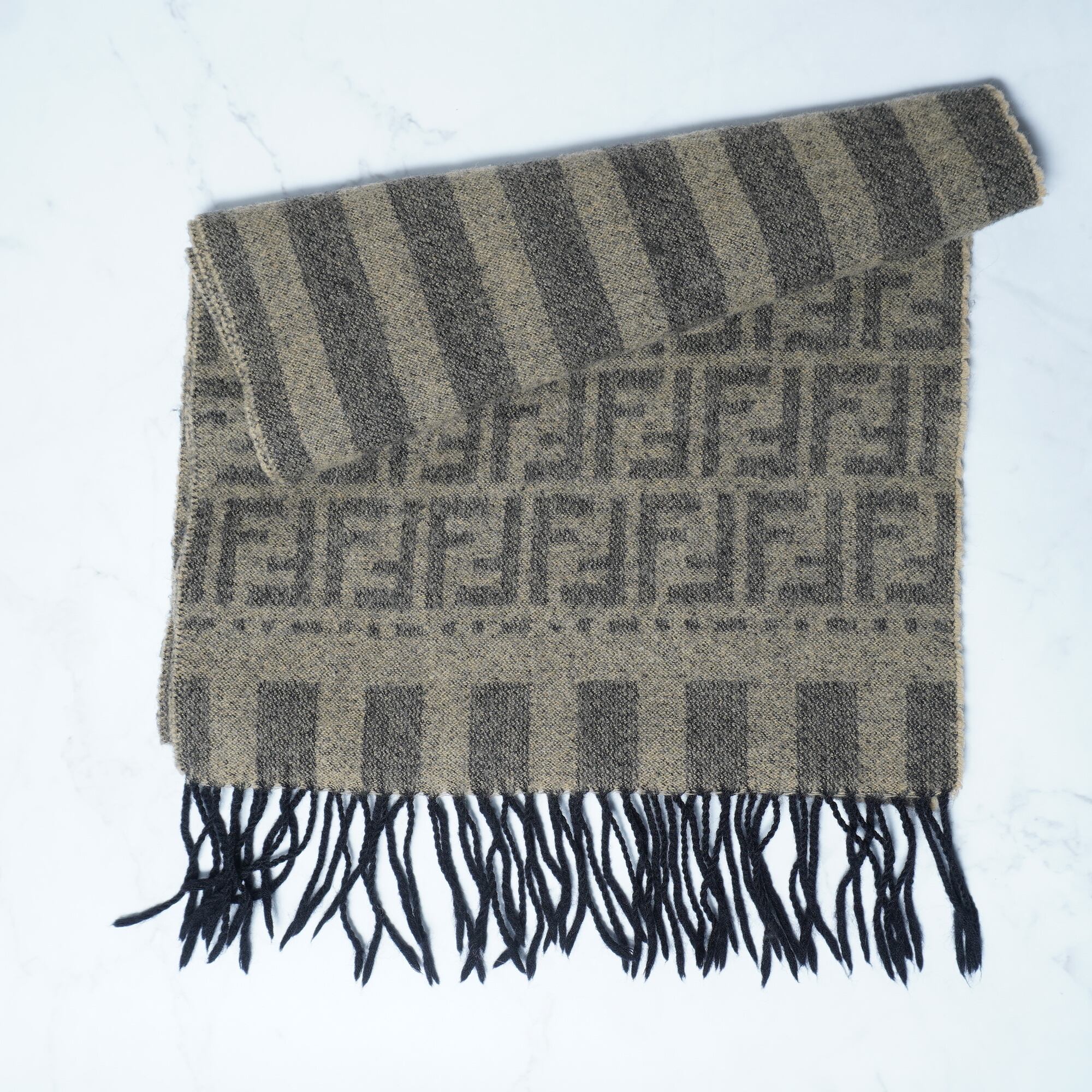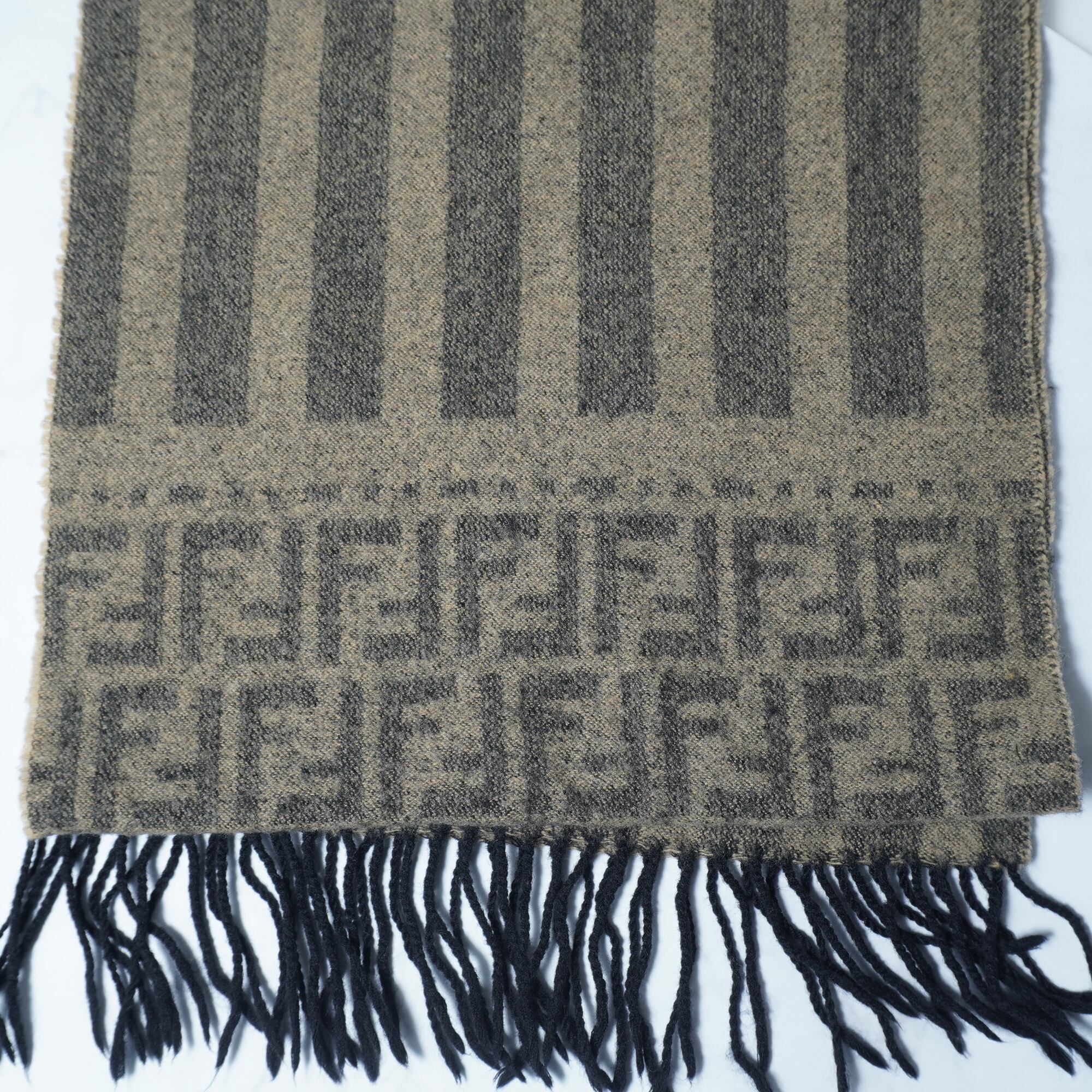 【FENDI】フェンディ 100% wool ズッカ柄 scarf brown