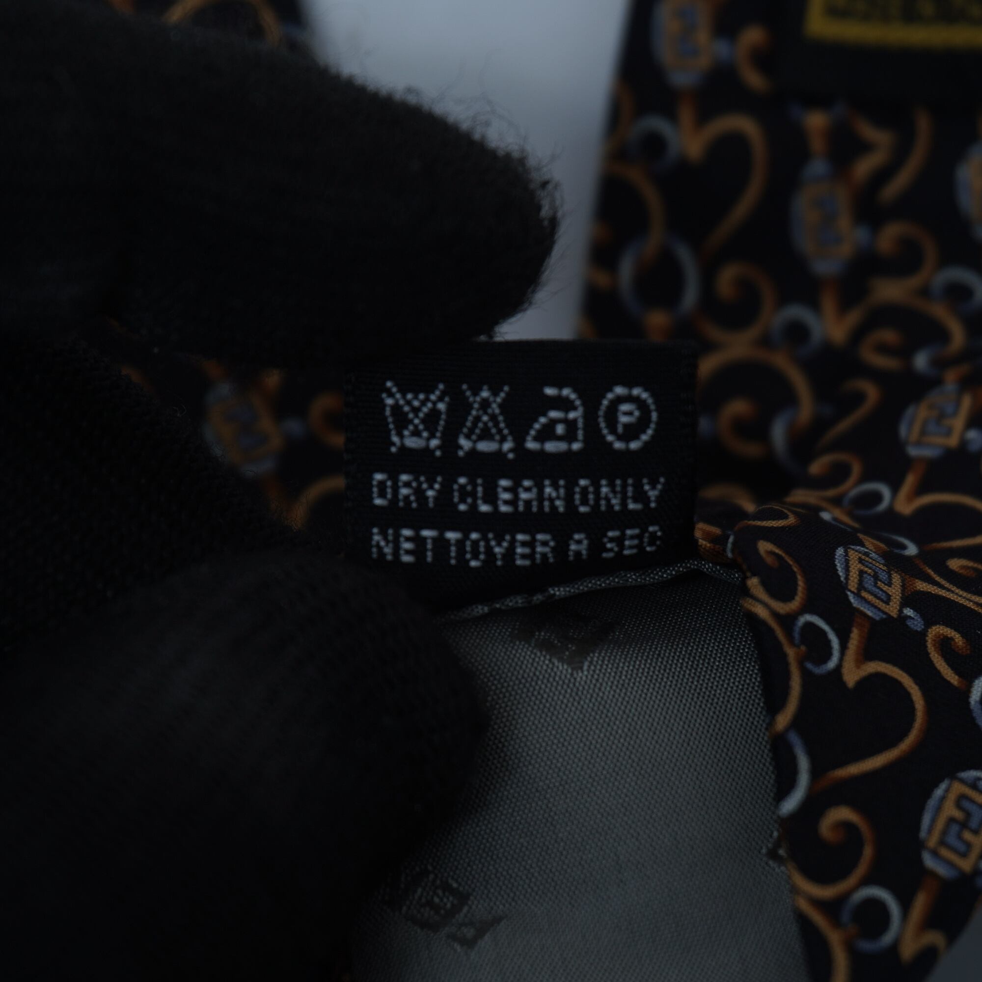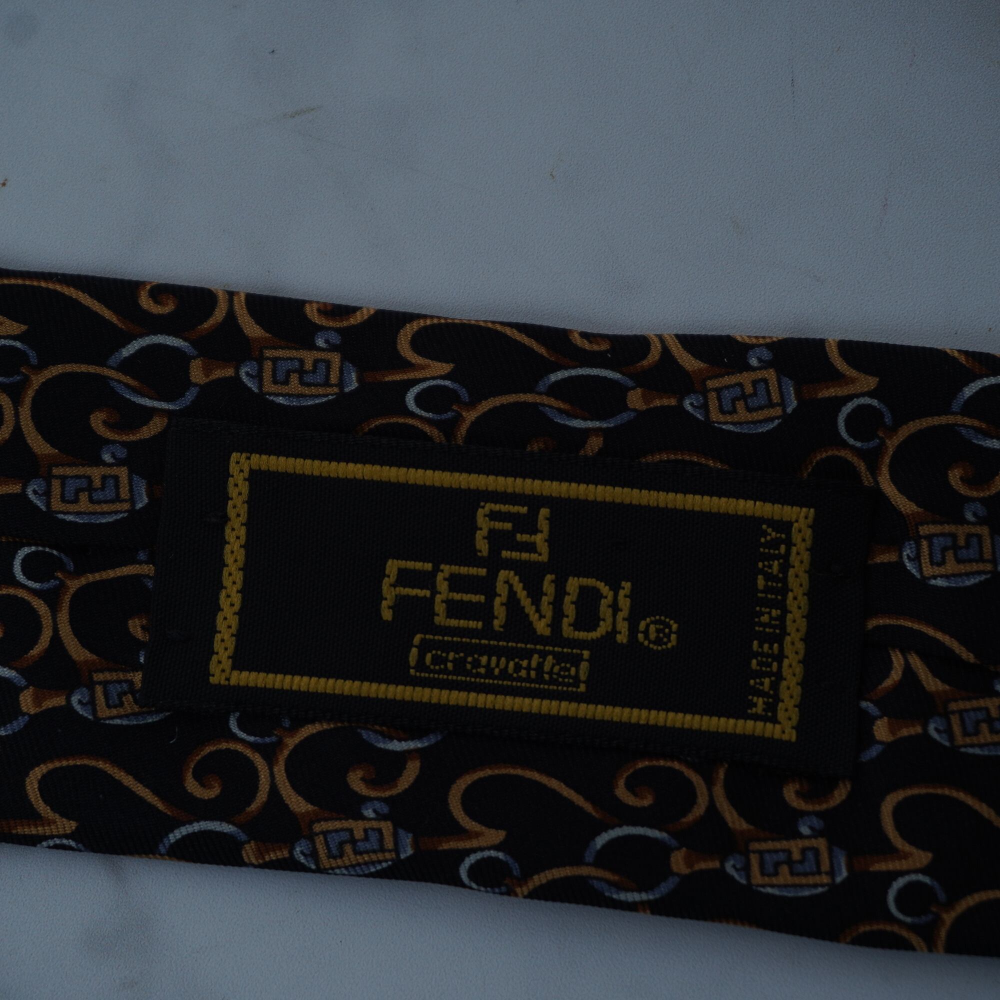 【FENDI】フェンディ ズッカ・スワール柄SILK100%ネクタイ black& gold