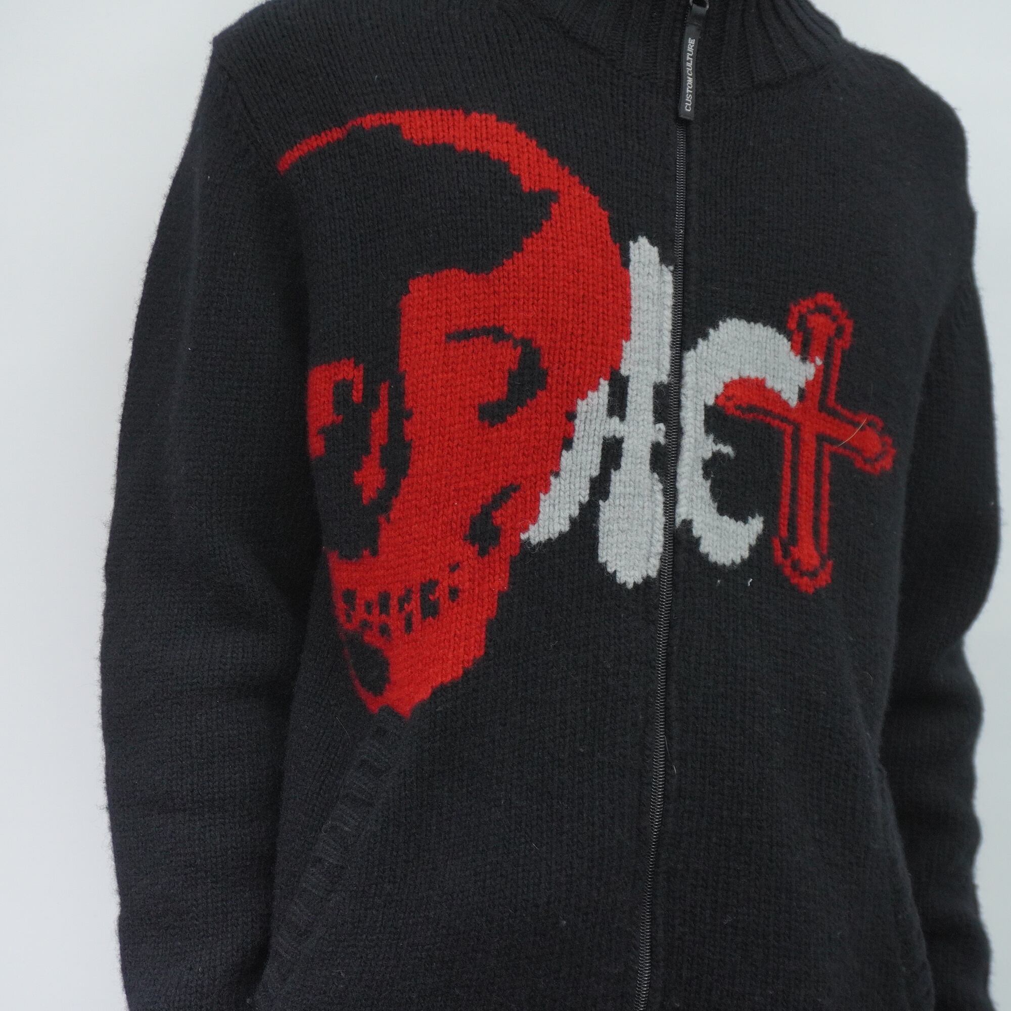 【CUSTON CULUTURE】00’s Y2K Japanese label ウール100% スカルグラフィックカウチンジップニット black