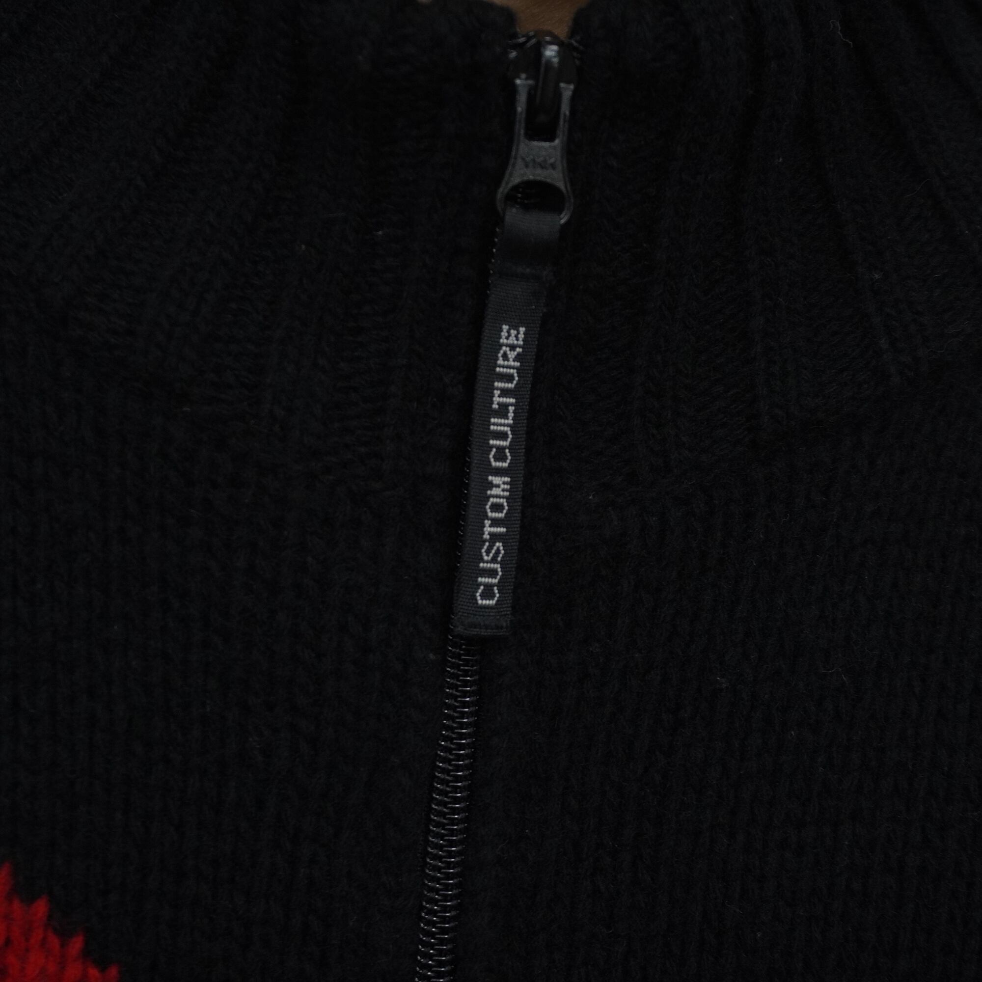 ・個性的なデザインが魅力の、【CUSTON CULUTURE】00’s Y2K 日本製 ウール100% スカルグラフィックカウチンジップニット black