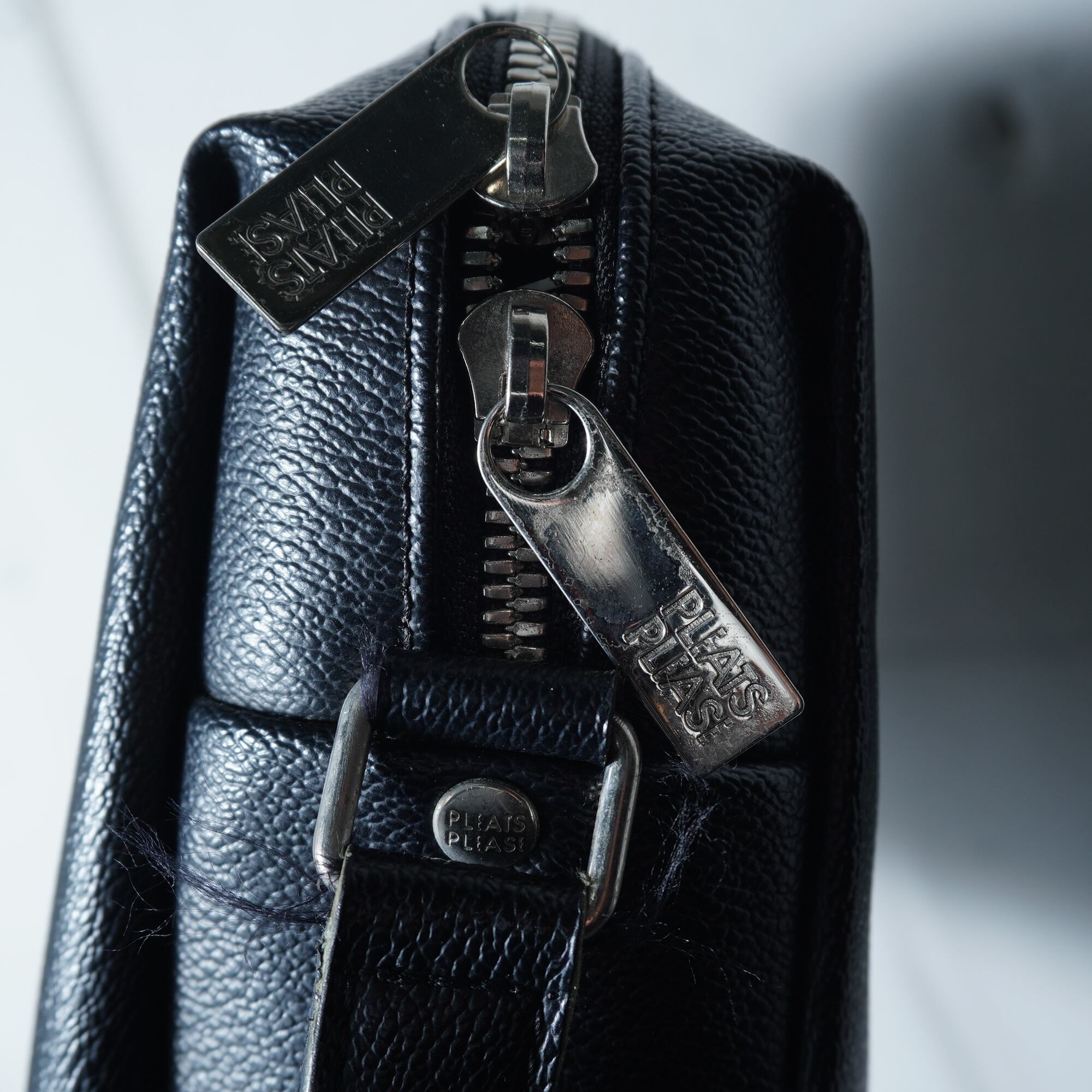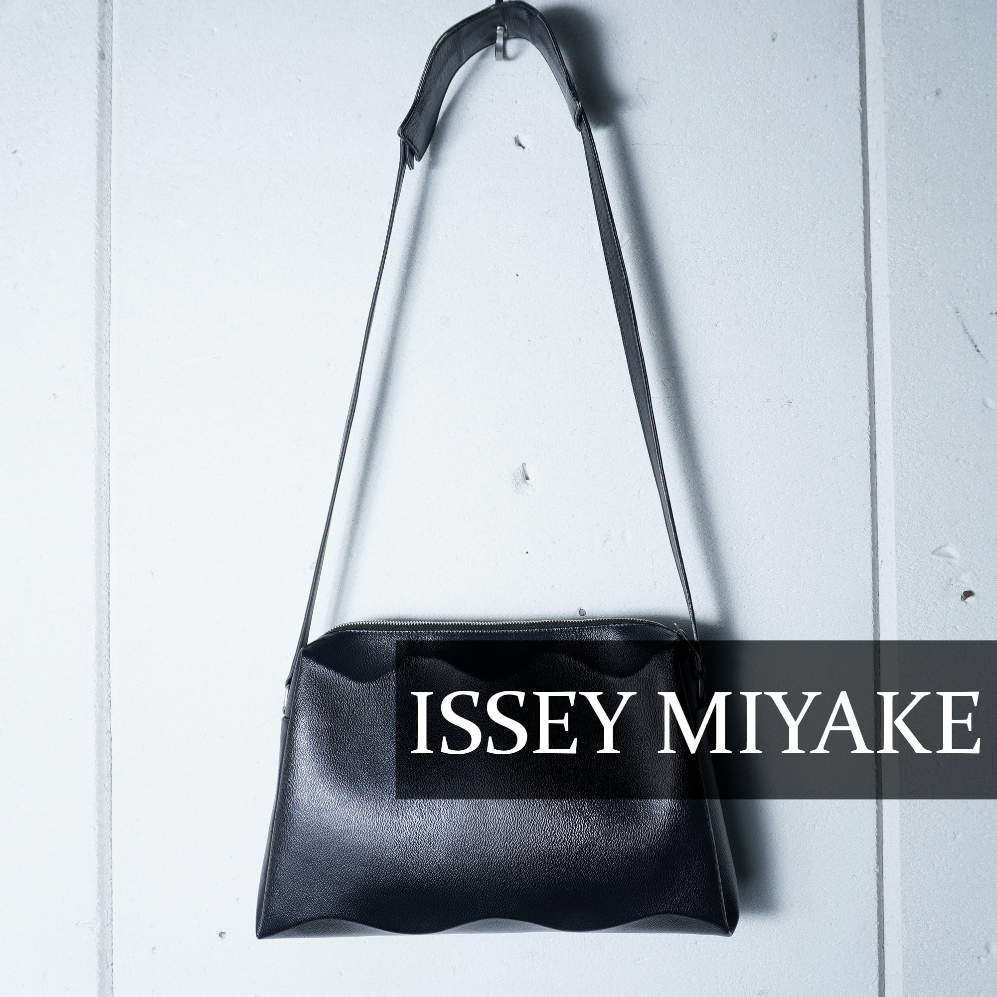 【ISSEY MIYAKE】イッセイミヤケ プリーツプリーズ プリーツシボ加工レザーショルダーバッグ black