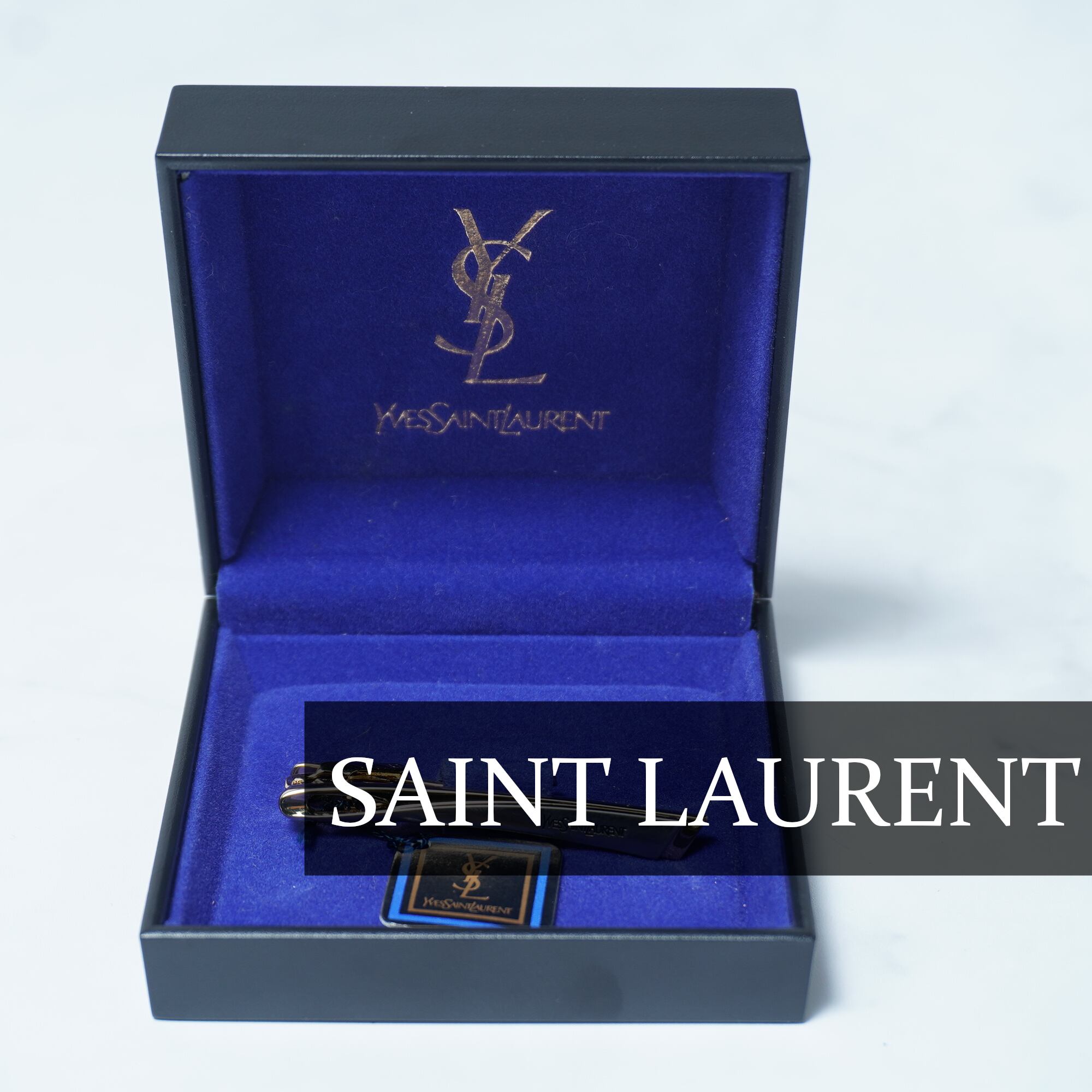 【Yves Saint Laurent】イブサンローラン ロゴ入ネクタイピン 箱付 gold