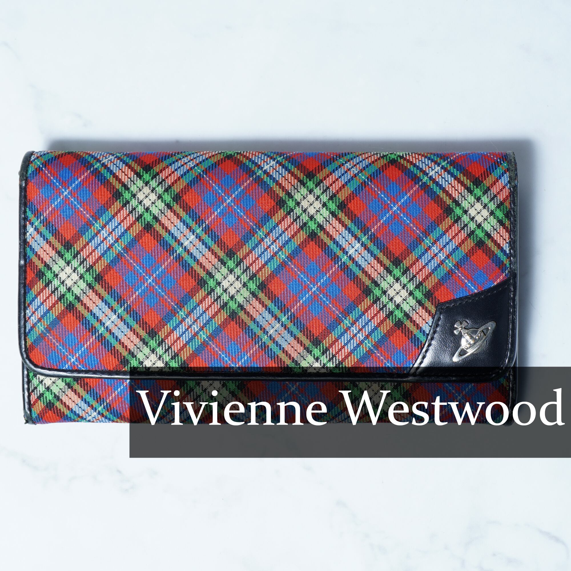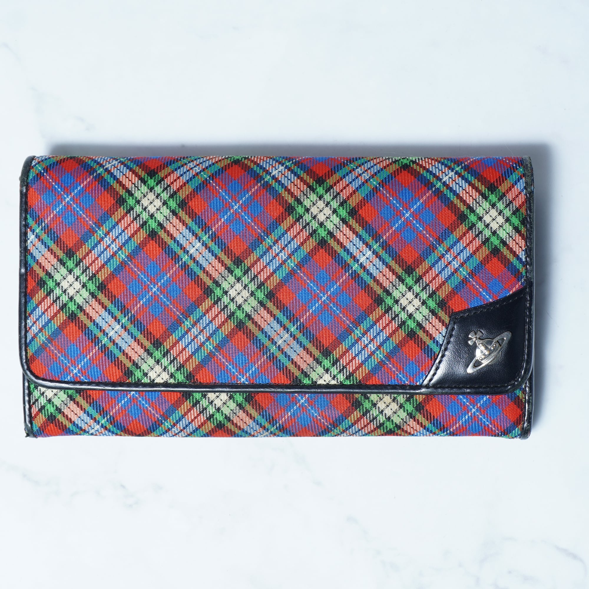 【Vivienne Westwood】ヴィヴィアンウエストウッド オーブロゴ タータンチェックロングウォレット red&blue&green