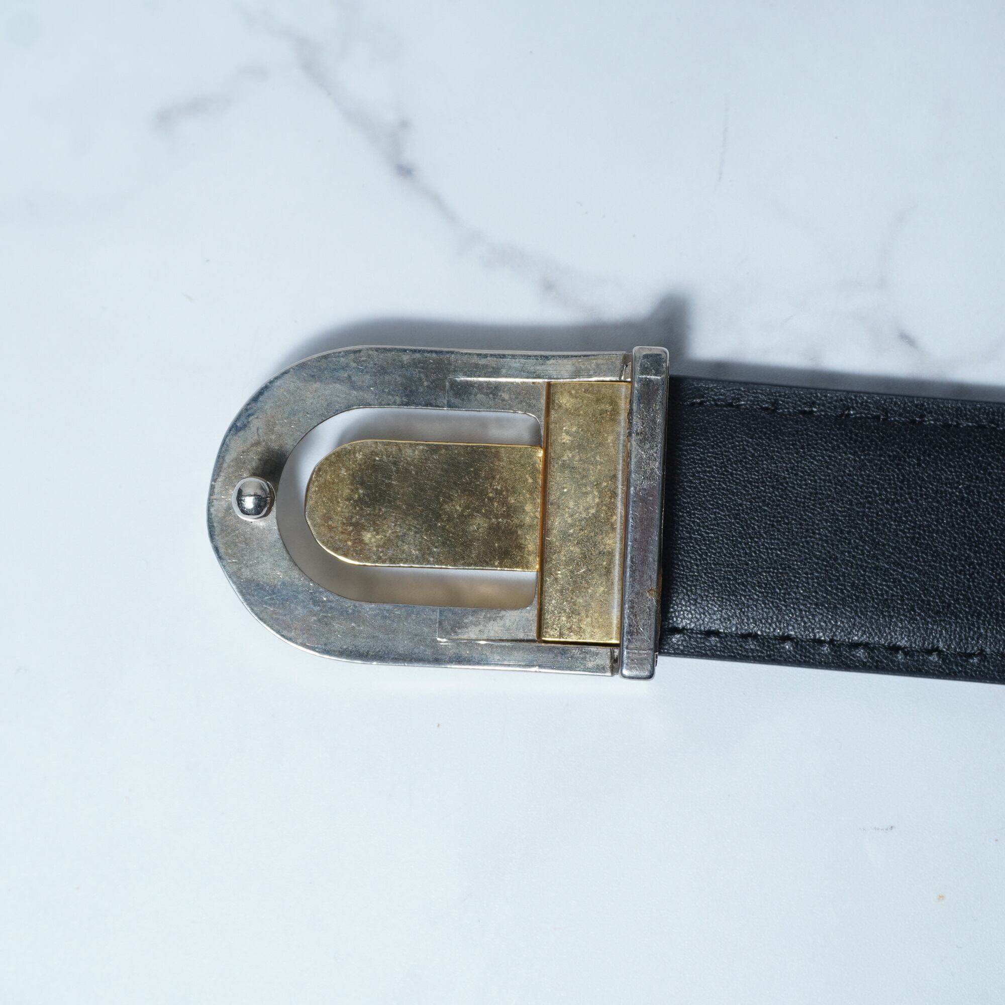 【BALENCIAGA】バレンシアガ ロゴ入ゴールドバックルレザーベルト black