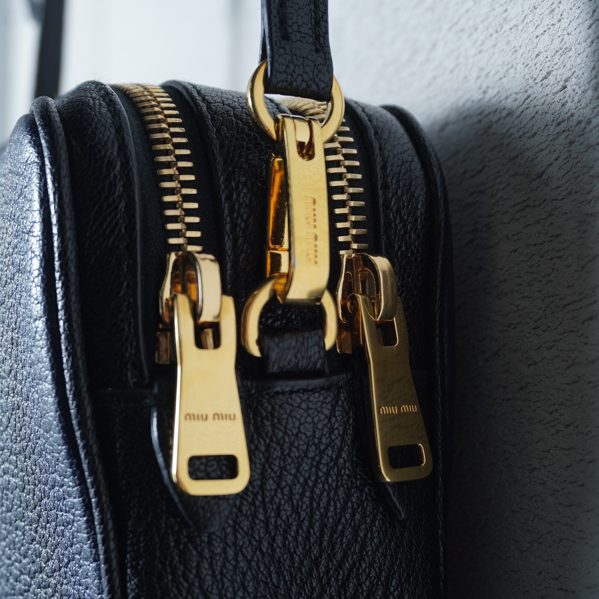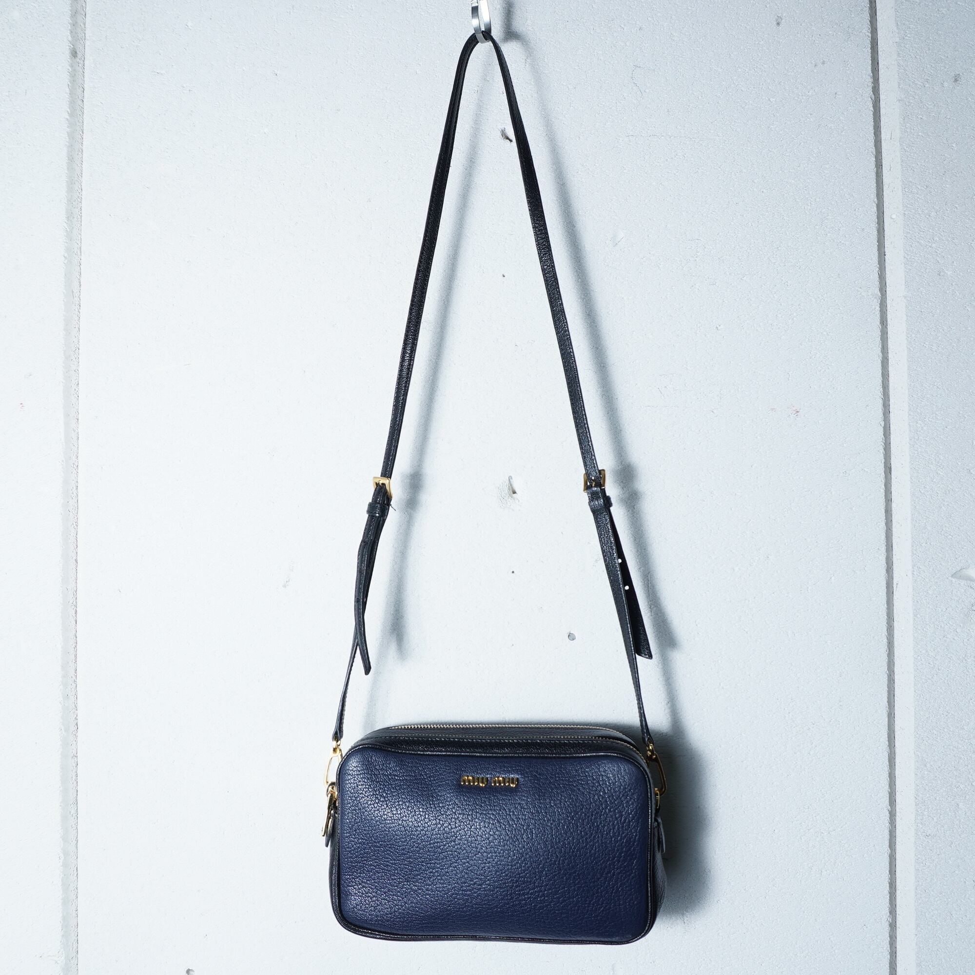 【miu miu】ミュウミュウ ロゴ入 バイカラーレザーショルダーバッグ