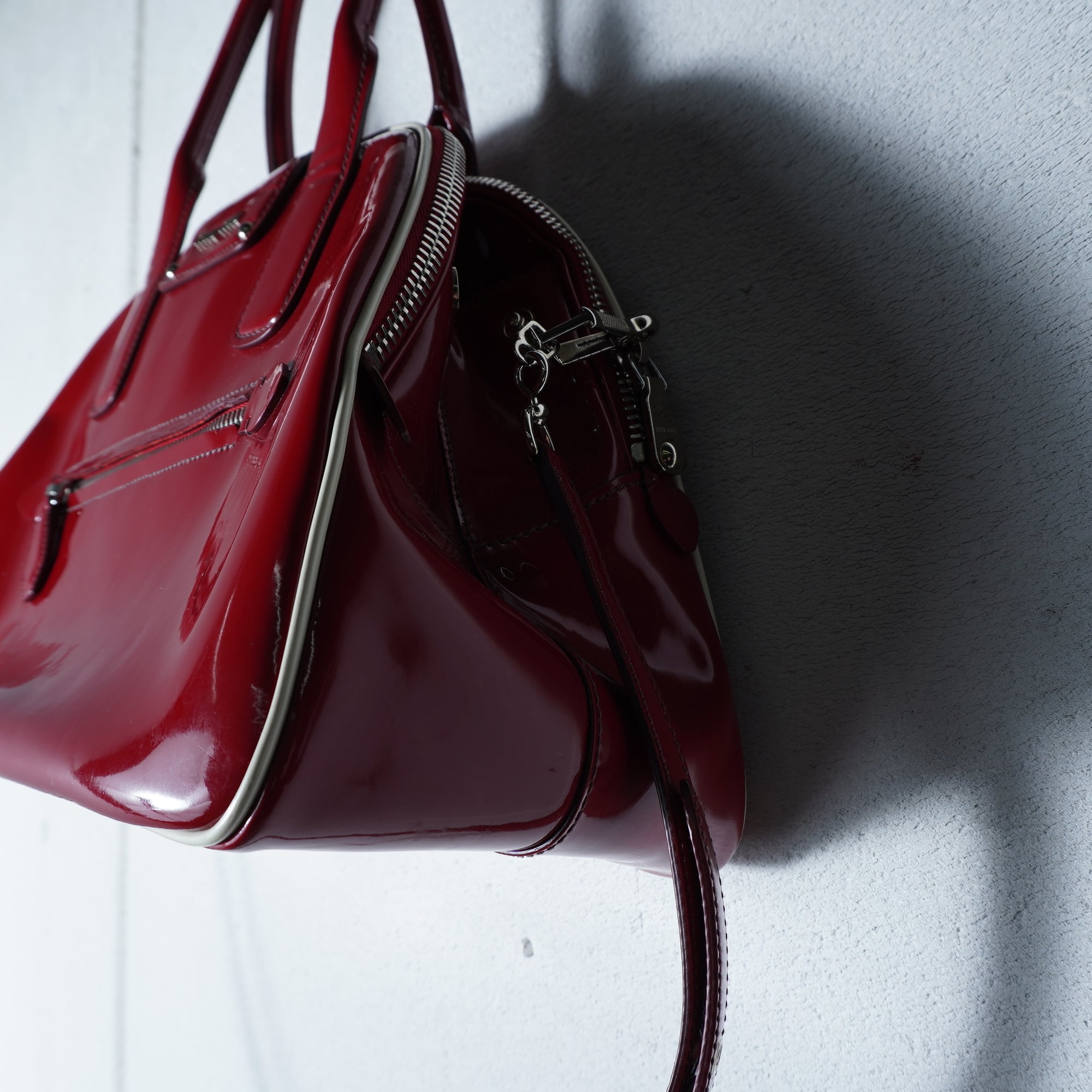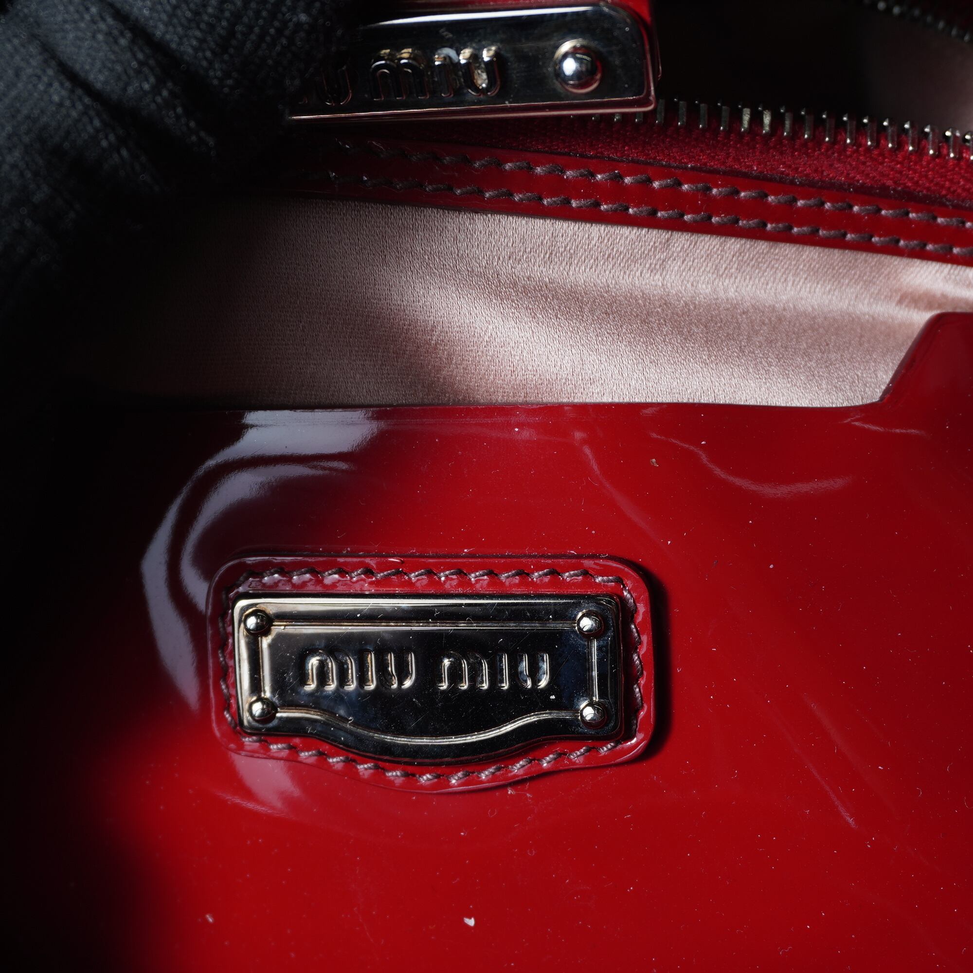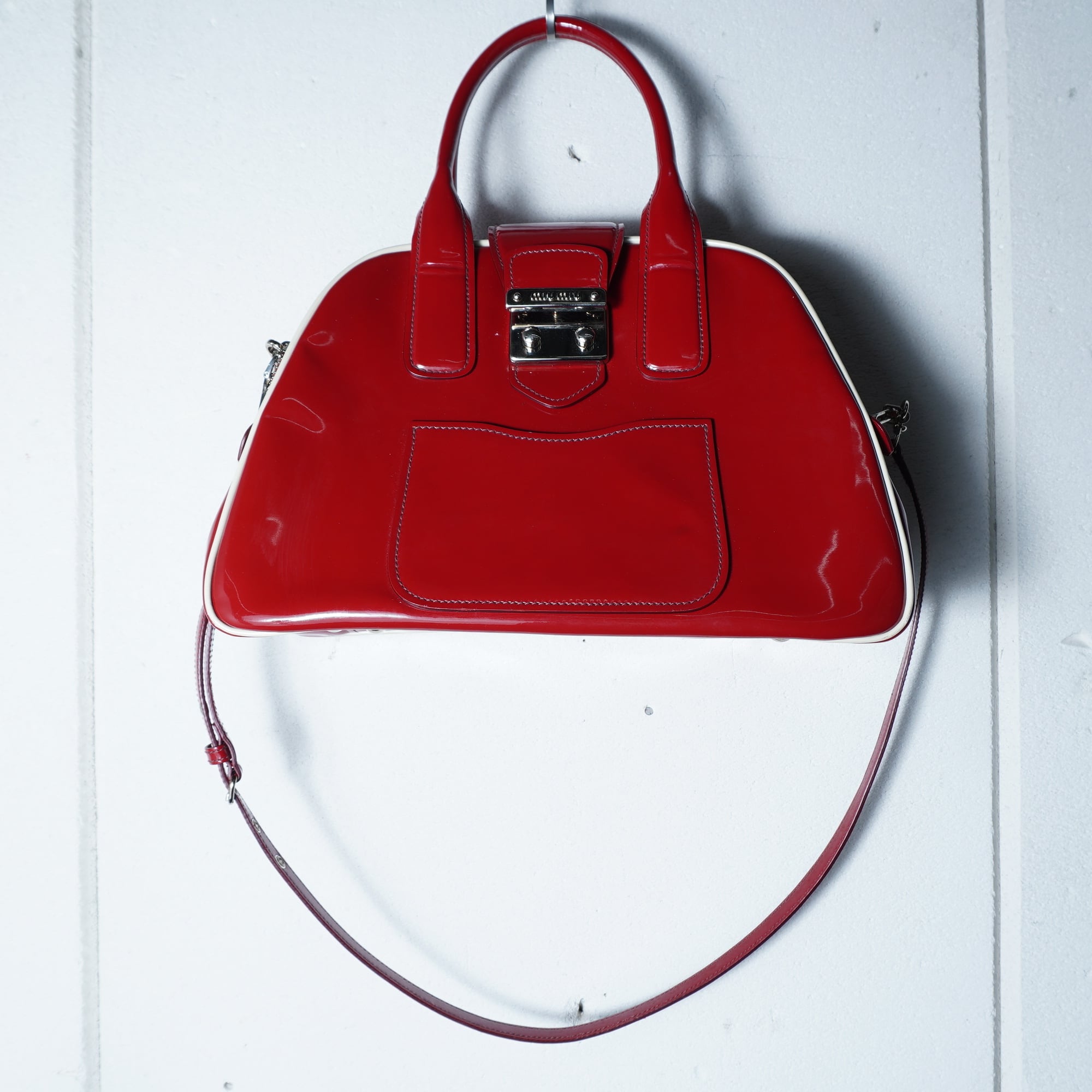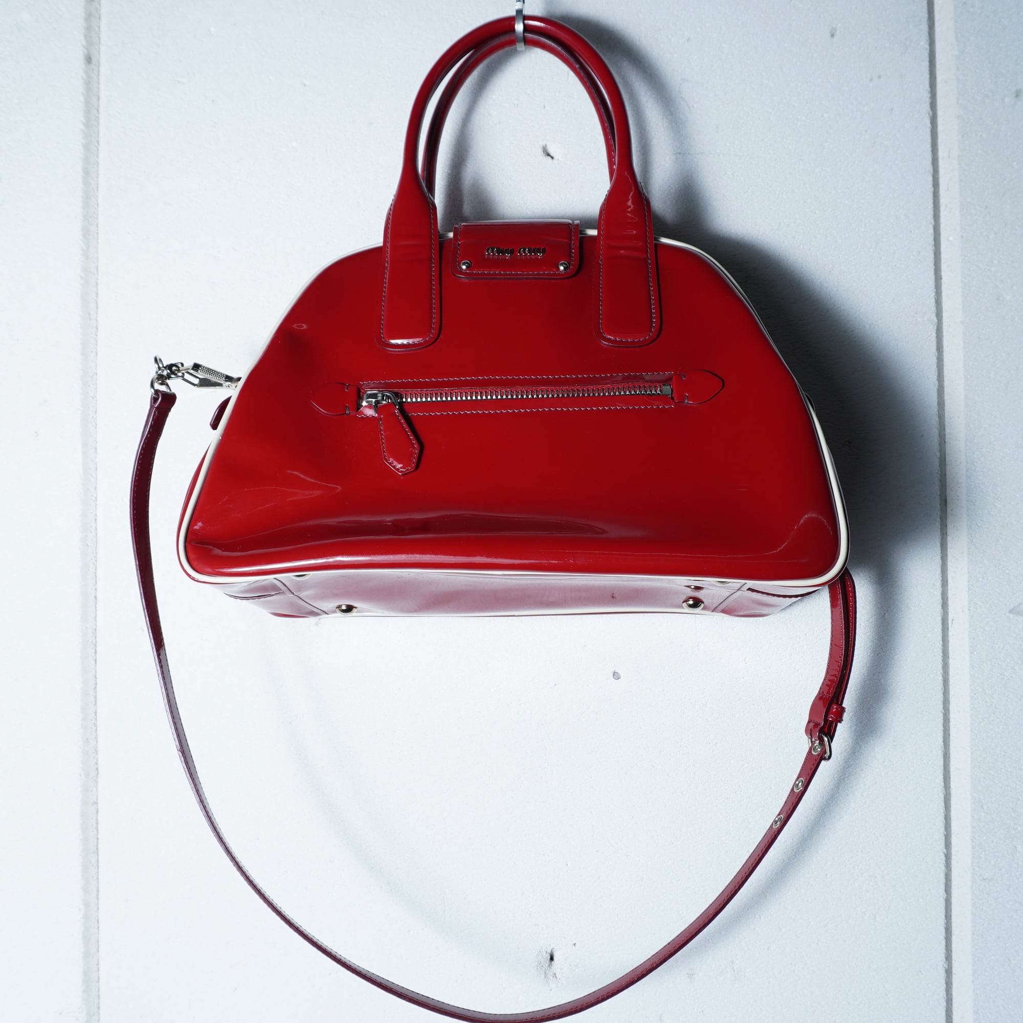 【miu miu】ミュウミュウ ロゴ入エナメルハンドバッグ red