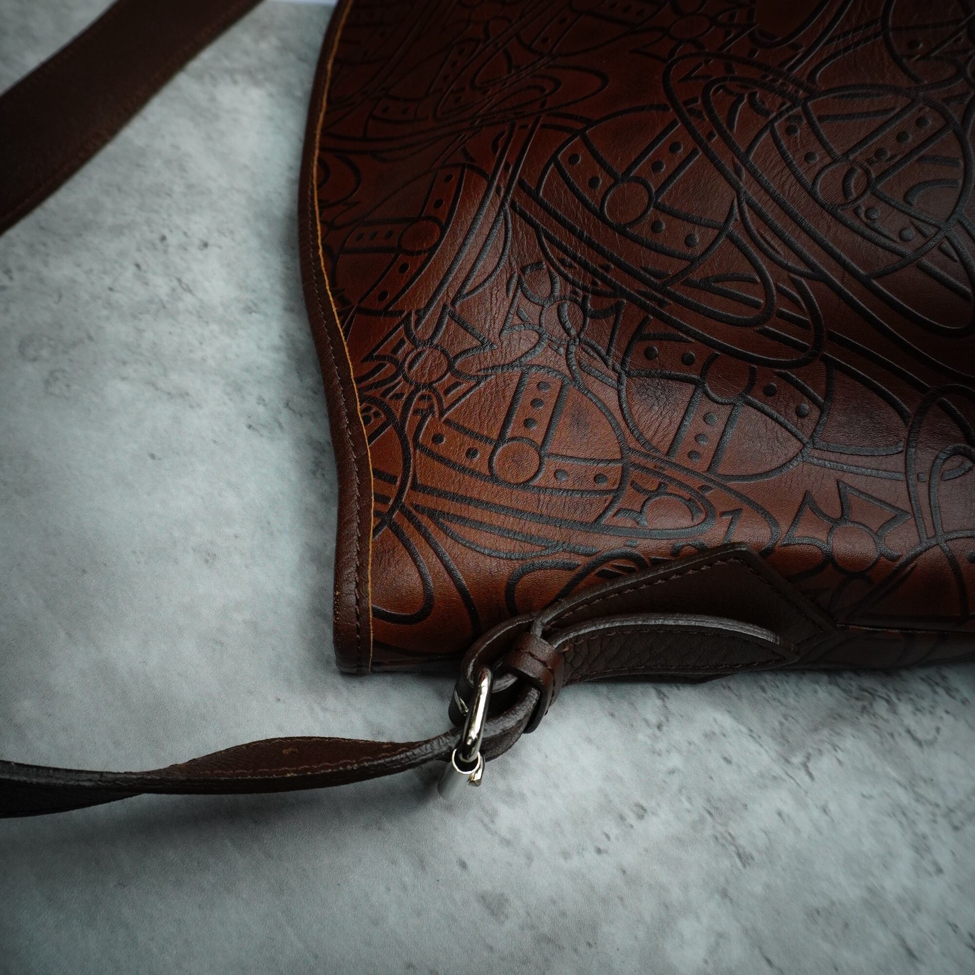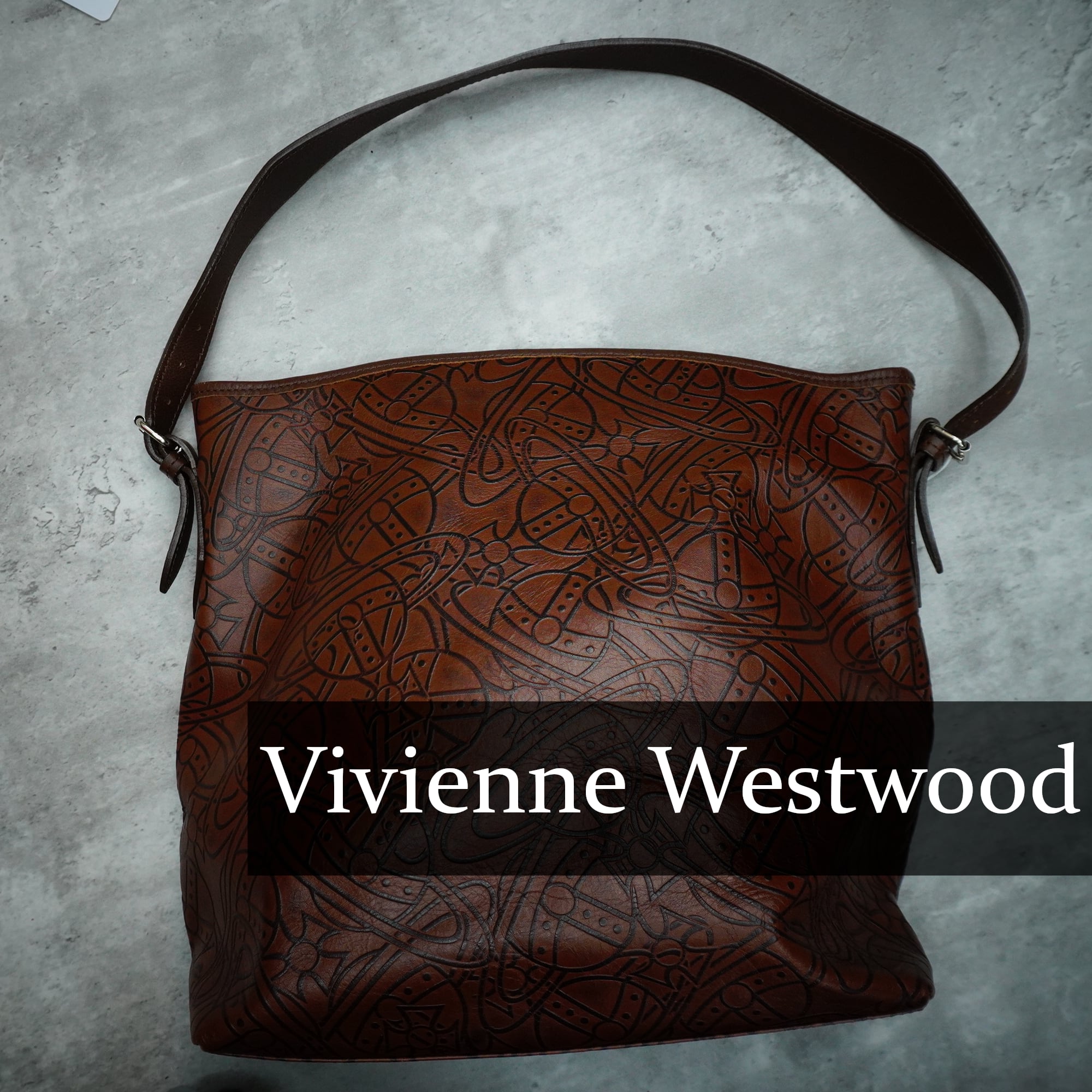 【Vivienne Westwood】ヴィヴィアンウエストウッド 00’s アーサーオーブパターン ワンハンドルレザーショルダーバッグ brown