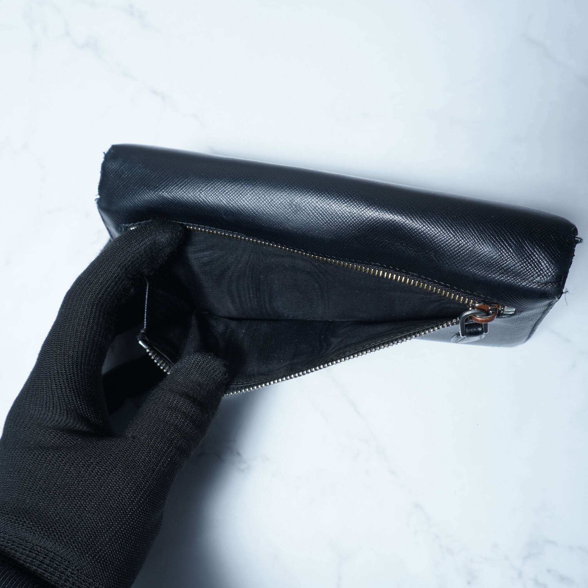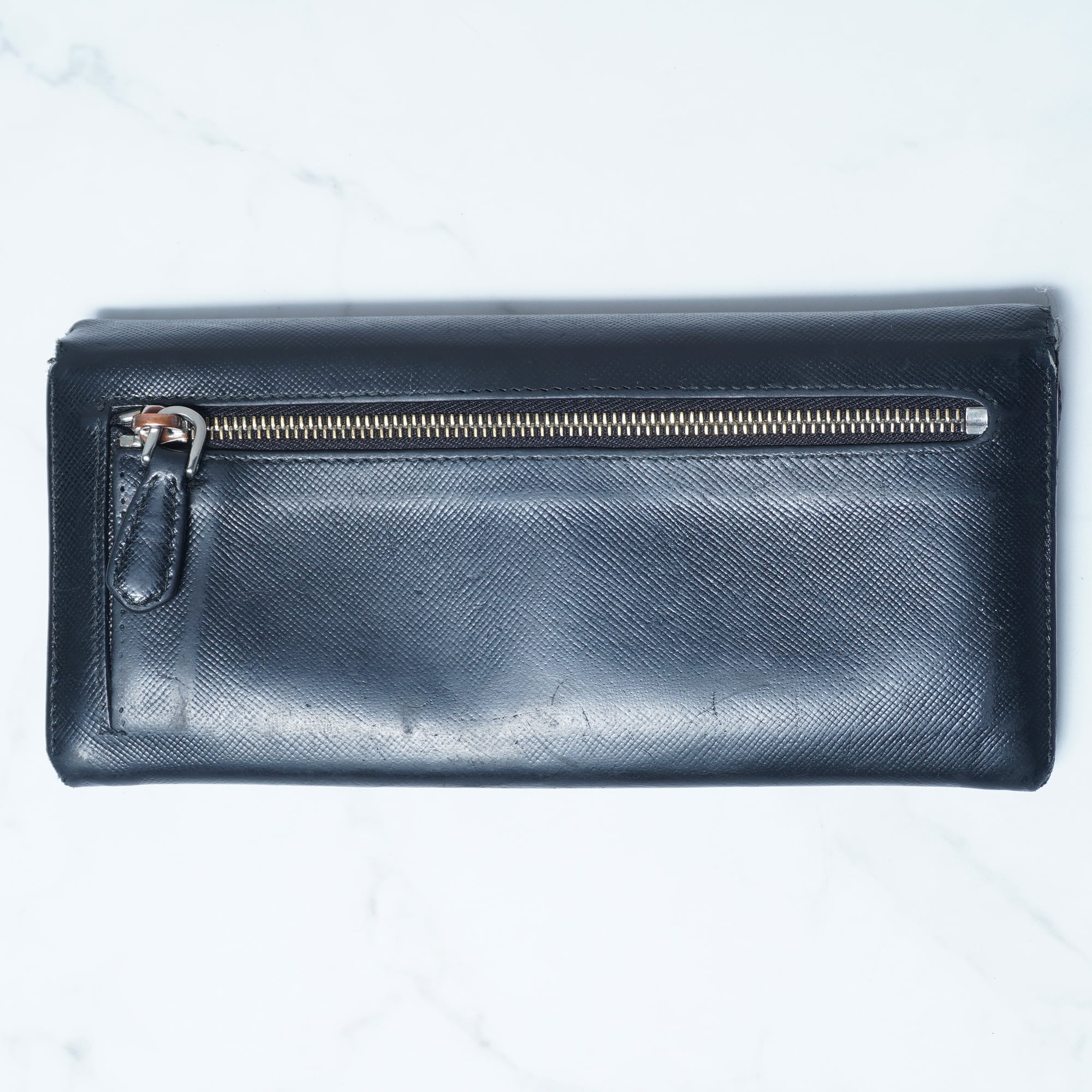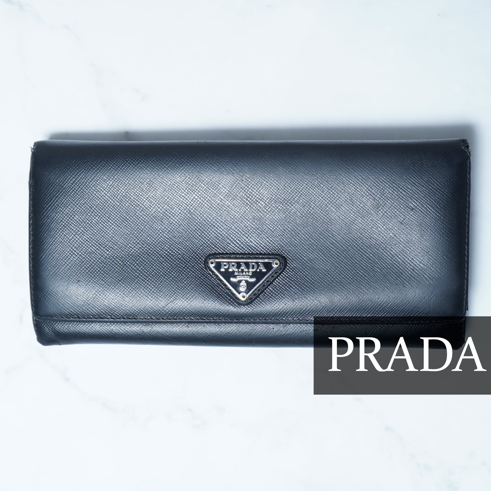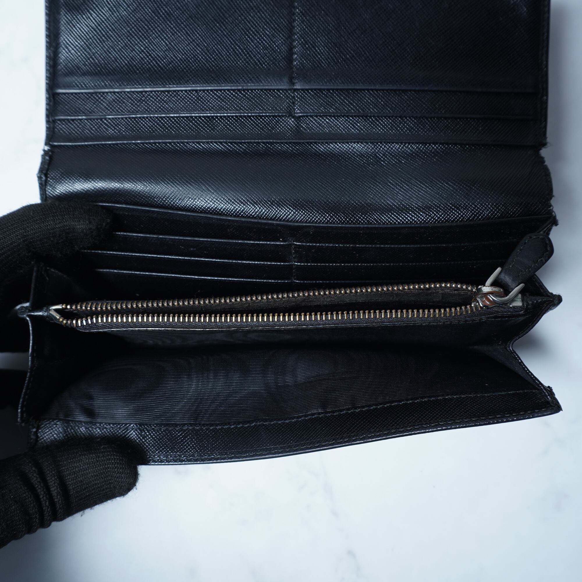【PRADA】プラダ 三角プレートロゴレザーロングウォレット black