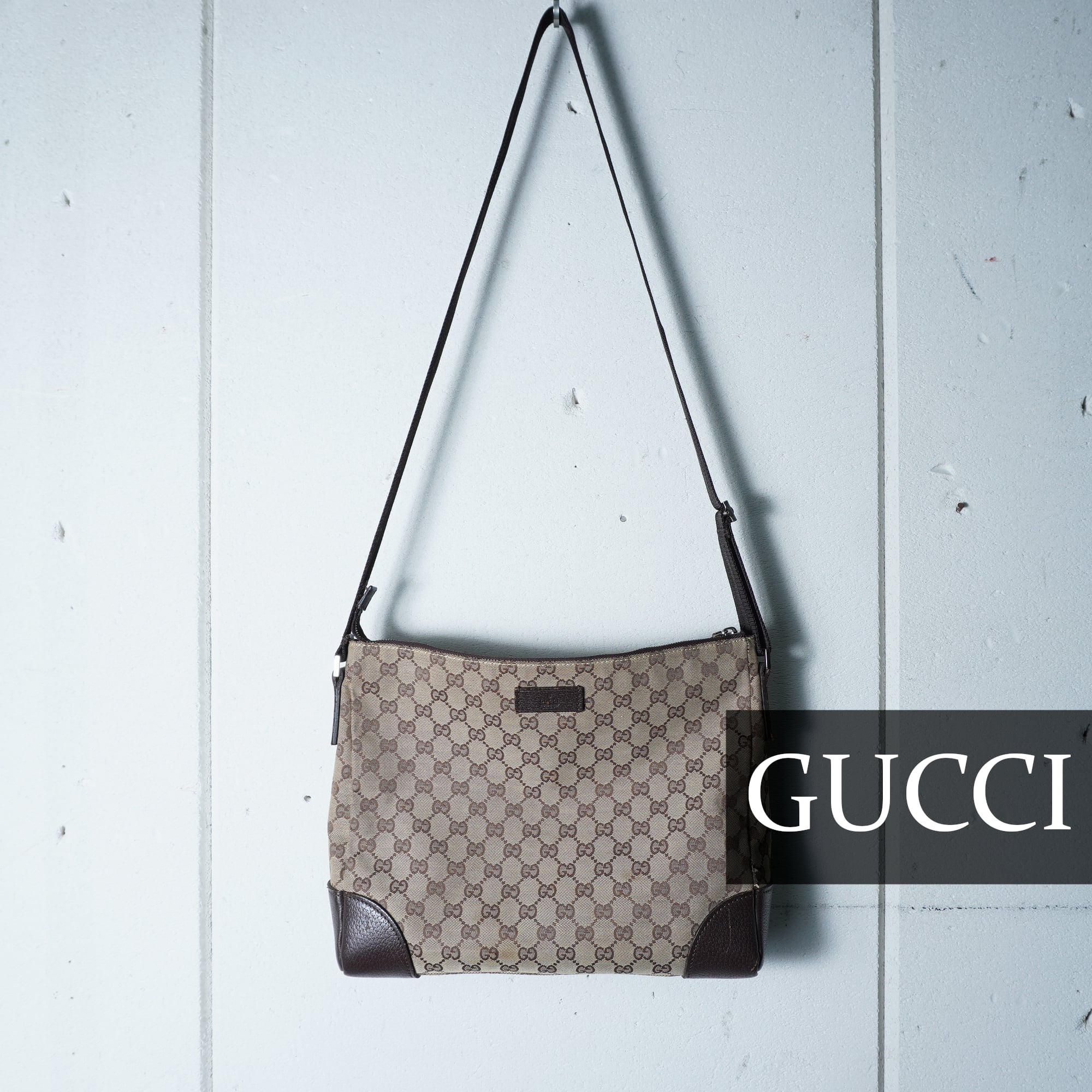 【GUCCI】グッチ GG柄キャンバス・レザーワンショルダーバッグ brown&beige