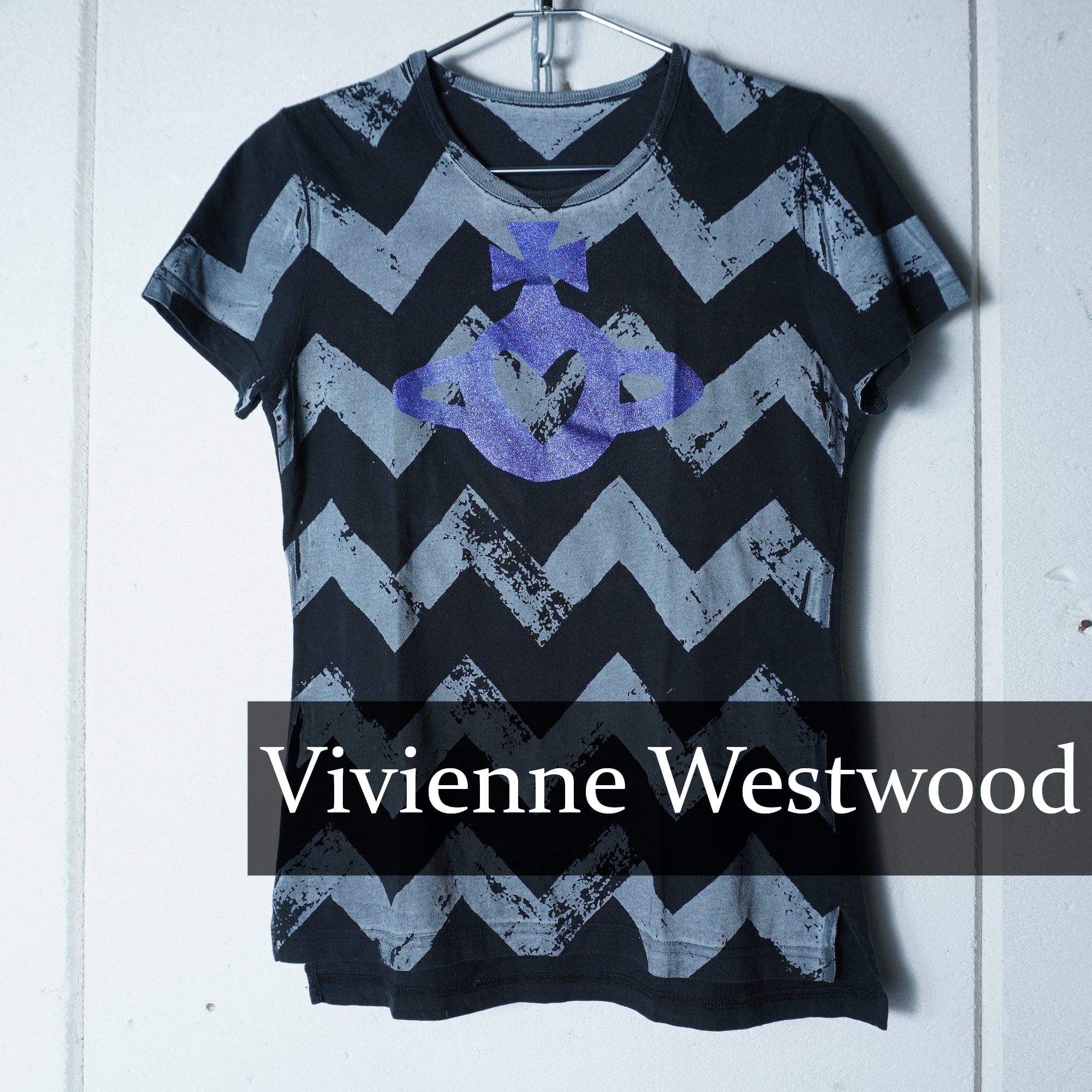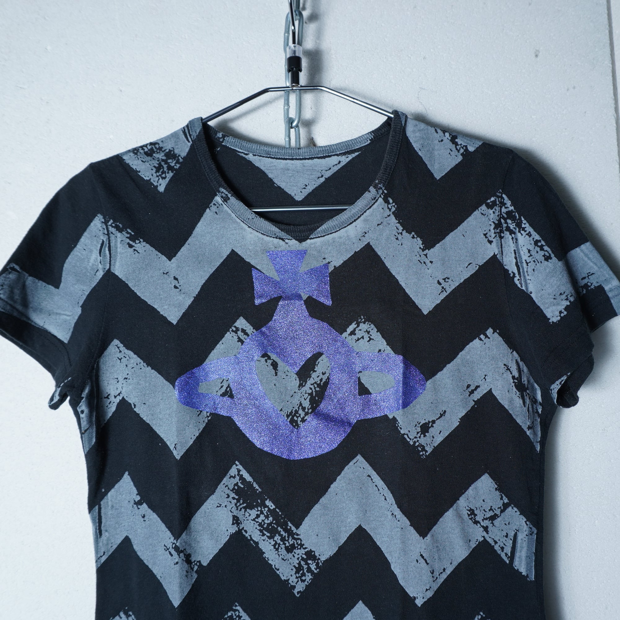 【Vivienne Westwood】ヴィヴィアンウエストウッド オーブロゴシェブロン柄半袖Tシャツ black&gray
