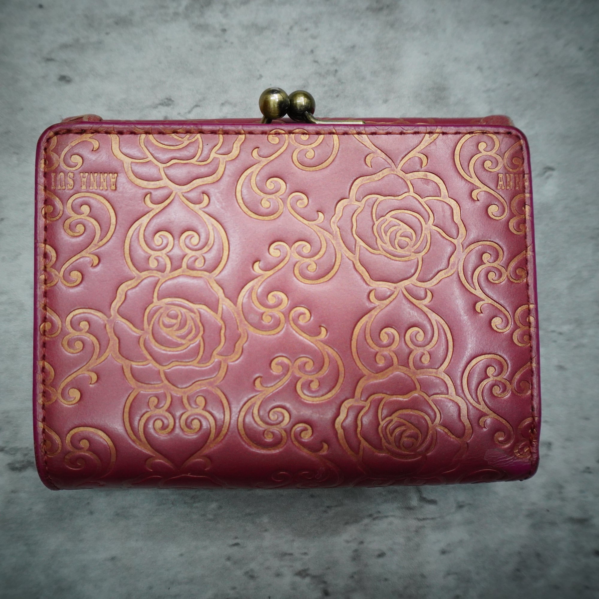【ANNA SUI】アナスイ vintage がま口タイプレザーコンパクト財布 pink