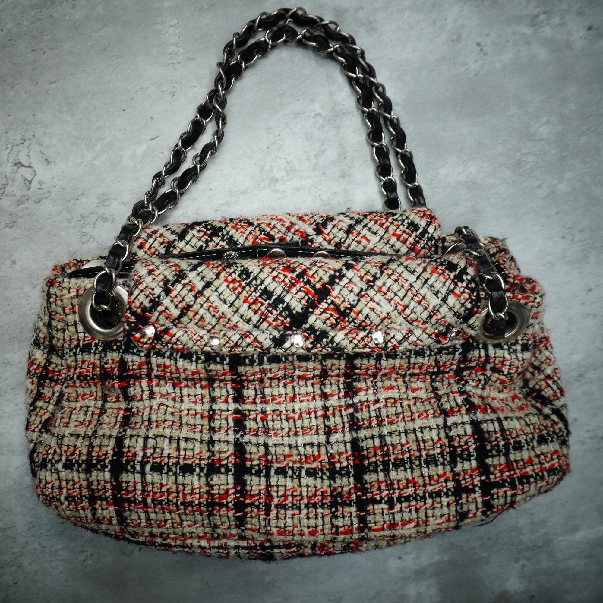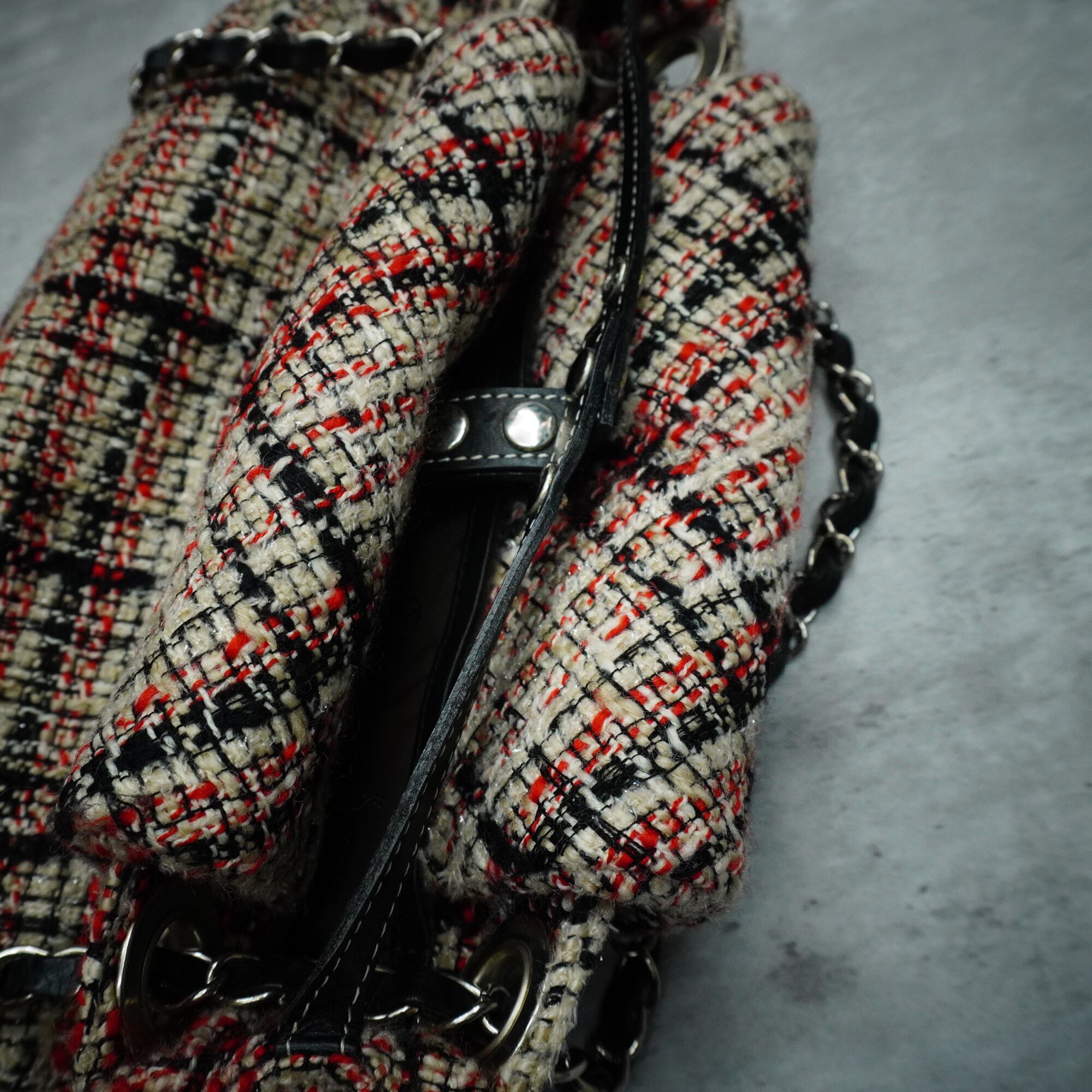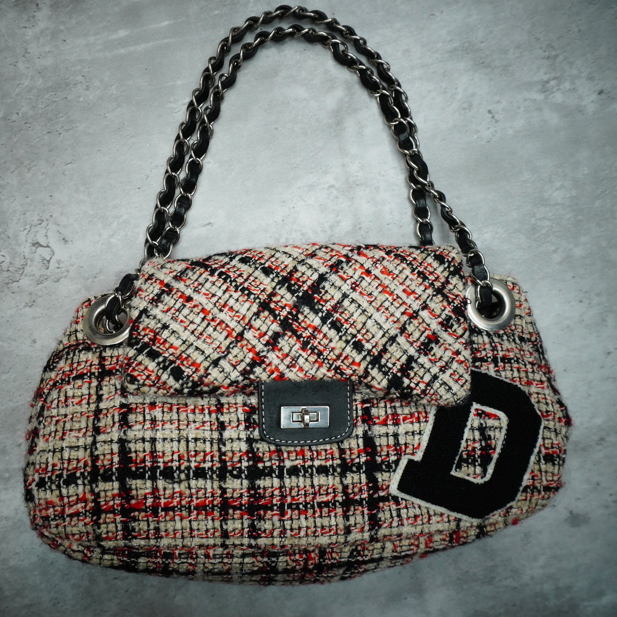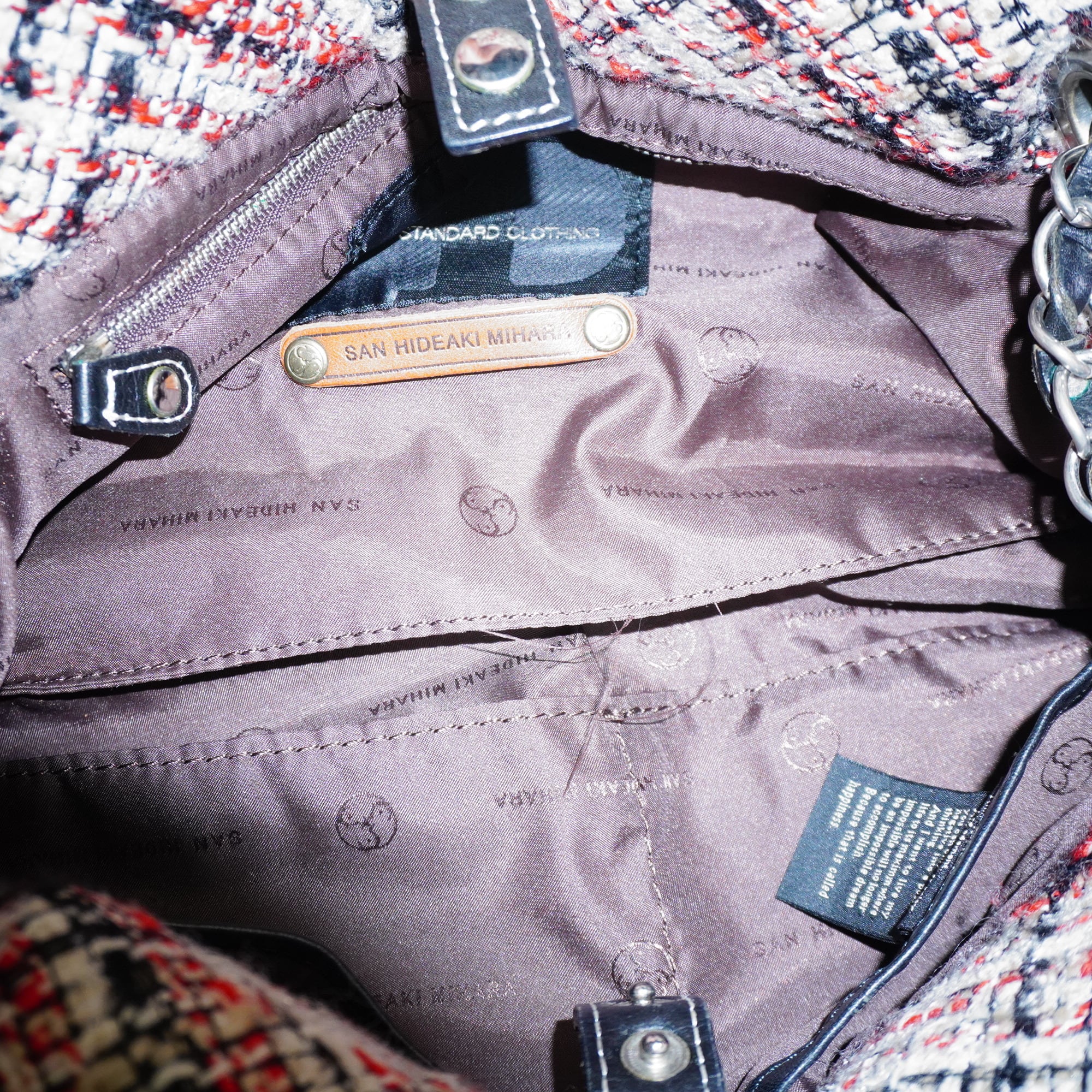 【DOUBLE STANDARD CLOTHING × SAN HIDEAKIMIHARA】japanese label Dワッペンツイード チェーンレザーショルダーバッグ