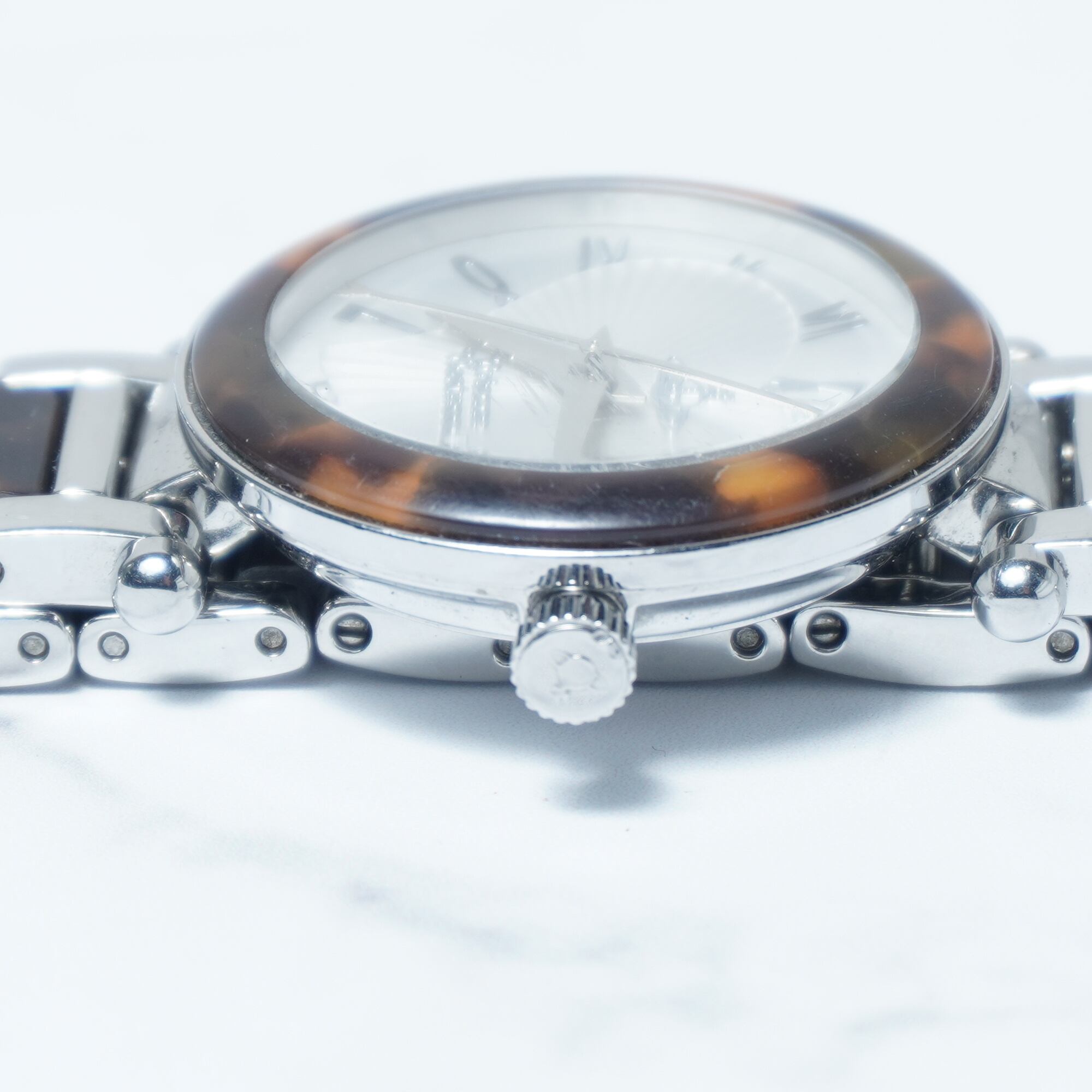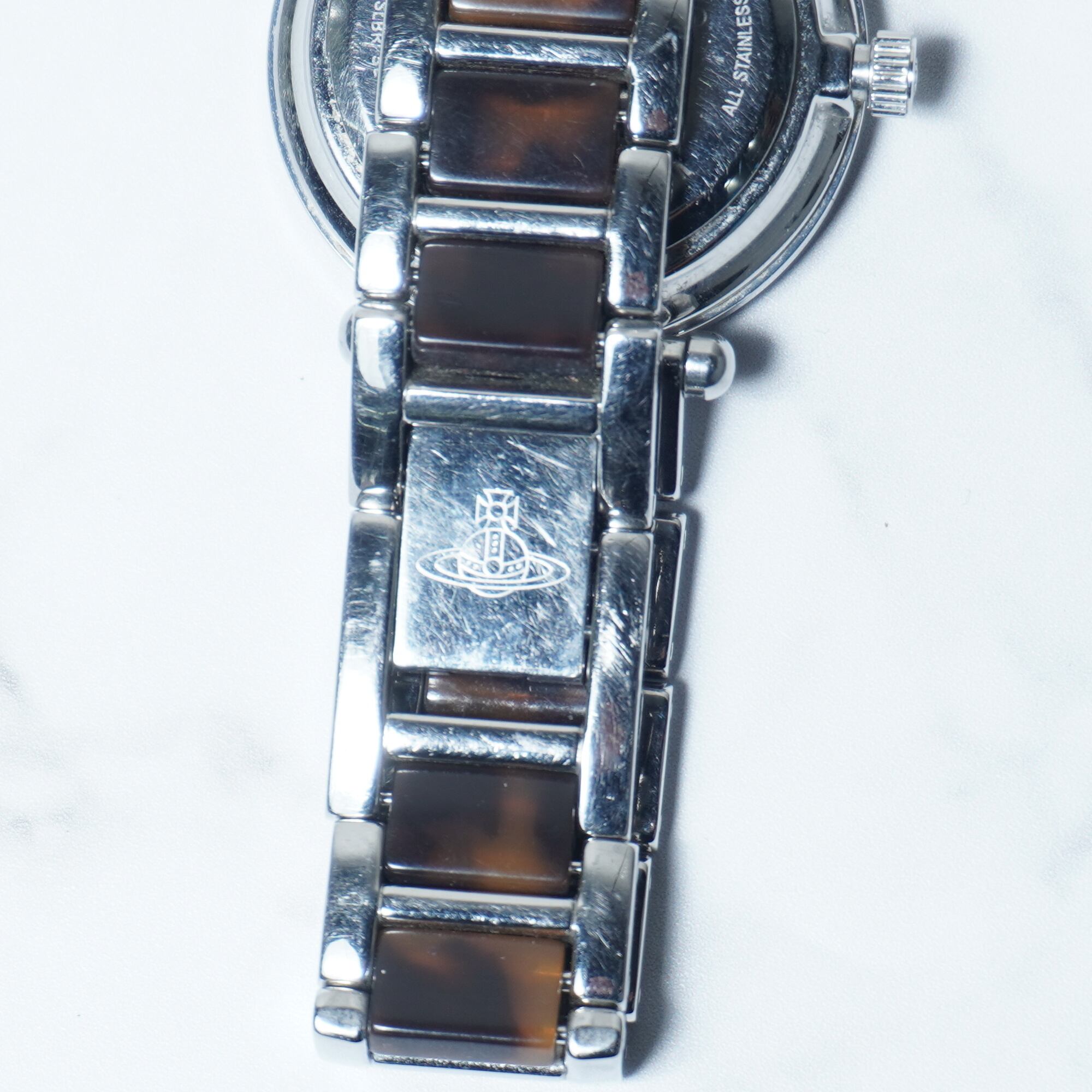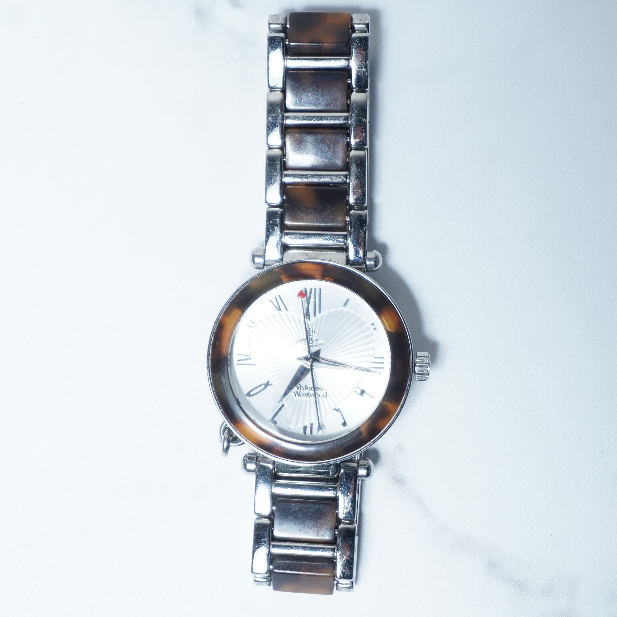 【Vivienne Westwood】ヴィヴィアンウエストウッド 稼働品オーブロゴ 鼈甲・ステンレスクォーツウォッチ silver&brown